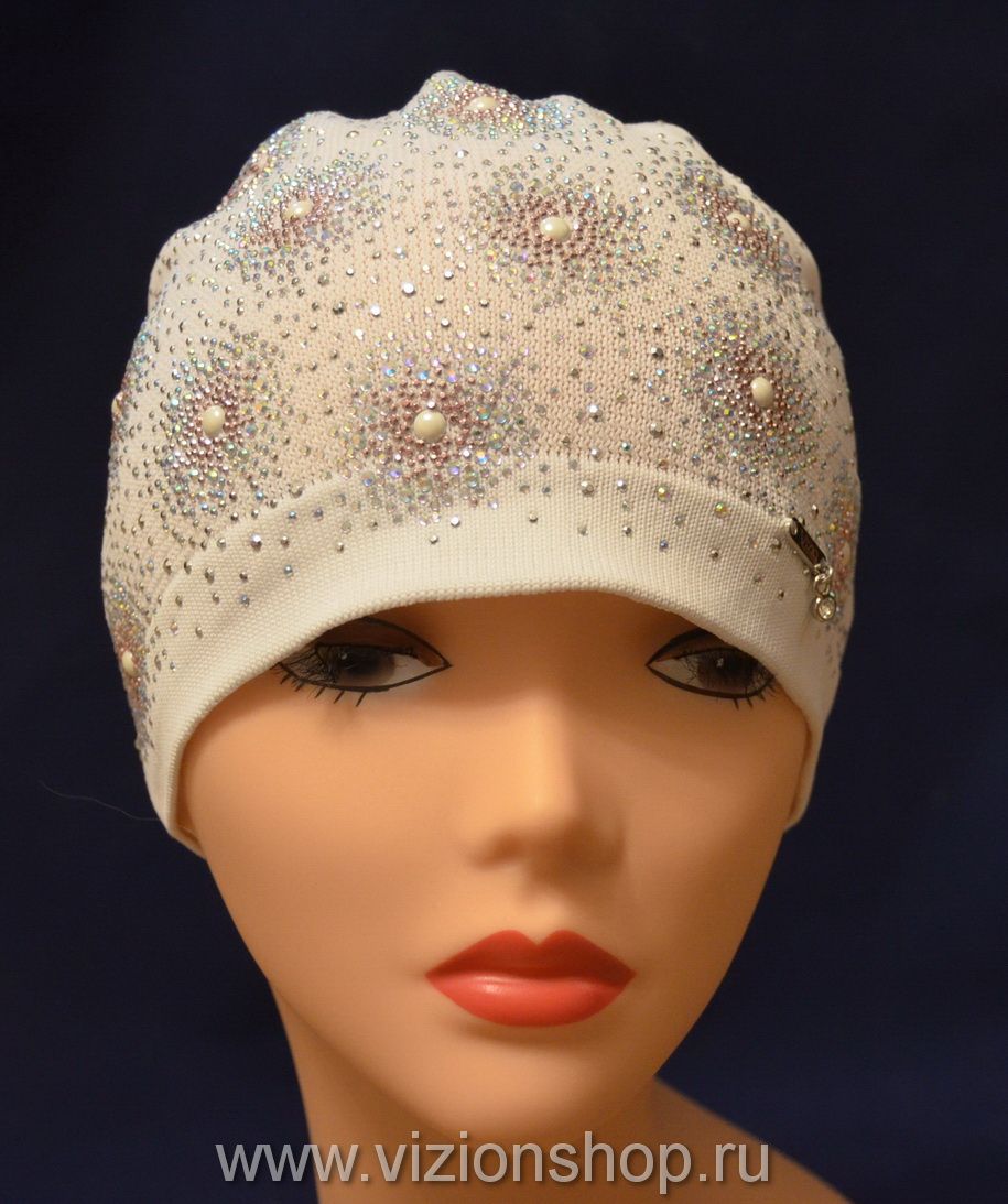 Шапка летняя Vizio Италия 5442 из коллекции итальянскихшапок лето белая вязаная с камнями и стразами от производителя женских вязаных шапок Vizio Collezione Италия