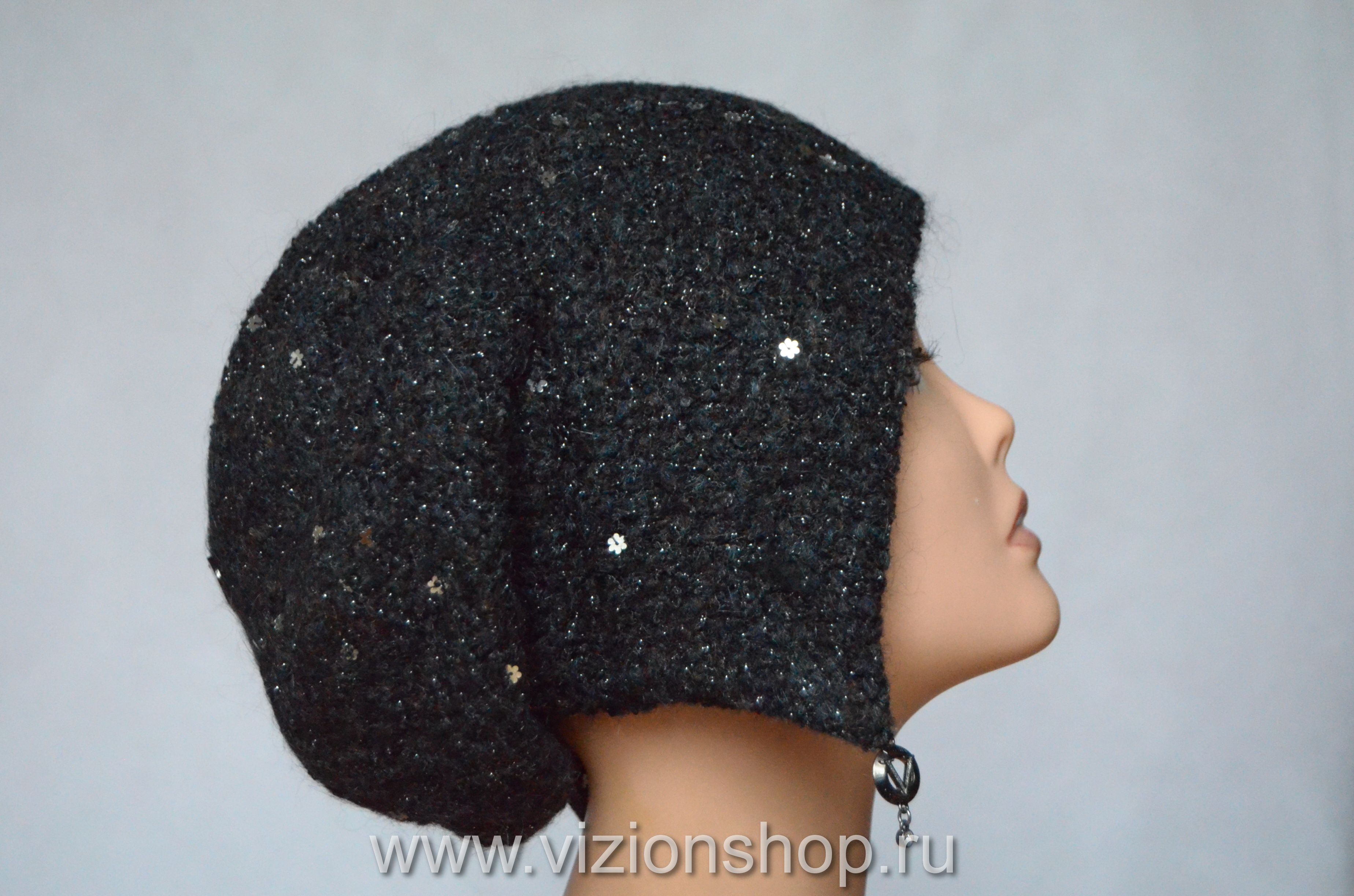 Купить черную шапку ушанку вязаную для женщин итальянского производителя женских шапок Vizio в интернет магазине головных уборов для женщин в Москве и России