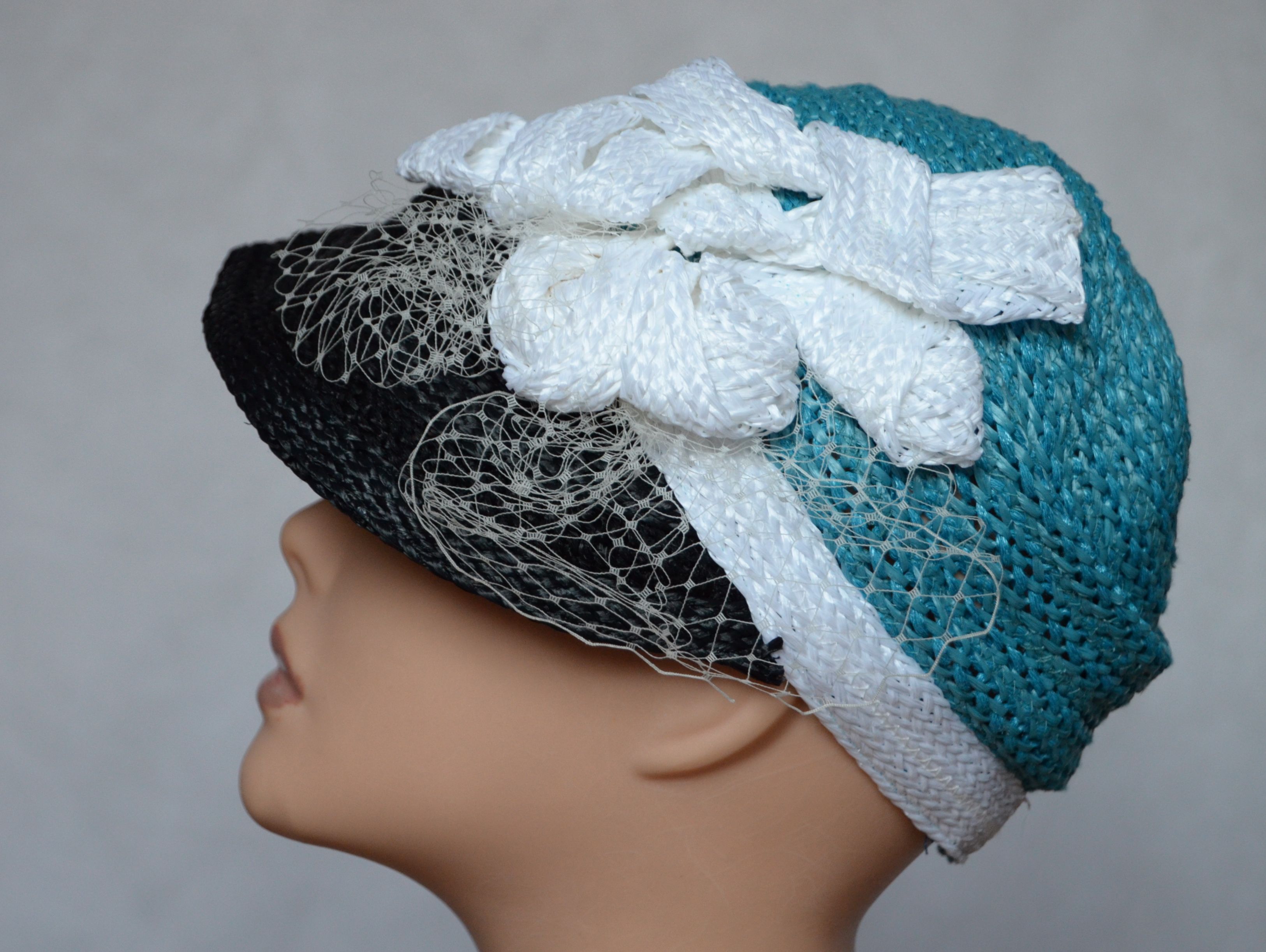 Бейсболка модная женская Vizio Италия 5712 MV вязаная бейсболка мятного цвета с черным козырьком и бантом из коллекции женских головных уборов из Италии Vizio Collezione