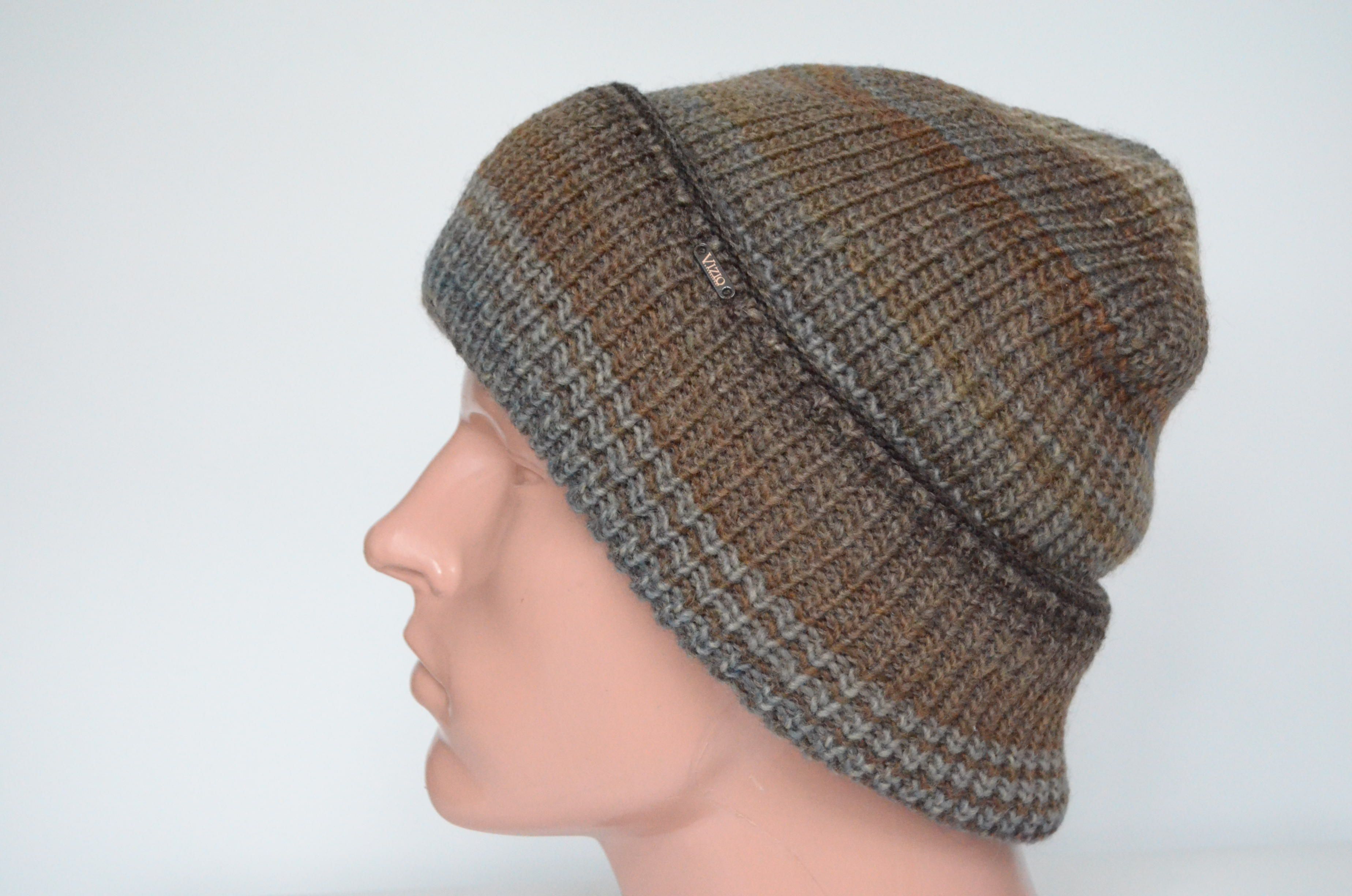 Мужская вязаная шапка из шерсти с отворотом Vizio 110 коричневая из коллекции итальянских вязаных головных уборов для мужчин Визио зима 2022 - 2023
