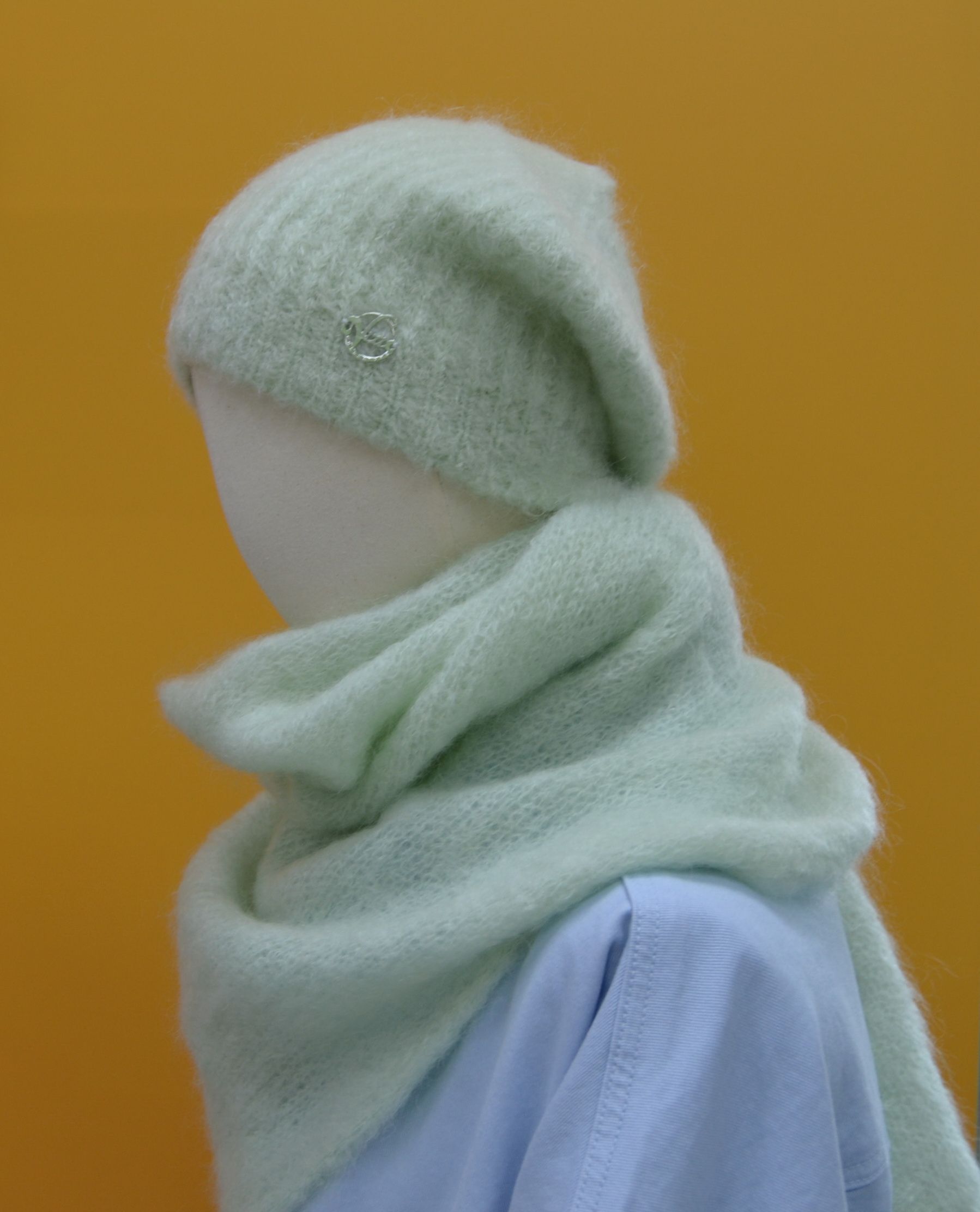 Вязаный мятный мохеровый женский шарф палантин Vizio 6946 SX коллекция итальянских палантинов и головных уборов Vizio Collezione зима 2021 -2022