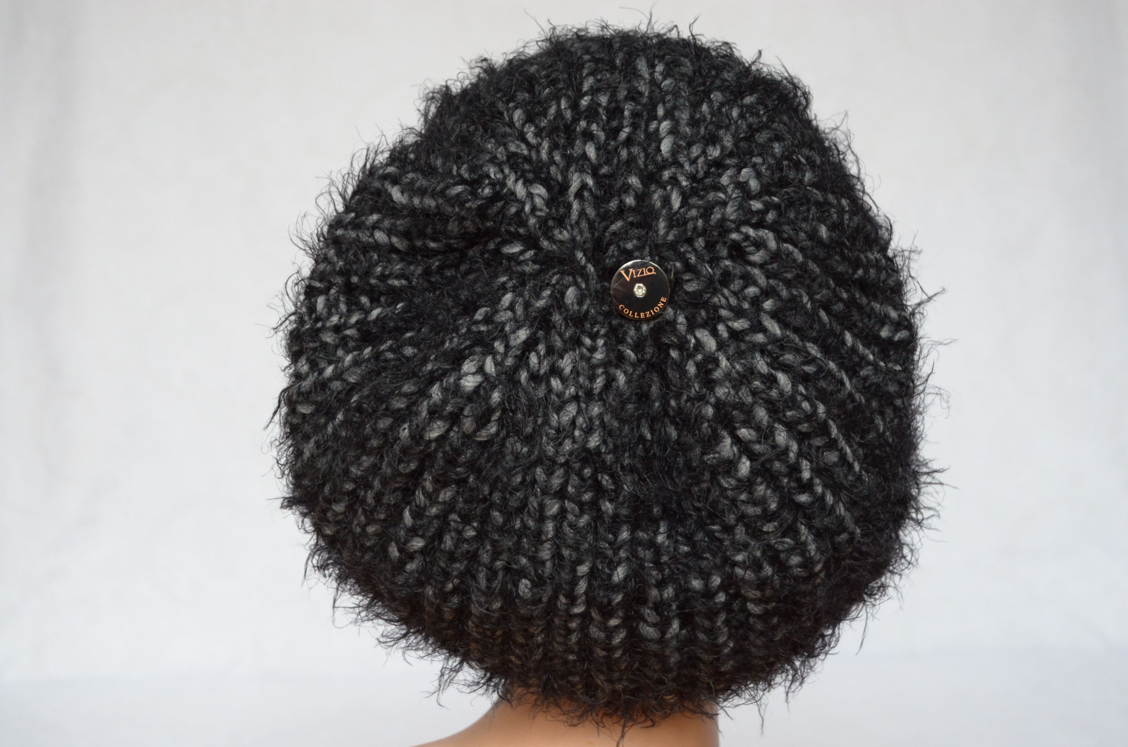 Объемная вязаная кепка для женщин зимняя Италия Vizio 3601 черная. Зимняя кепка толстой пряжи без вязаной подкладки в интернет магазине итальянских женских головных уборов с доставкой по Москве и России.