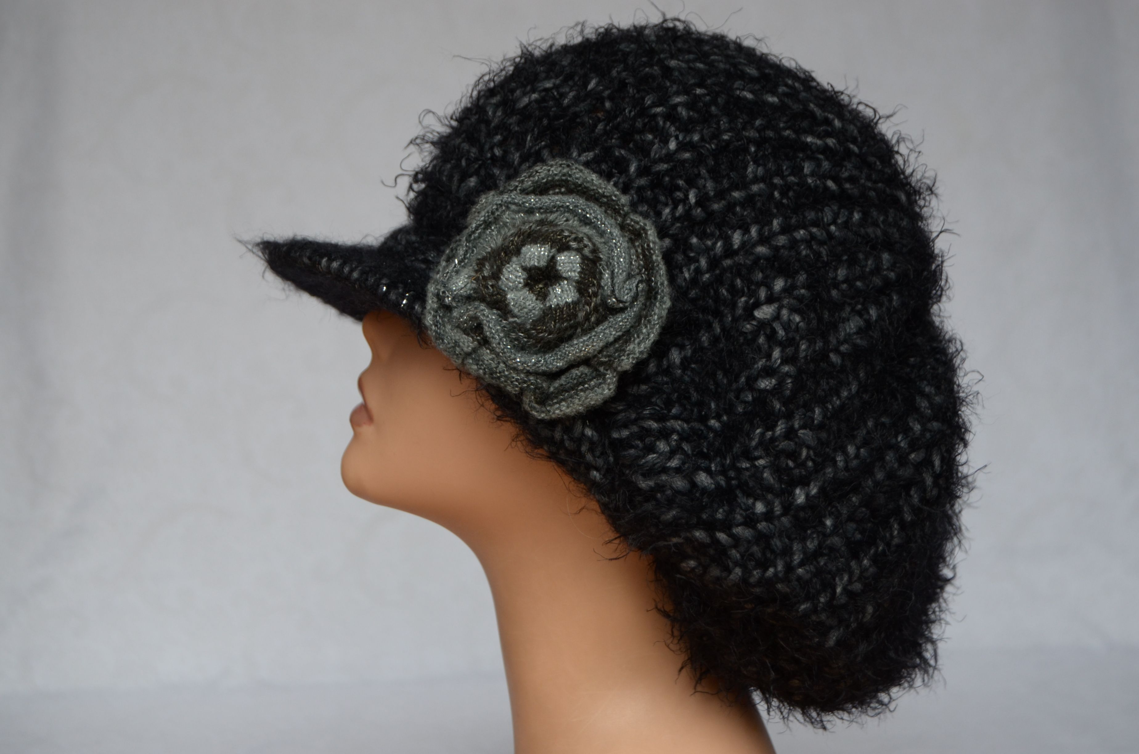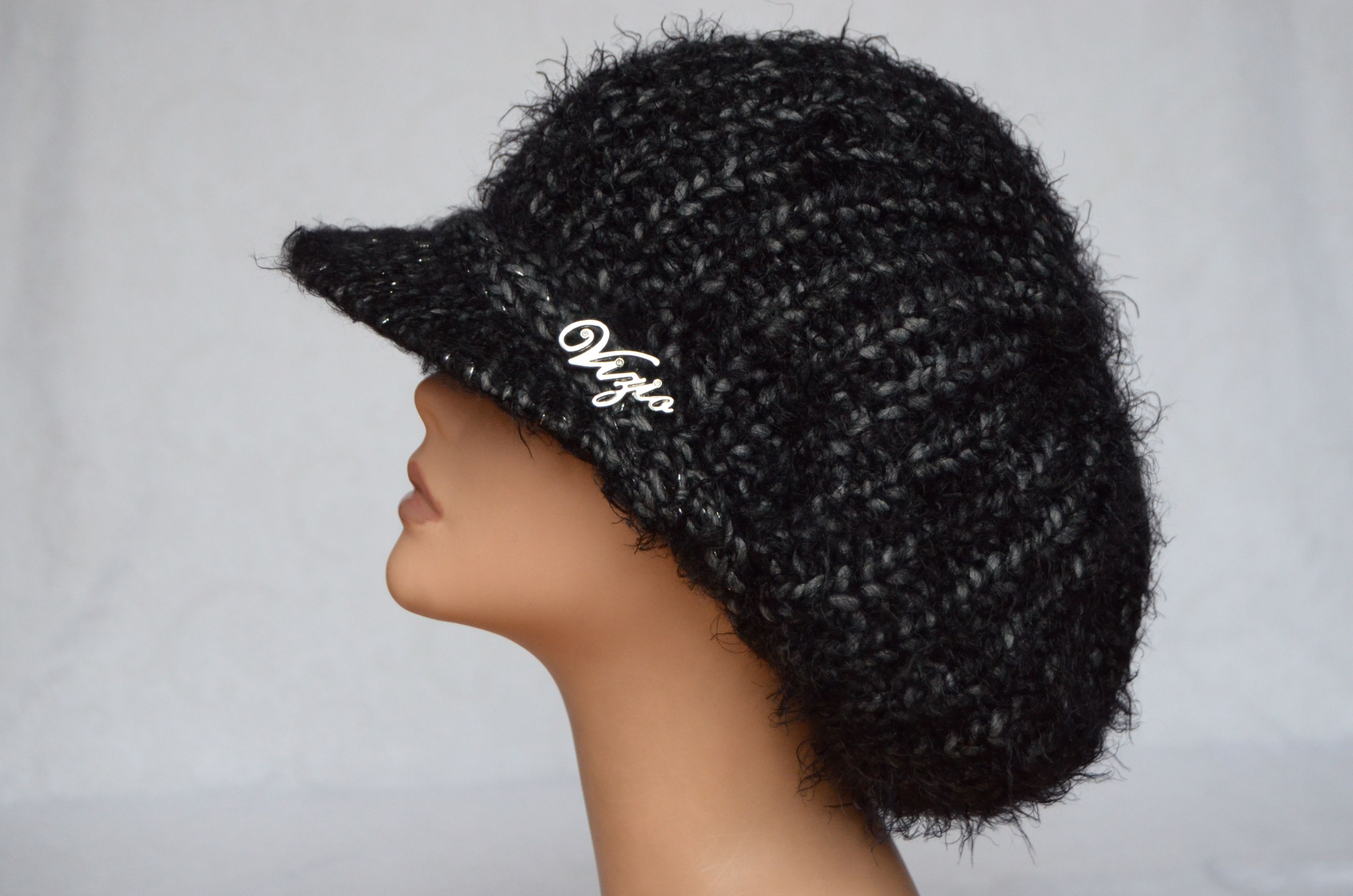 Итальянская зимняя вязаная объемная кепка для женщин Vizio 3601 черного цвета купить в магазине стильных кепок и беретов с козырьком для женщин в москве и с доставкой по России