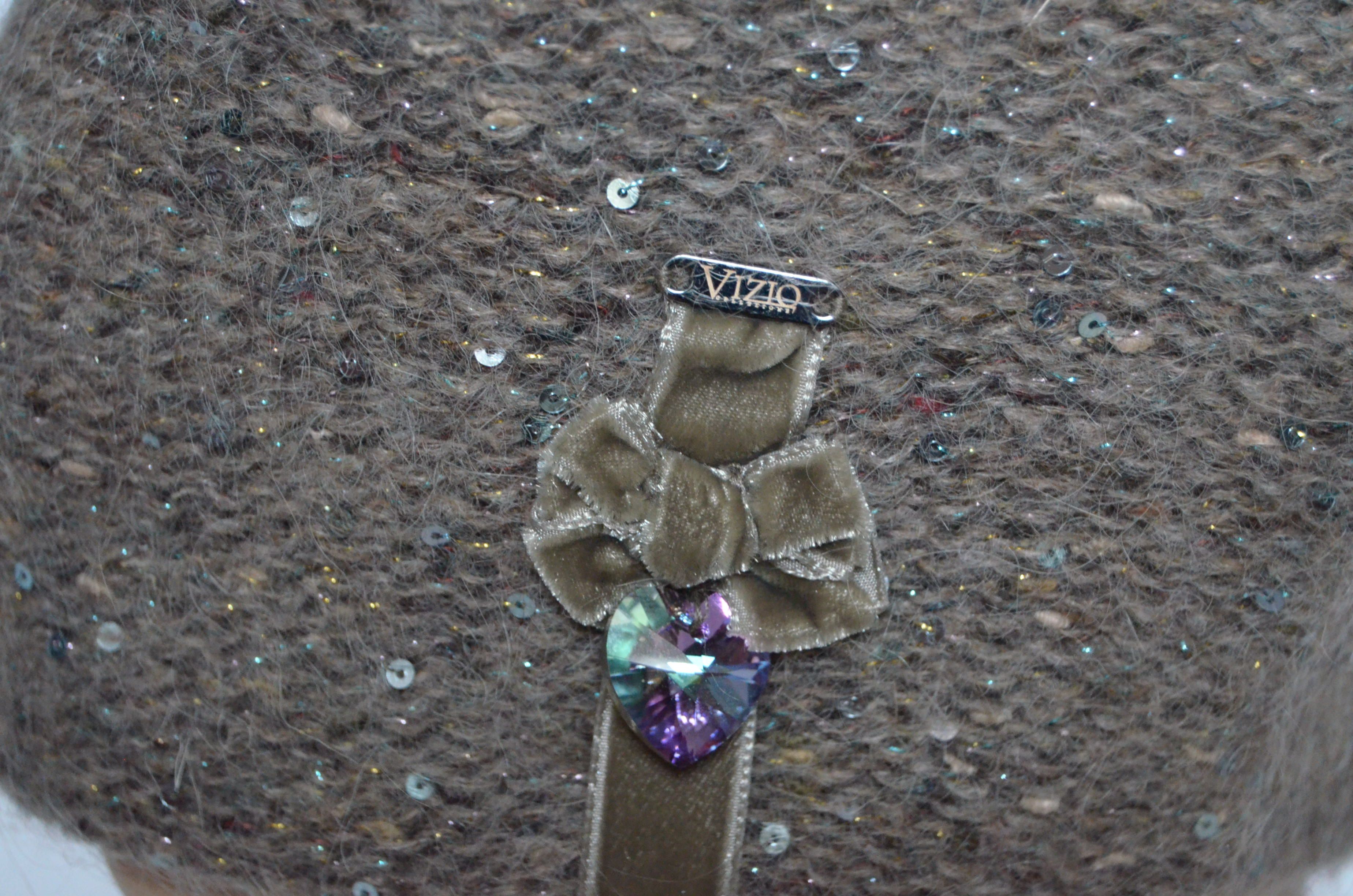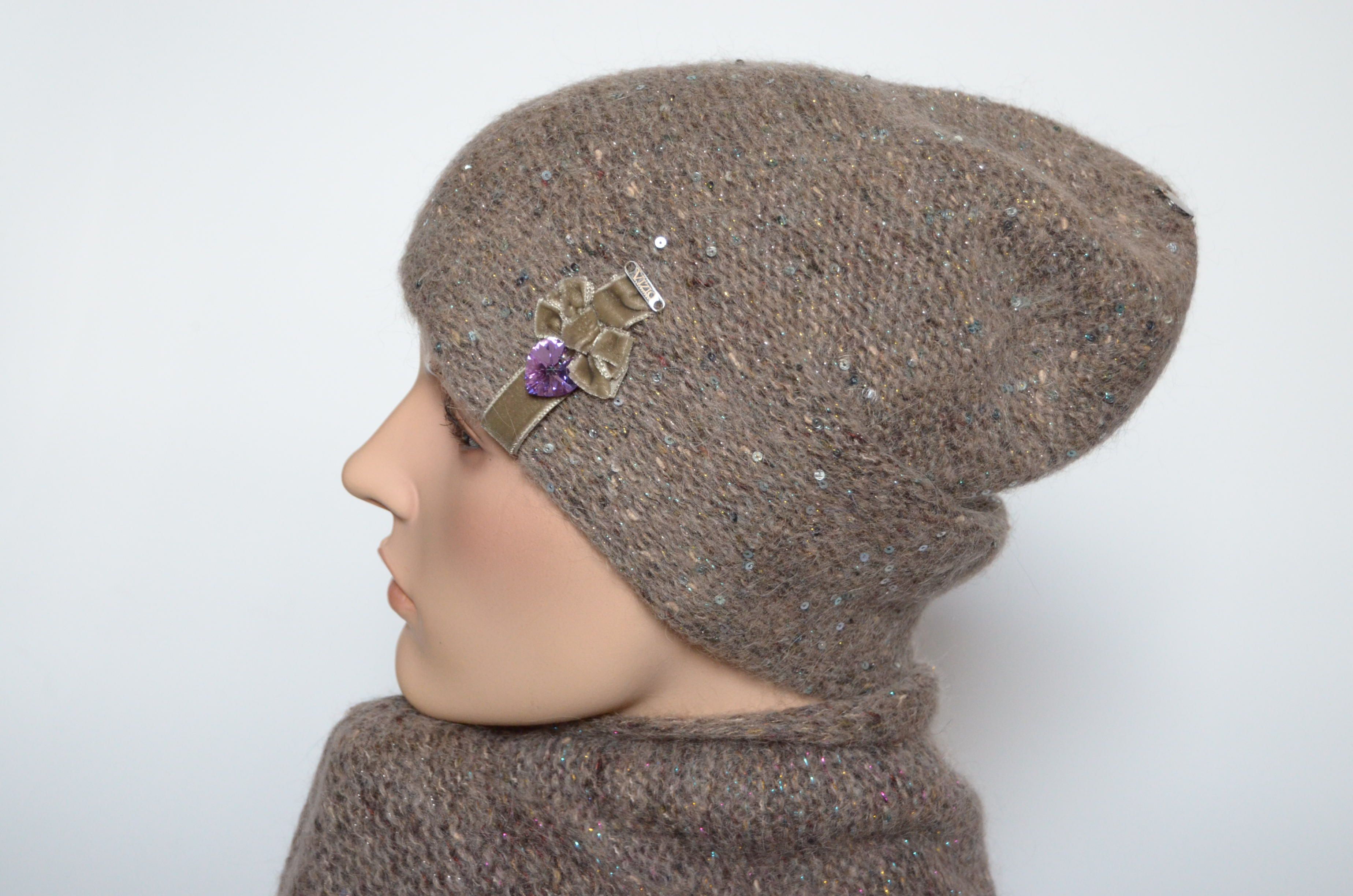 Меланжевая женская шапка ореховая с украшениями Vizio Италия 6926 вязаная шапка из меланжевой пряжи новая коллекция итальянских шапок Визио зима 2021 - 2022 в розничном магазине женских головных уборов Италии Vizio Collezione с доставкой по Москве и России