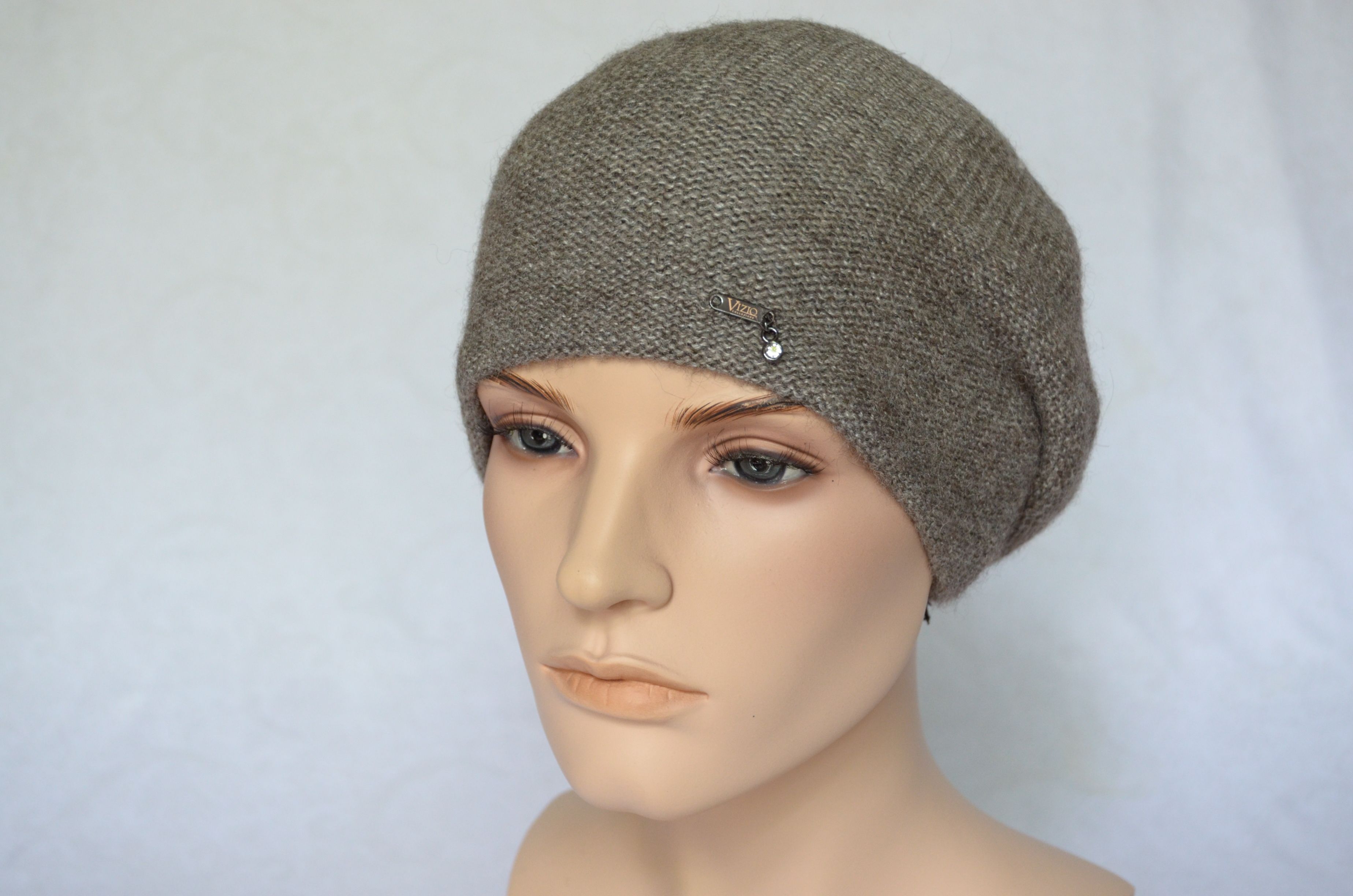 Берет женский из альпака и шелка Vizio 7000 орехового цвета от производителя женских вязаных беретов и шапок Vizio Италия