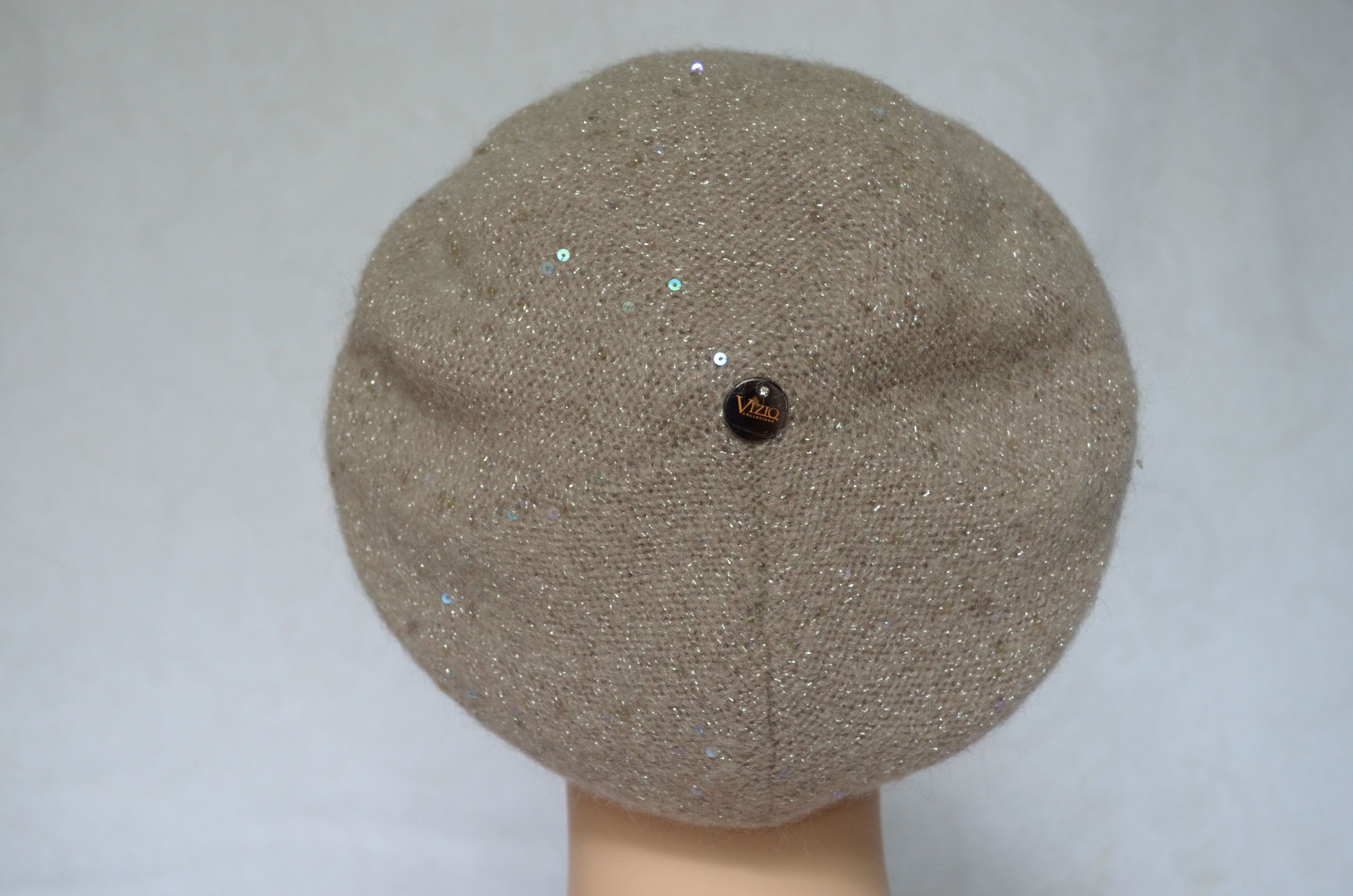 Вязаный берет орехового цвета с пайетками для женщин Vizio Италия 6943 новинка из коллекции зимних итальянских классических беретов и шапок с пайетками зима 2021 - 2022 бренда женских головных уборов Визио Vizio Collezione