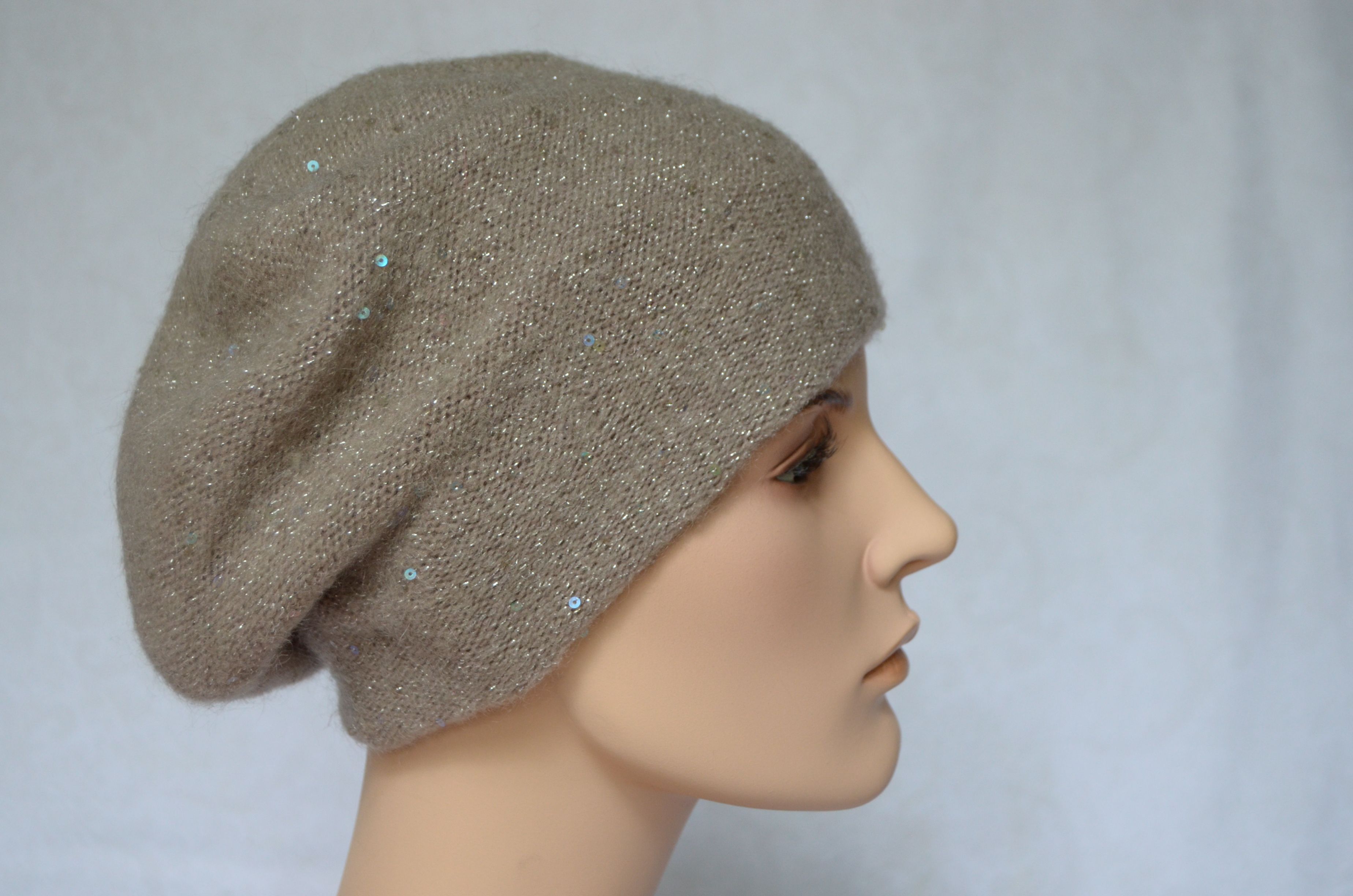 Состав берета: мохер 35 %, полиамид 25 %, шерсть 32 %, пайетки, полиэстер 6 %, эластан 2 %