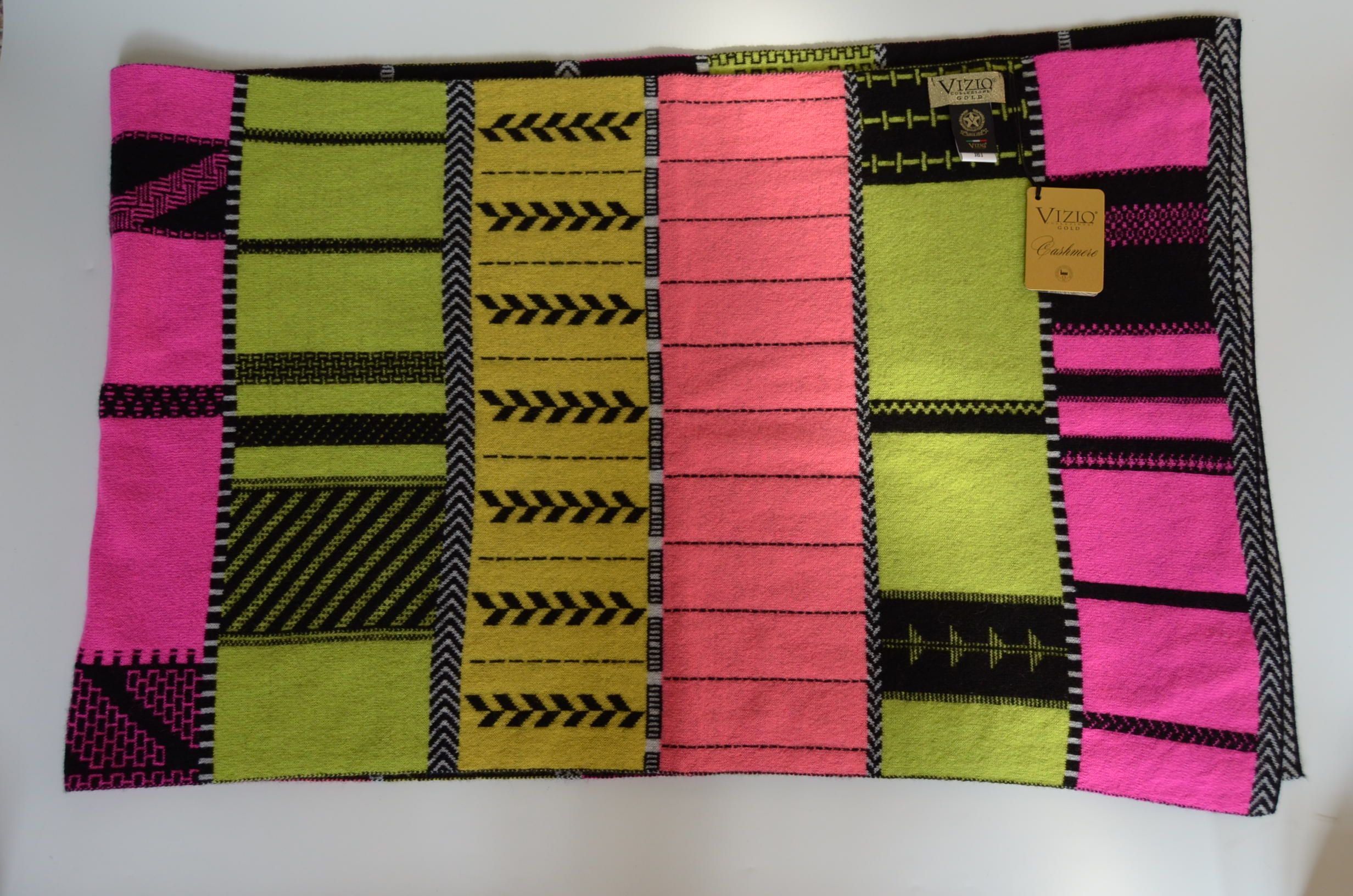 Двухсторонний широкий шарф 48 см и длиной 160 см с различными цветами на сторонах шарфа совпадающими с многими цветами кашемировых головных уборов Vizio Collezione коллекции 2023 - 2024. Палантин может использоваться как в сочетании с головным убором так и отдельно как очень красивый аксессуар