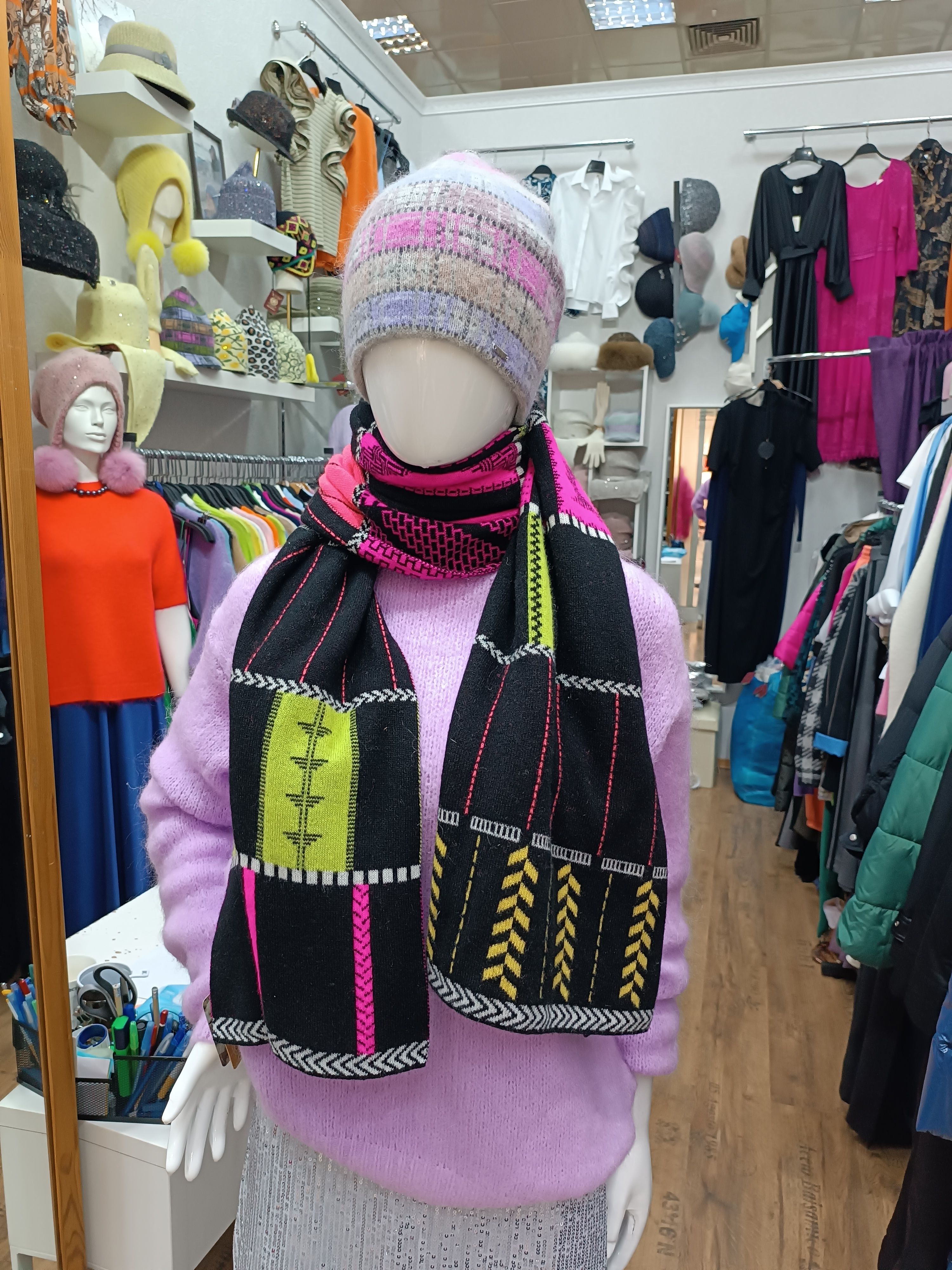 Шарф палантин вязаный из кашемира женский разноцветный подходит под модели беретов и шапок из кашемира для женщин