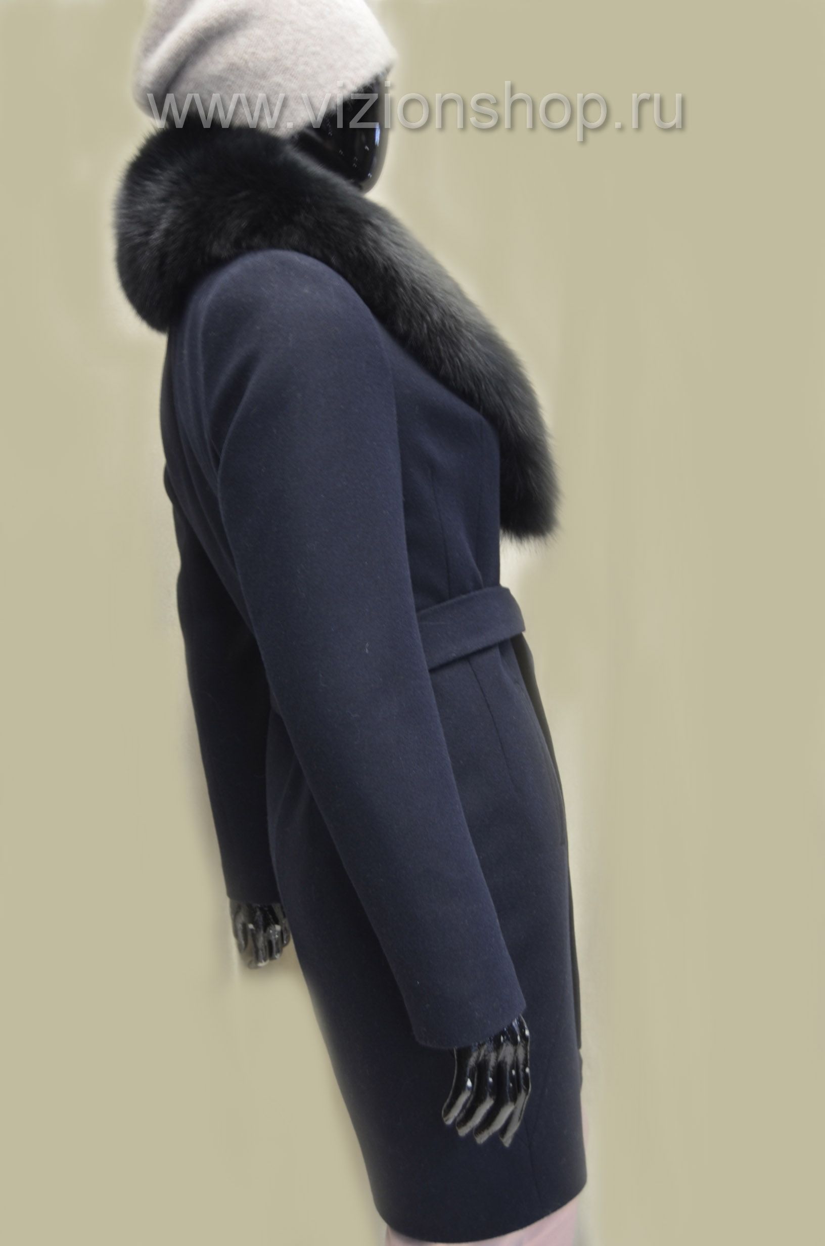 Женское синее пальто с меховым воротником из песца Россия Арти мода 1441 купить в магазине пальто для женщин