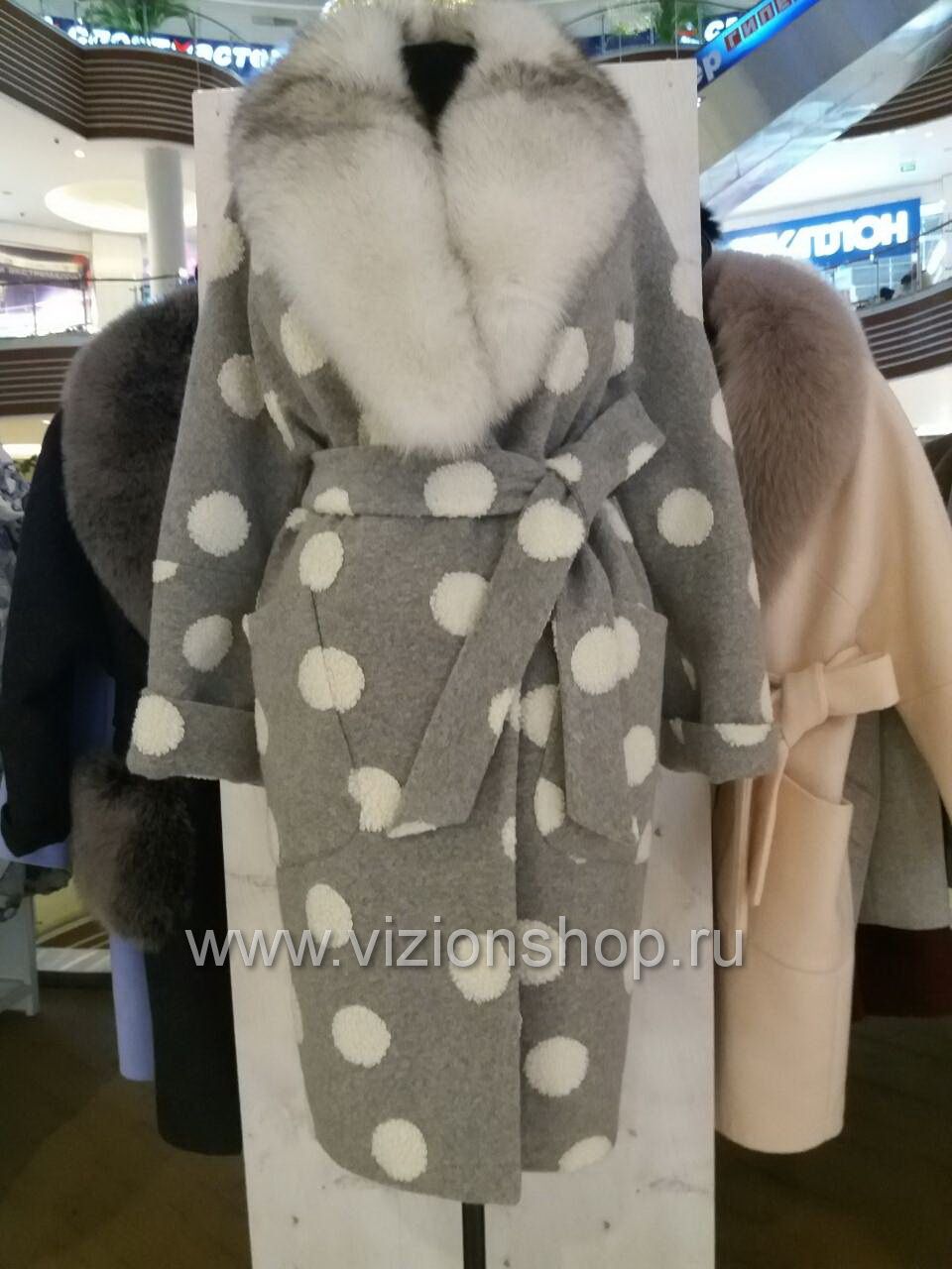 Купить пальто в горох с меховым воротником вы можете в интернет магазине женских пальто из России с доставкой по Москве и России