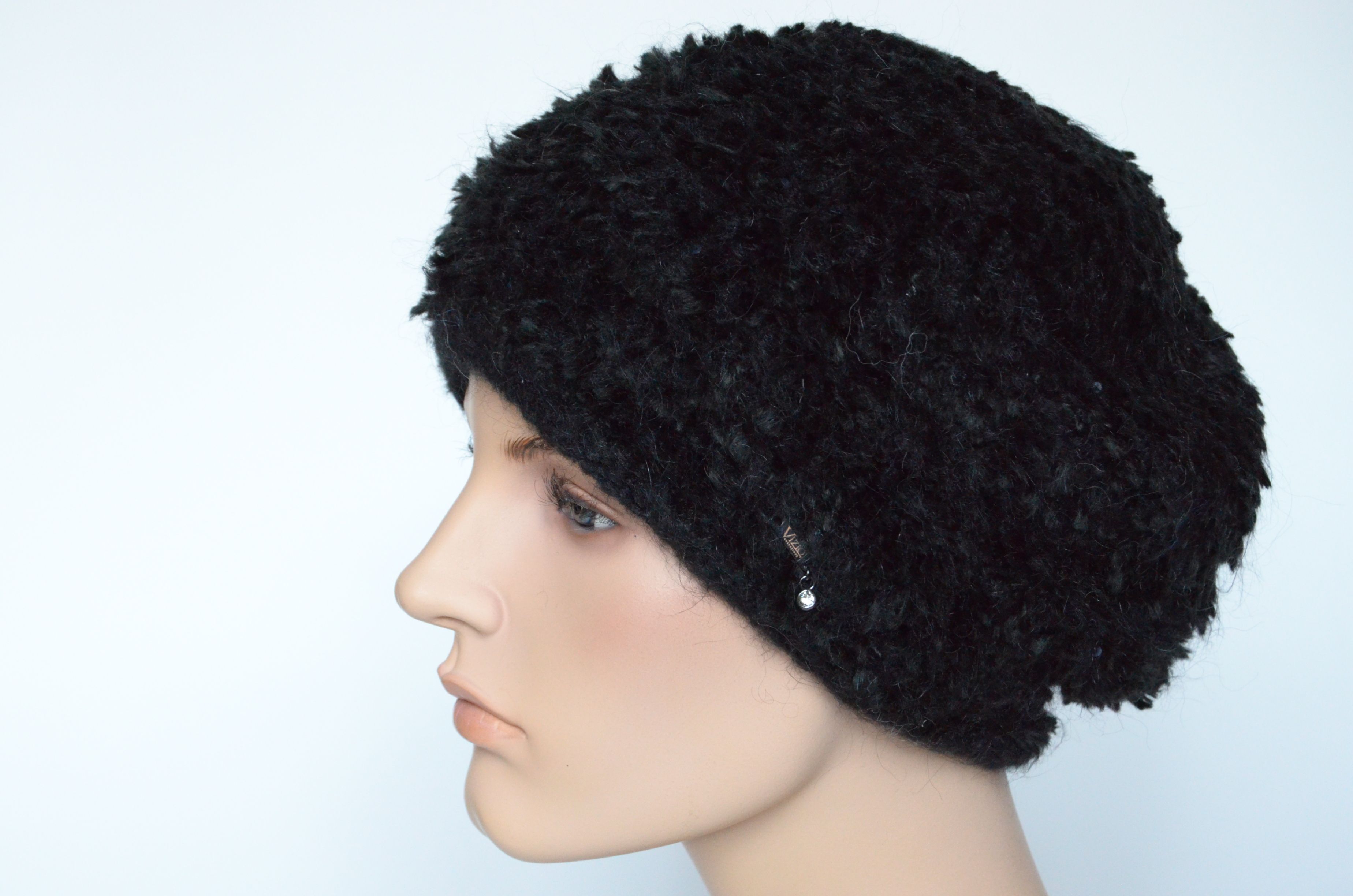 Лохматый черный вязаный берет для женщин Vizio 6964 производителя итальянских головных уборов Vizio Collezione новая коллекция зимних женских беретов и шапок зима 2021 -2022