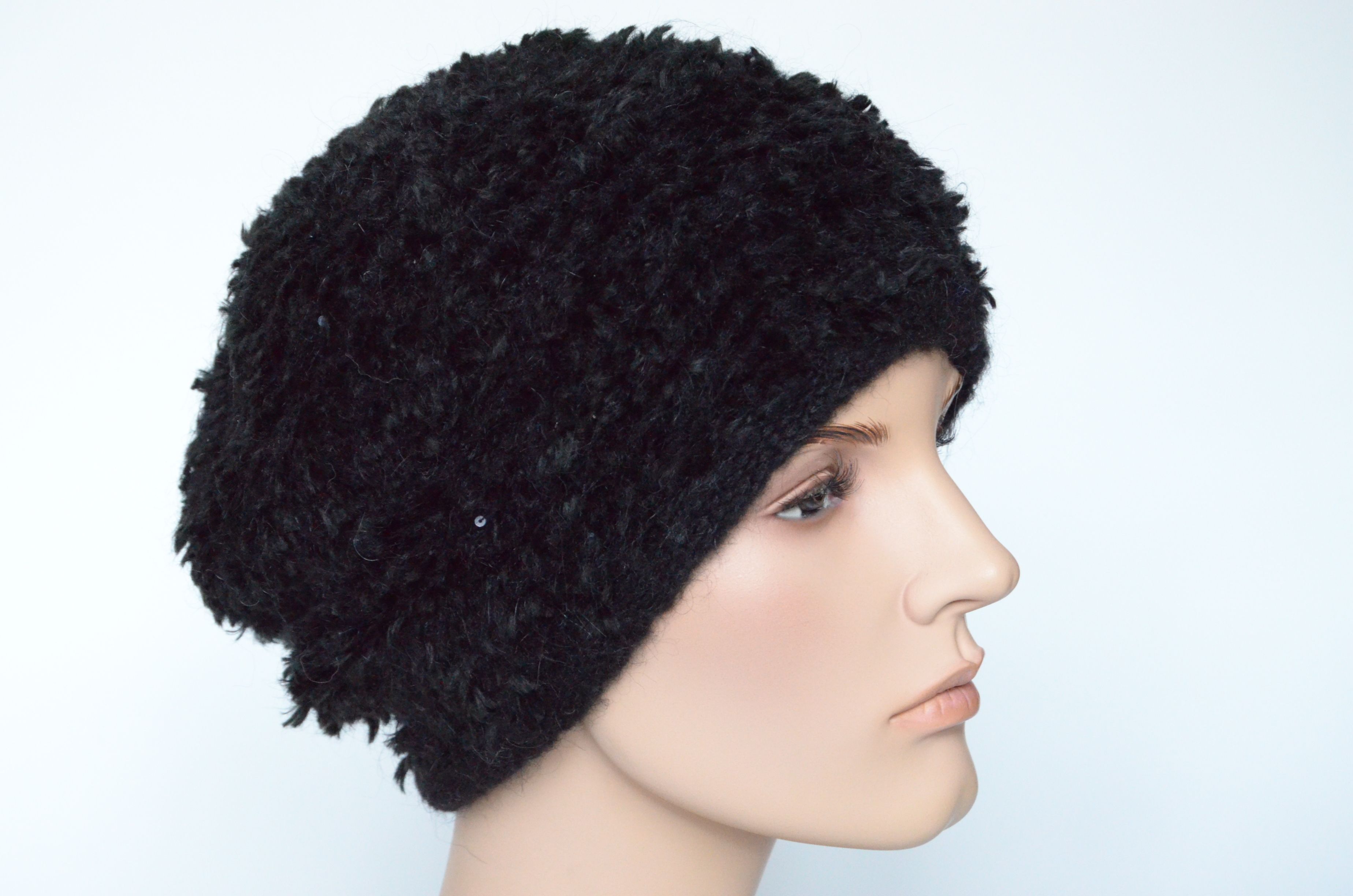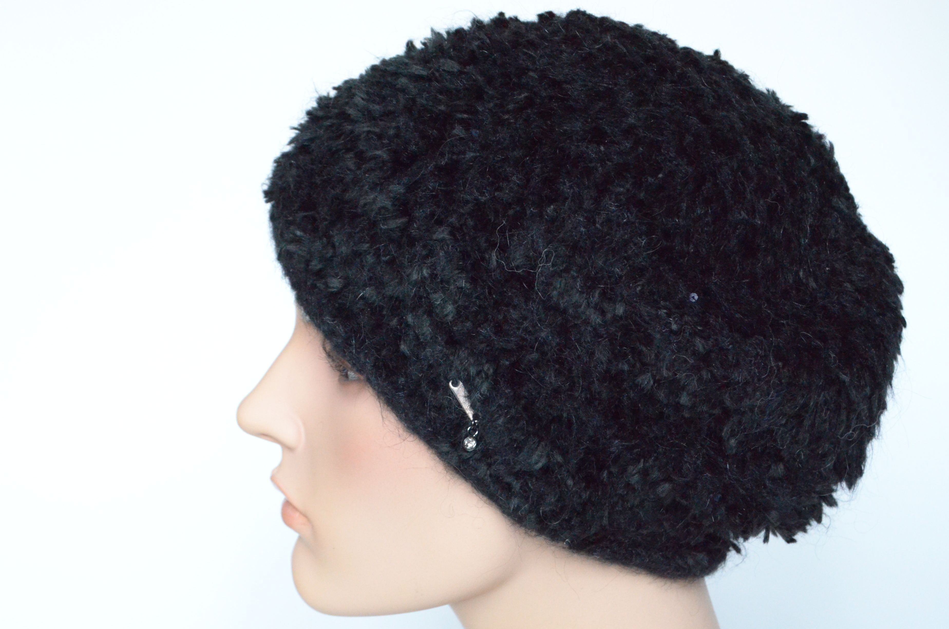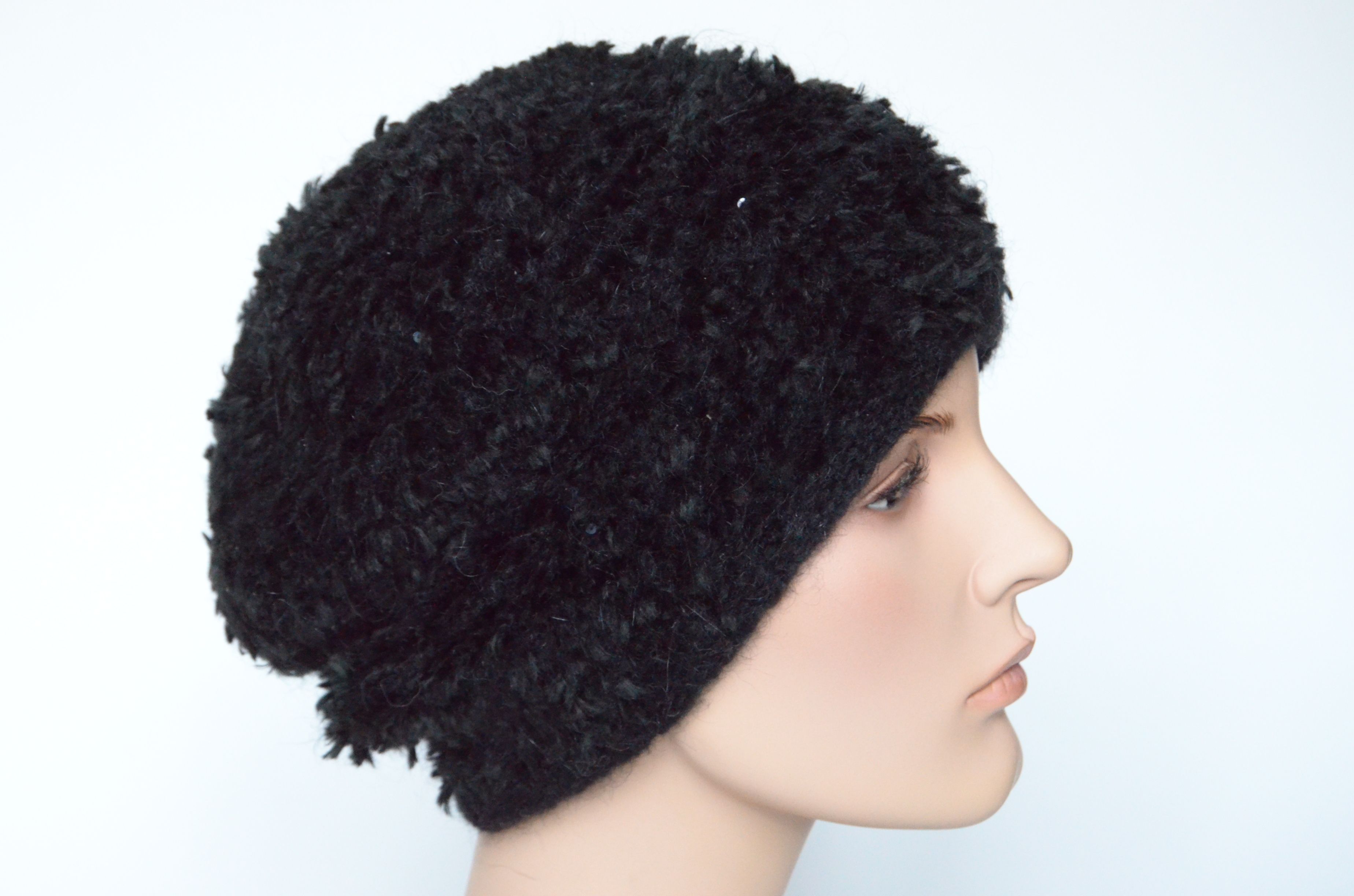 Пушистый черный берет для женщин зимний