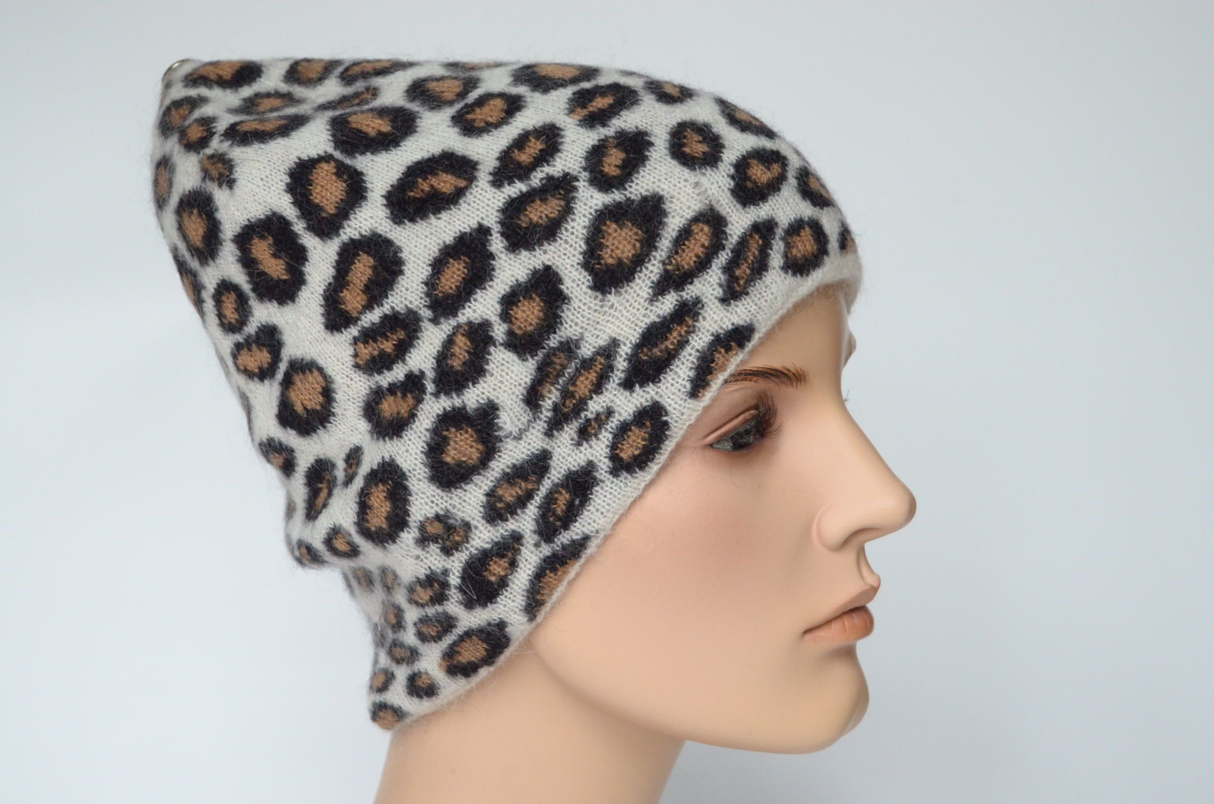 Вязаная пятнистая шапка коллекция женских беретов и шапок зима 2024 в леопардовой расцветке