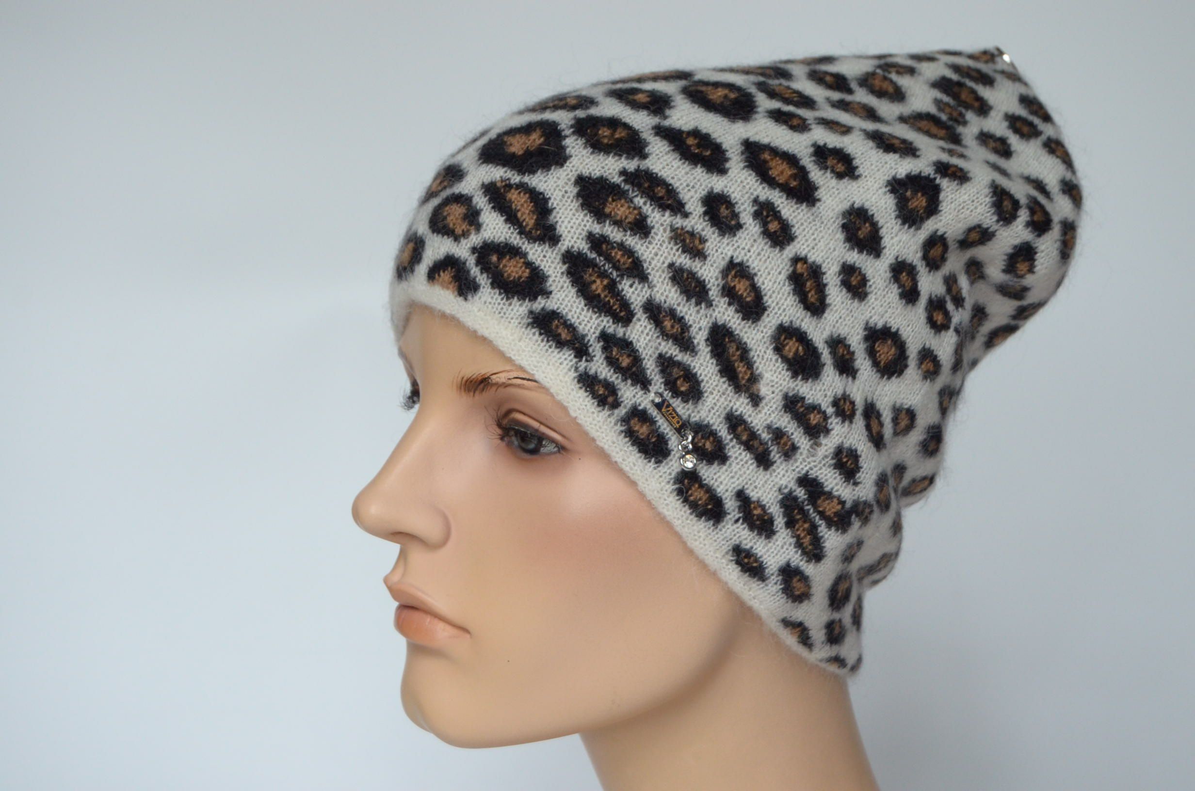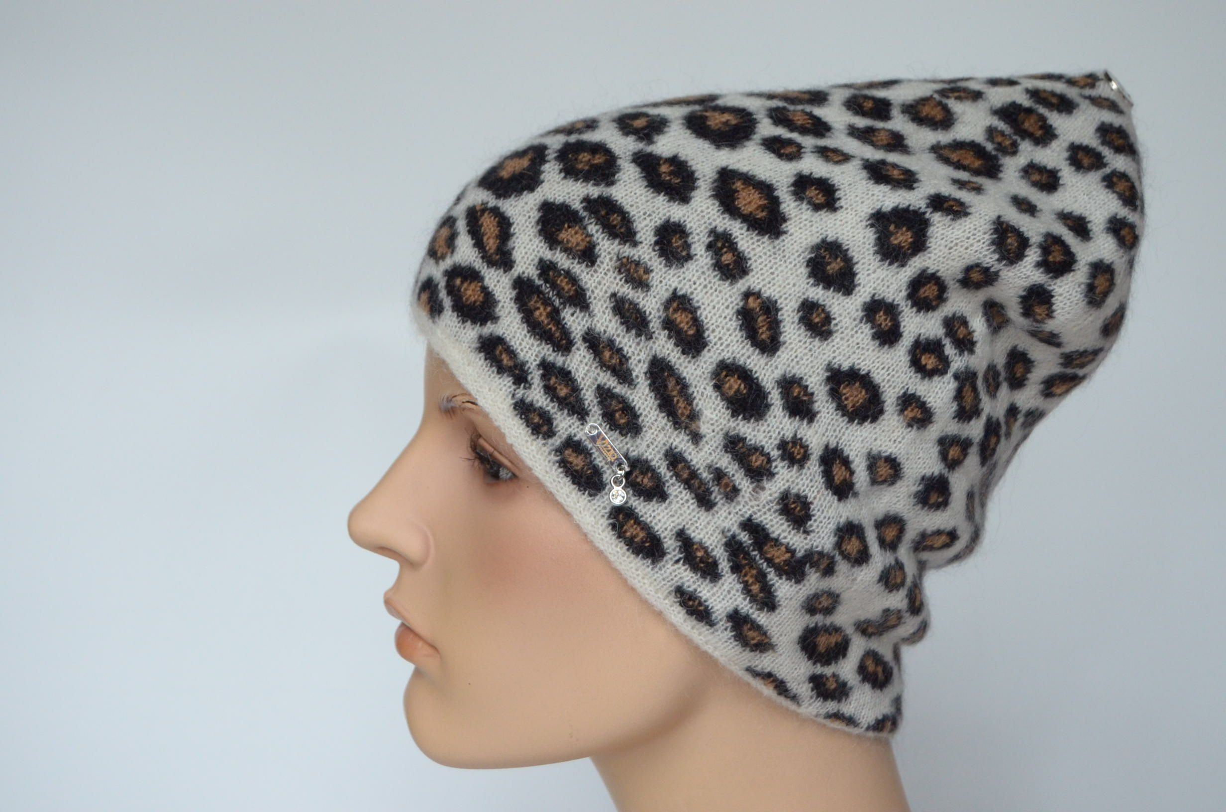 Пятнистая вязаная шапка в леопардовой расцветке для женщин Vizio Италия 1027 CY коллекция женских головных уборов в расцветке леопард зима 2024