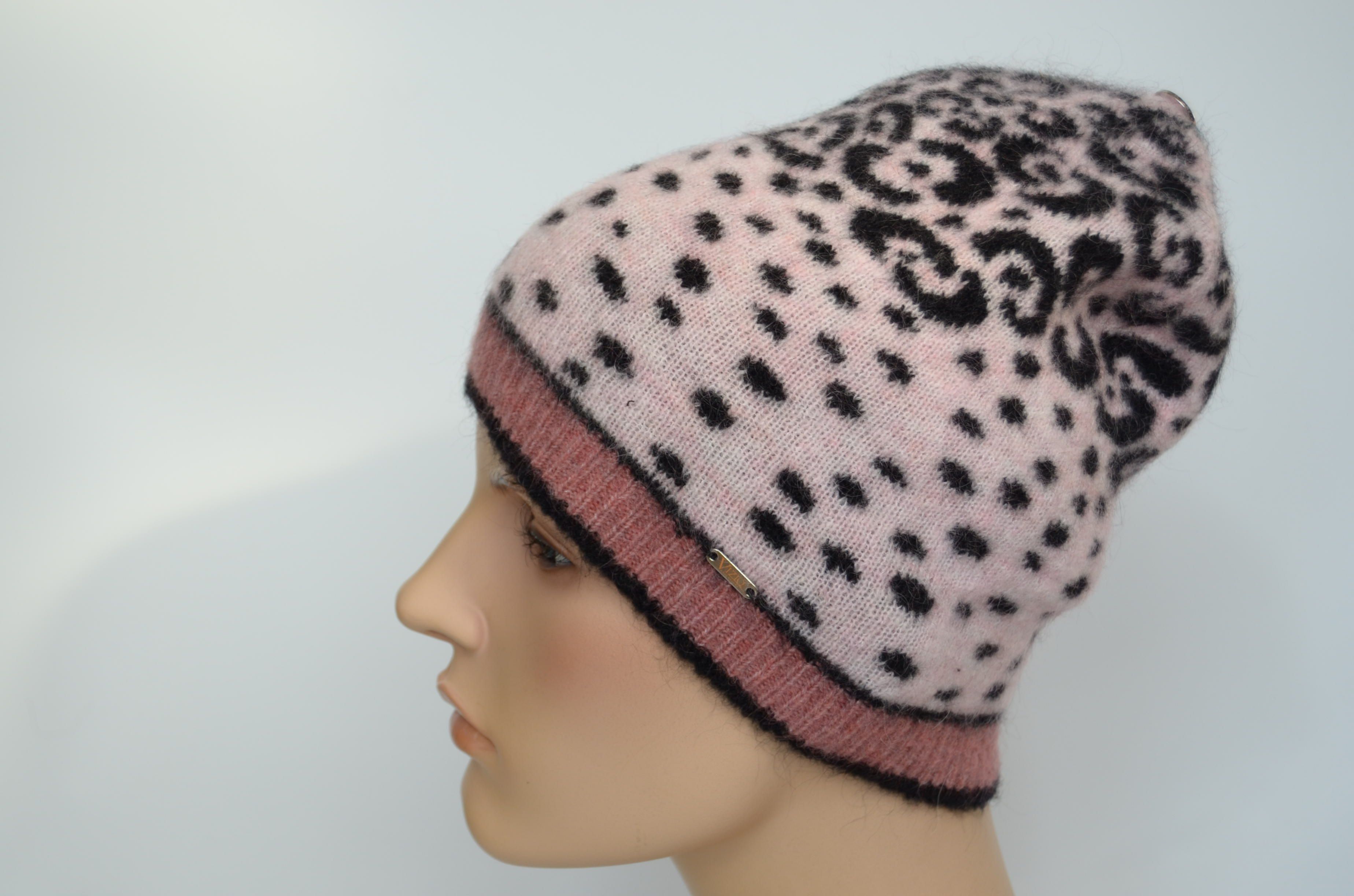 Вязаная пятнистая женская шапка розовая Vizio Италия ZS 8077 CY итальянская зимняя шапка из мохера и мериноса