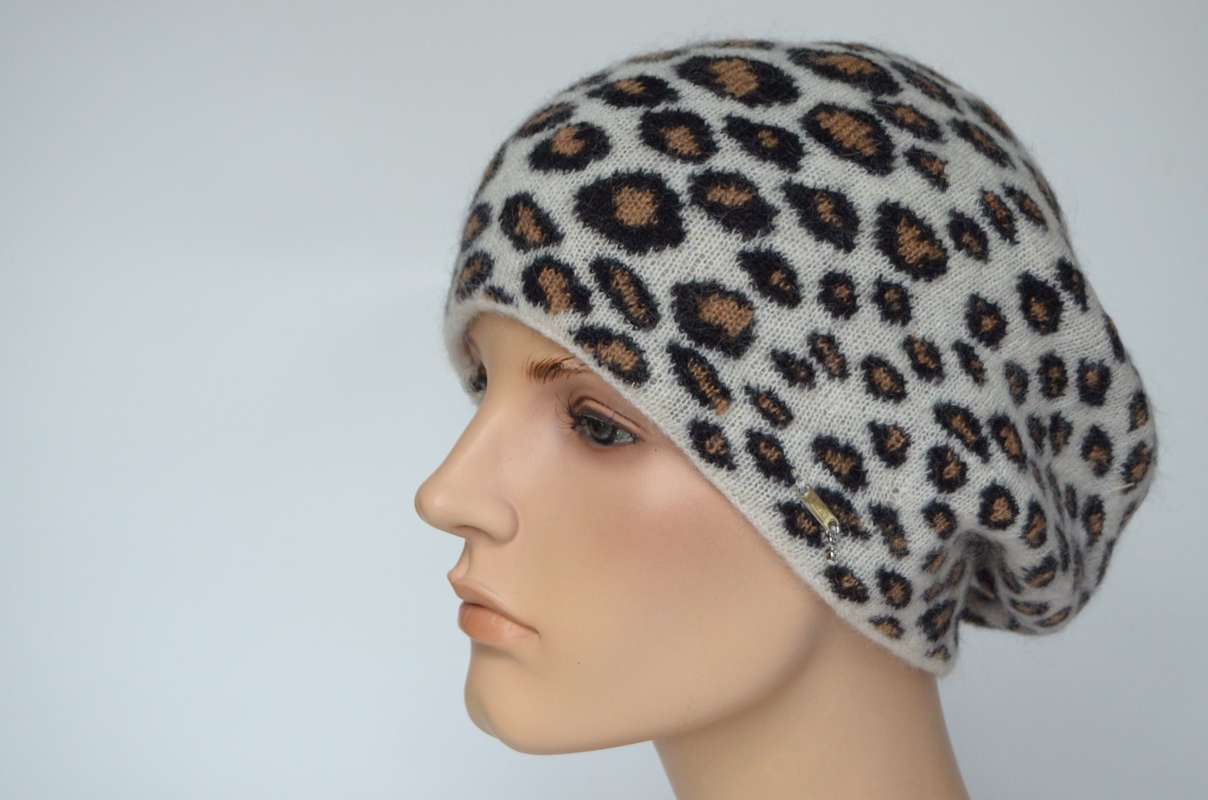 Приобрести пятнистый вязаный берет в леопардовой расцветке итальянского производителя головных уборов Vizio Collezione в интернет магазине шапок и беретов Италии Визио с доставкой по Москве и России