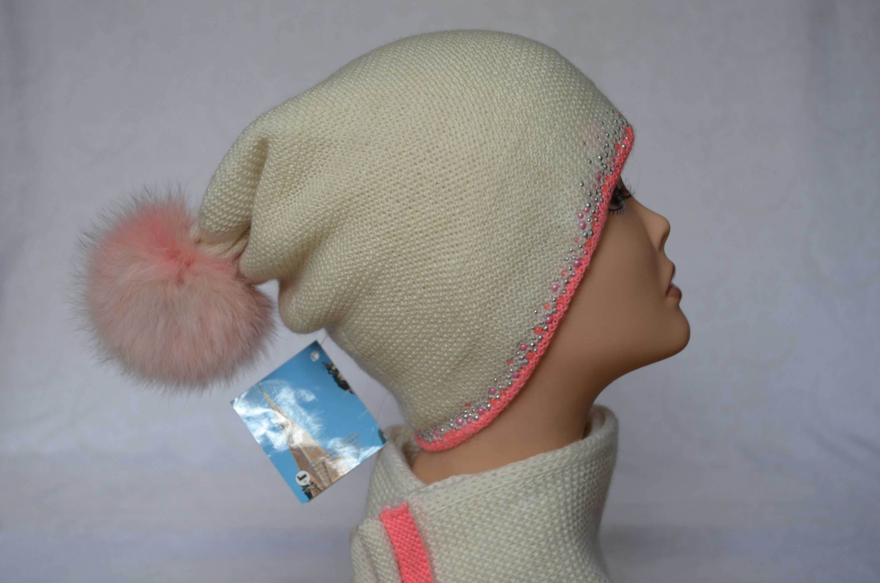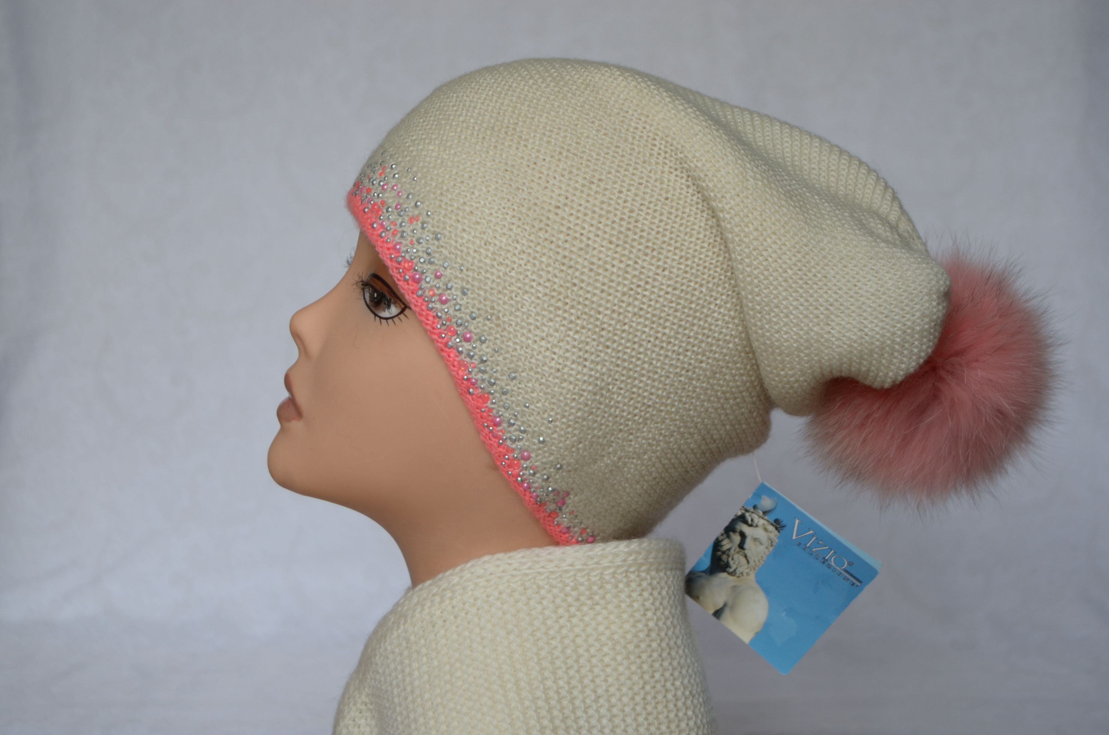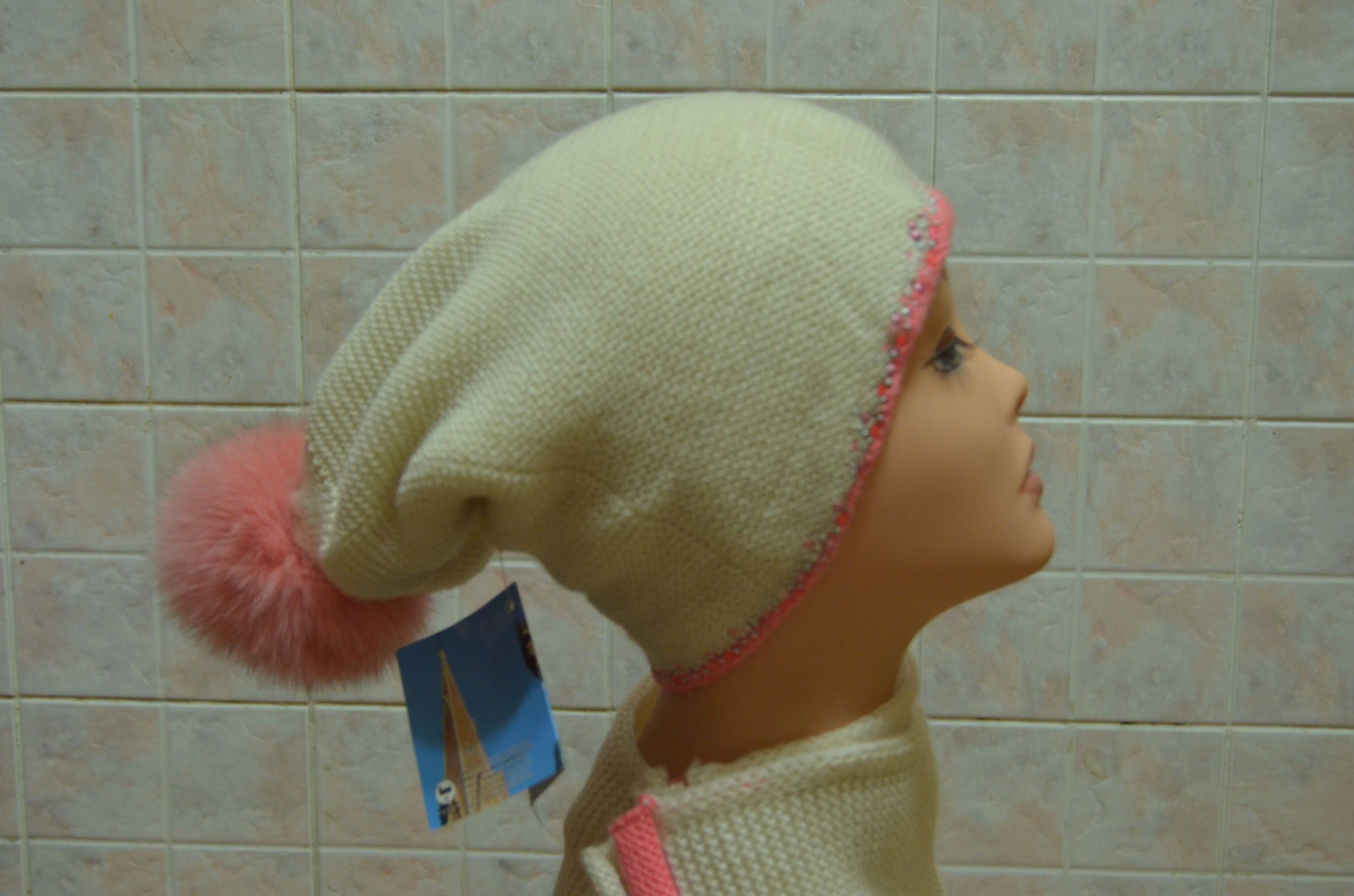 Итальянская белая шапка с оранжевым помпоном и шарф Италия vizio 4752 - в интернет-магазине головных уборов Vizio Collezione в Москве или с доставкой по России
