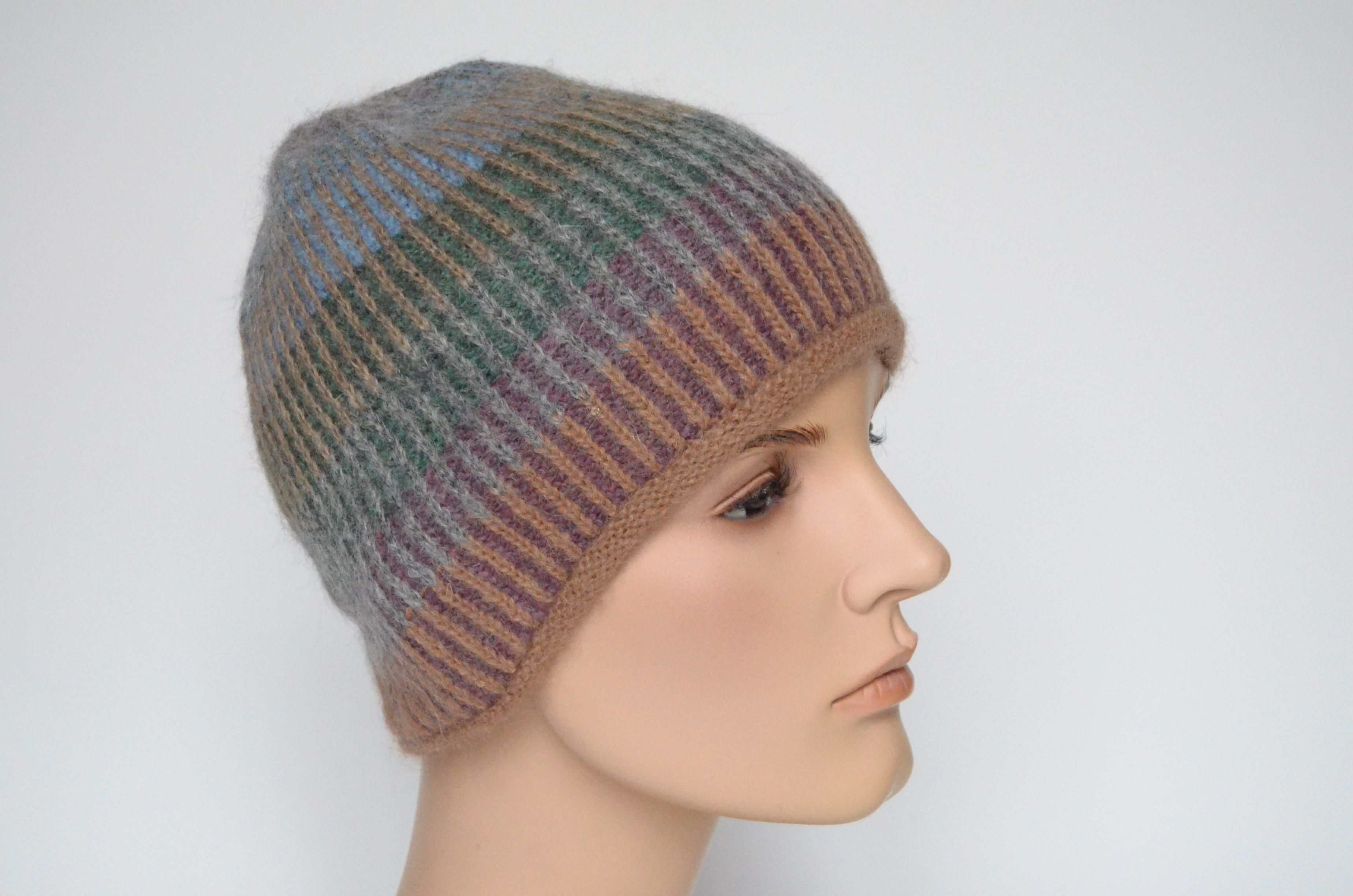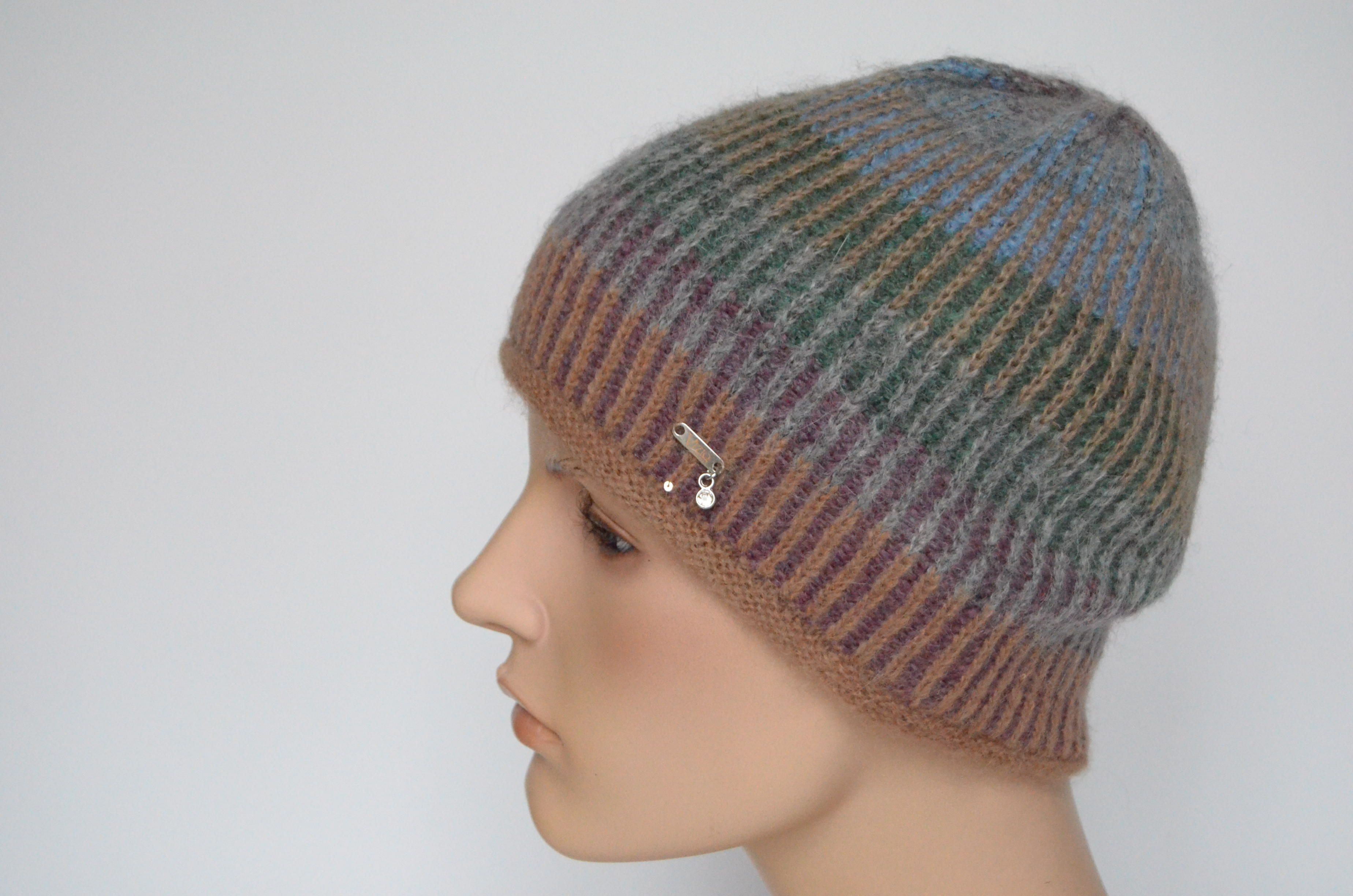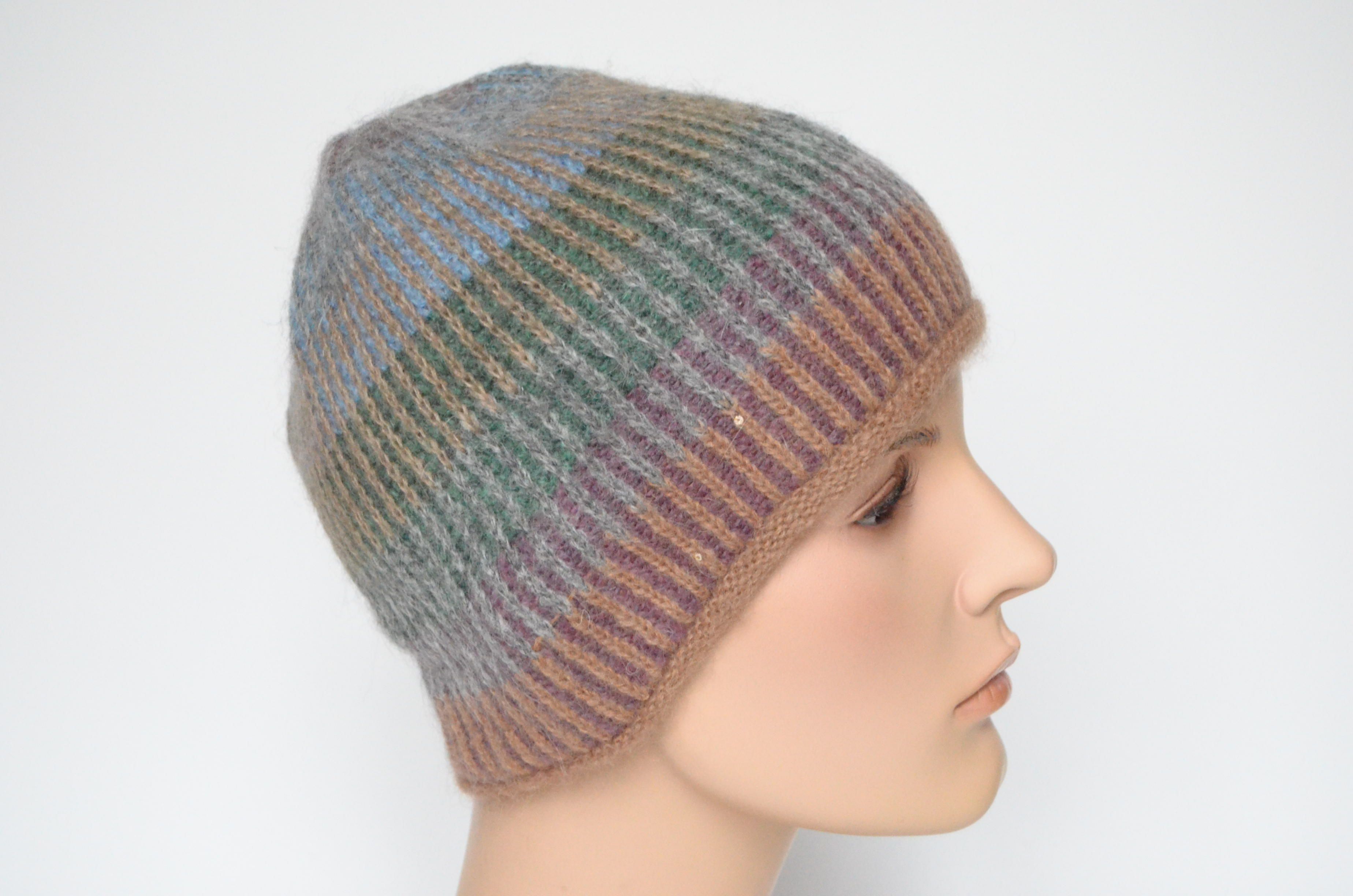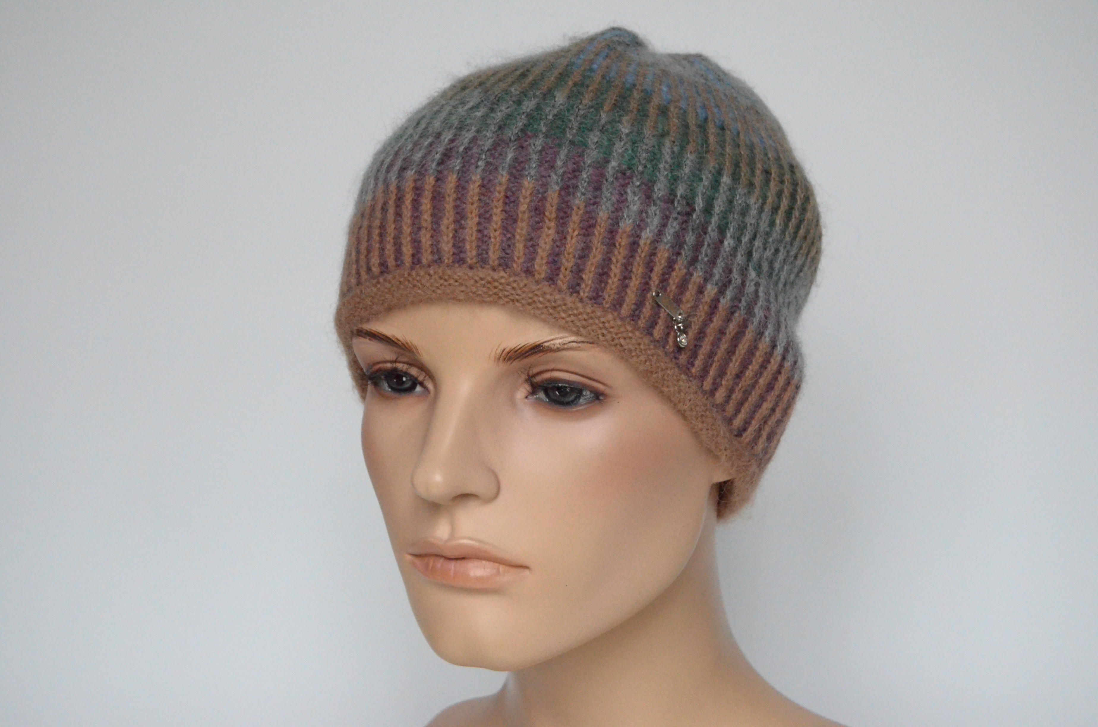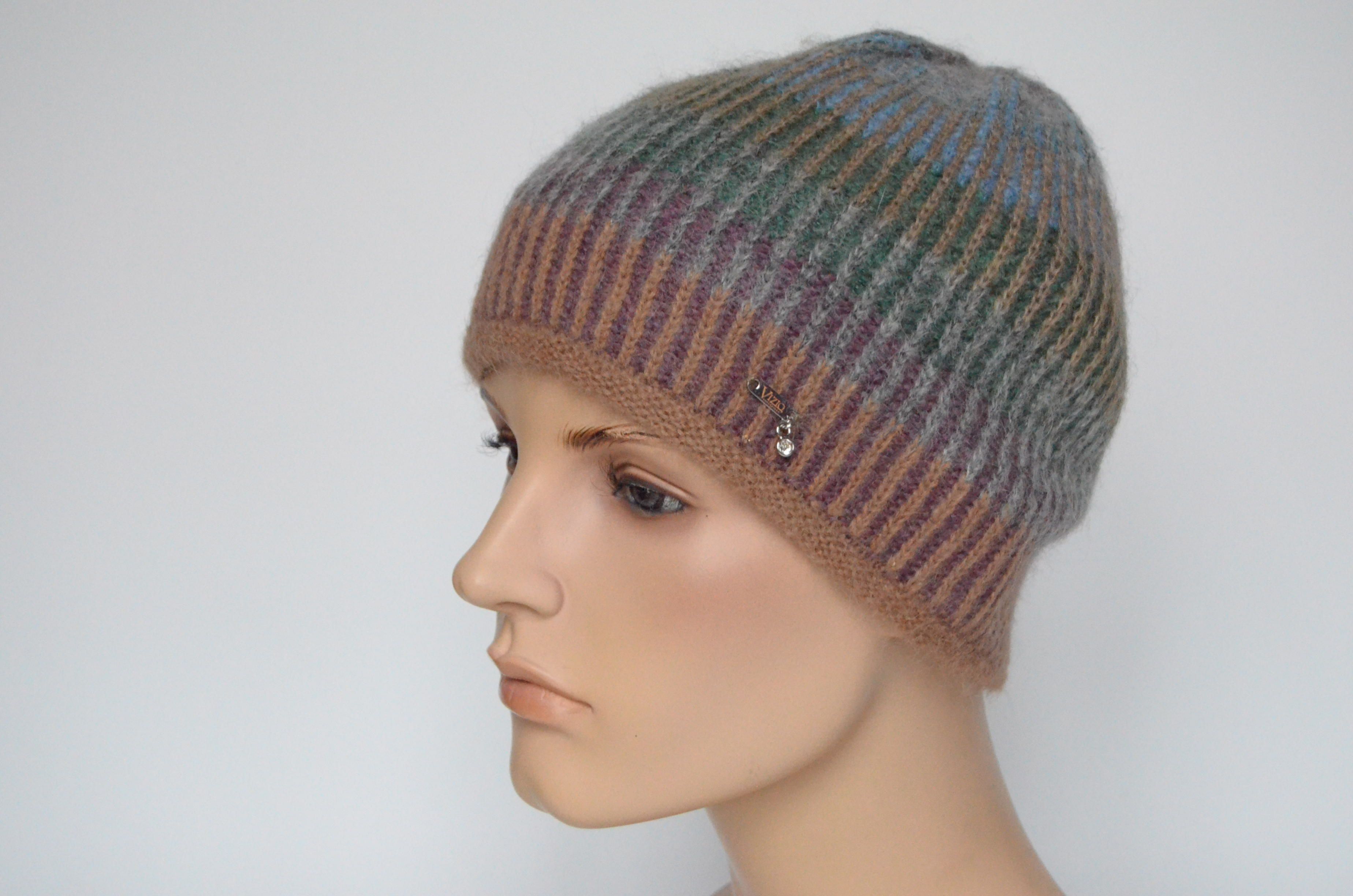 Итальянская разноцветная коричневая вязаная шапка из альпака Vizio Италия 6520 купить в интернет магазине головных уборов Италии для женщин