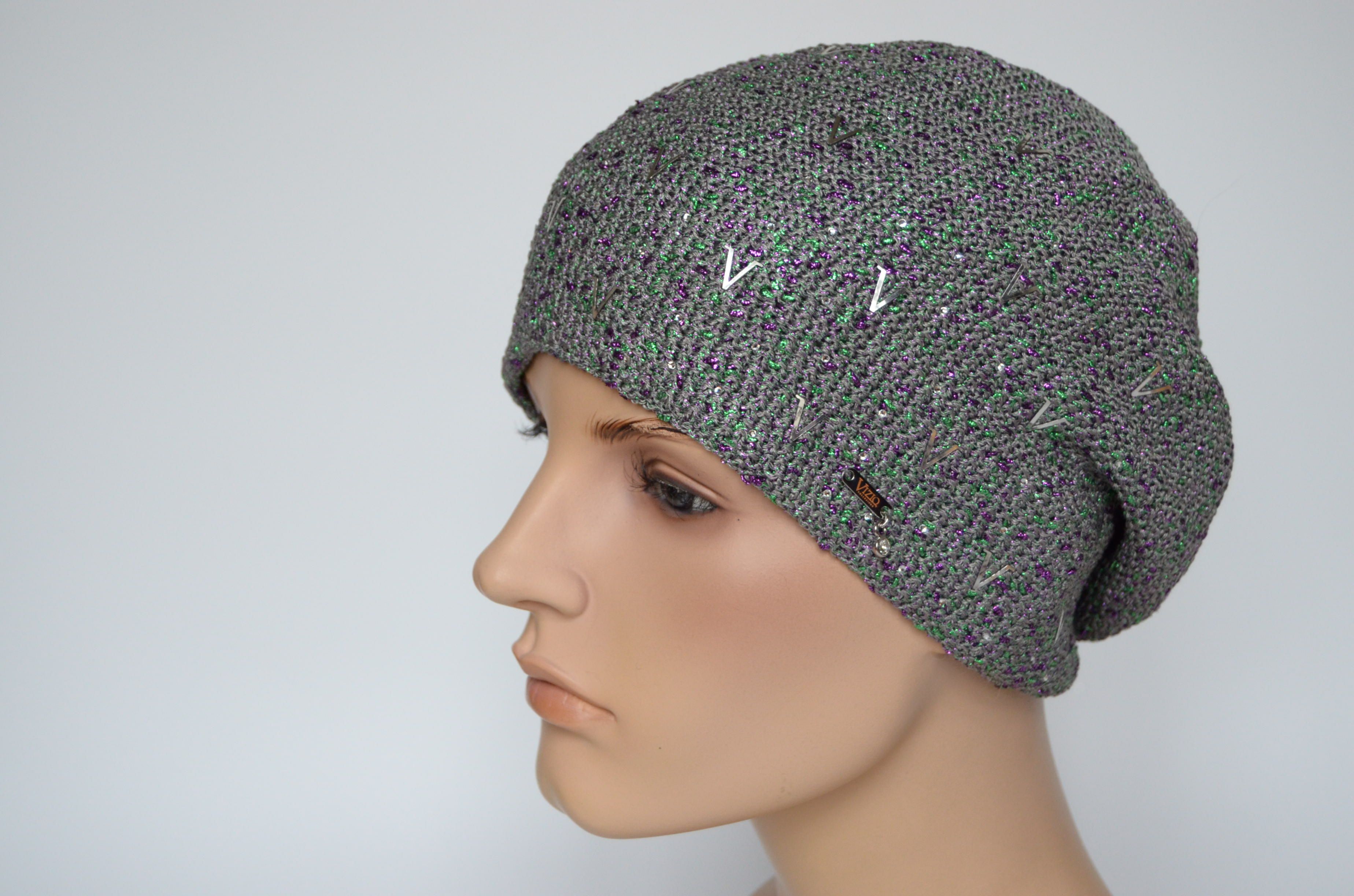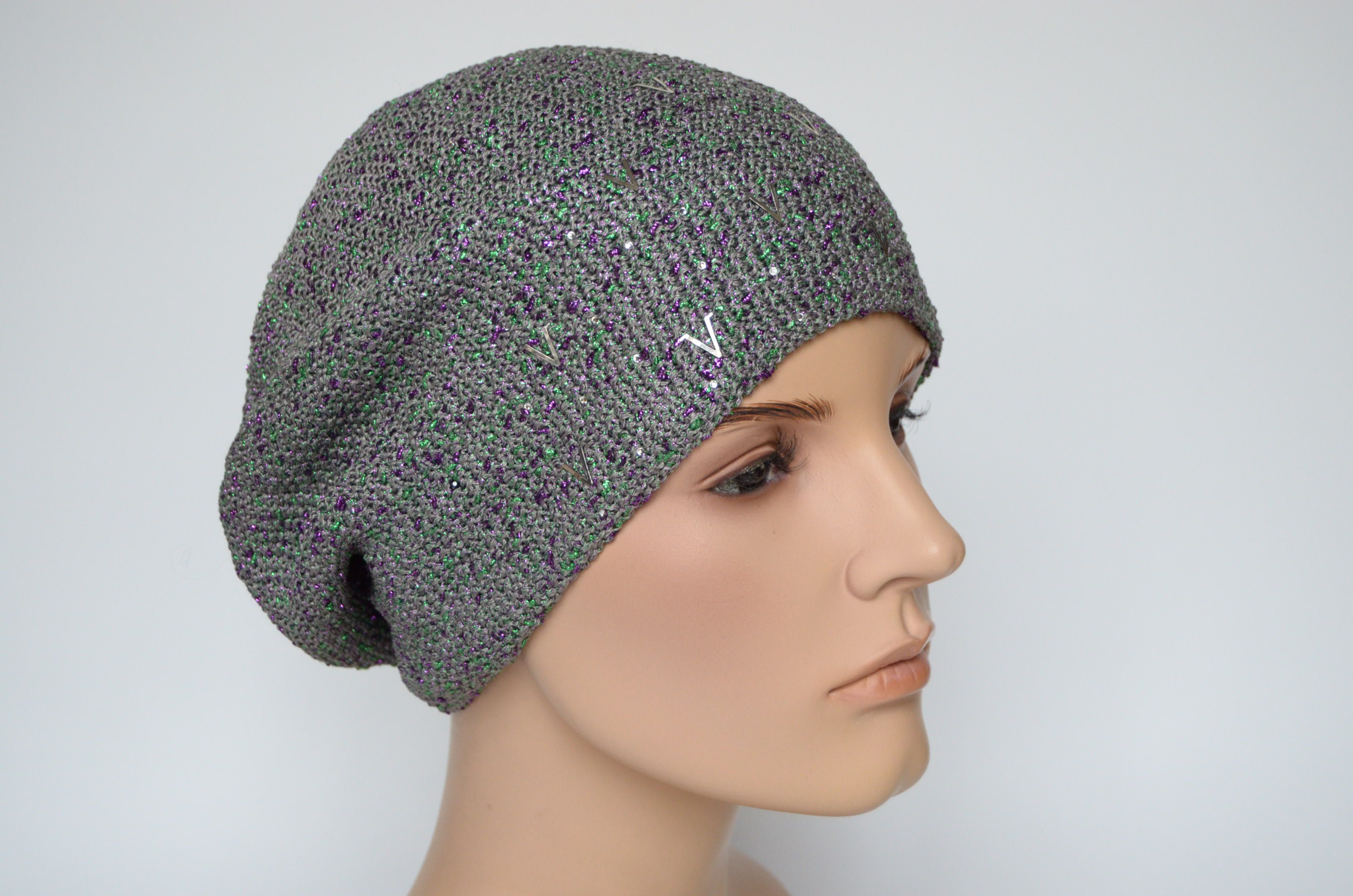 Итальянский разноцветный берет весна - осень с буквами Vizio Италия 7085 В купить в магазине вязаных головных уборов для женщин в Москве или с доставкой по России