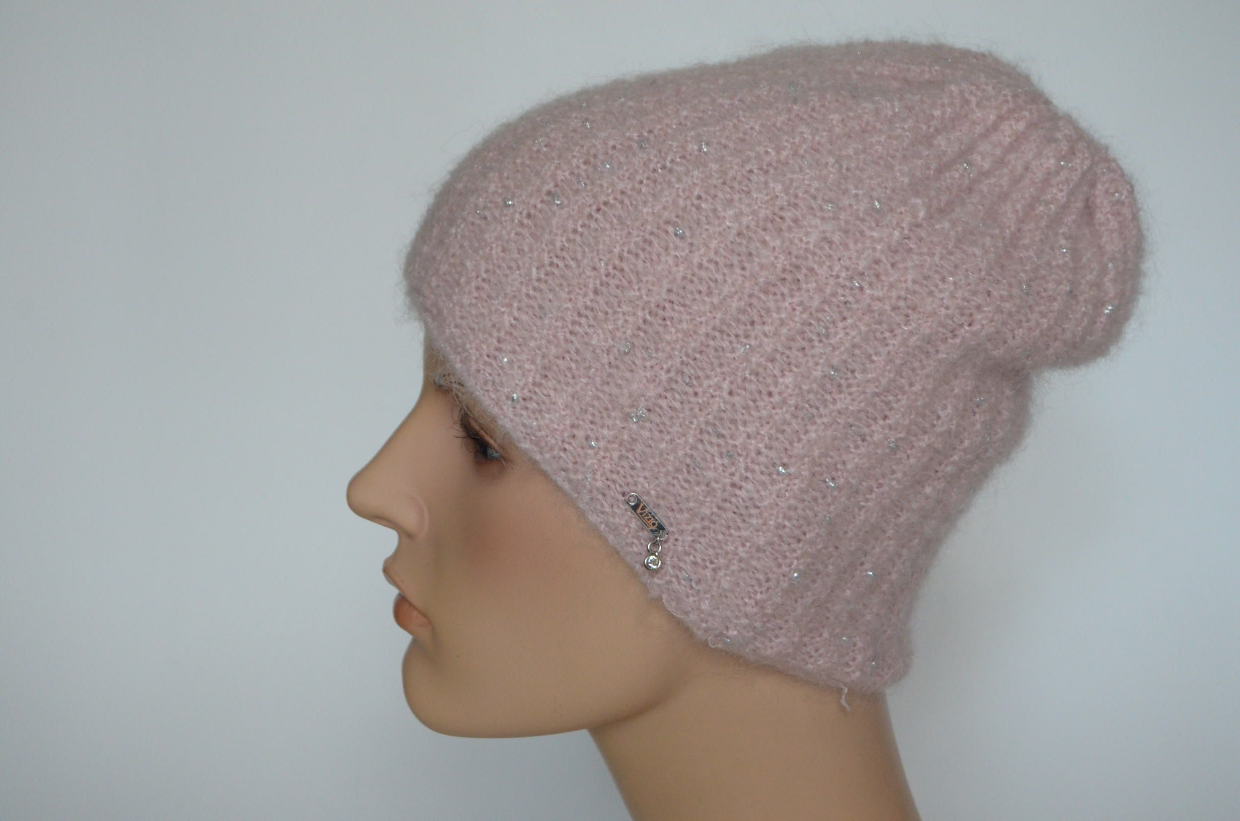Розовая шапка вязаная из мохера Vizio 1120 коллекция беретов и шапок Визио Италия зима 2023 - 2024 купить в интернет магазине женских головных уборов Vizio Collezione с доставкой по Москве и России