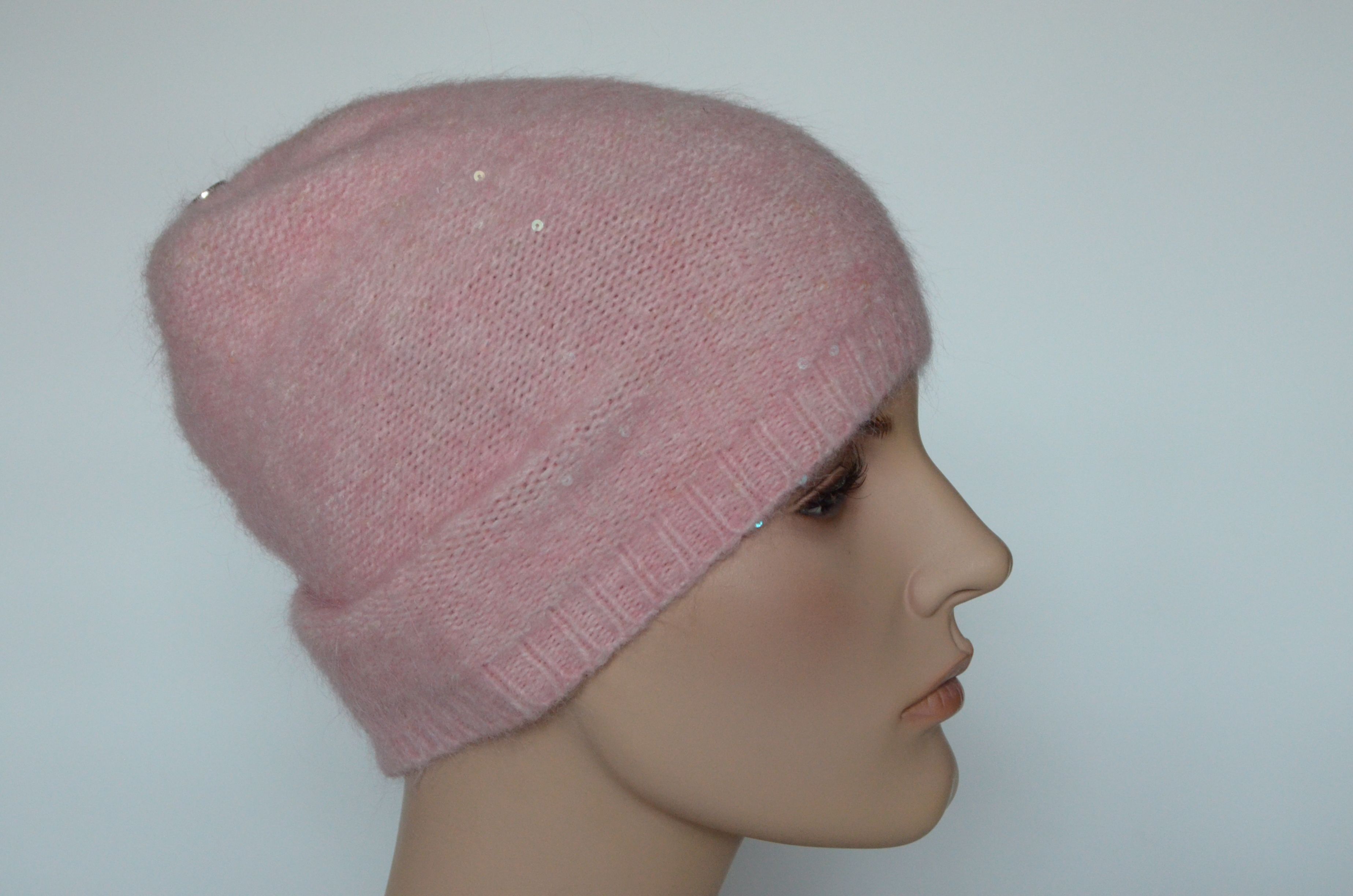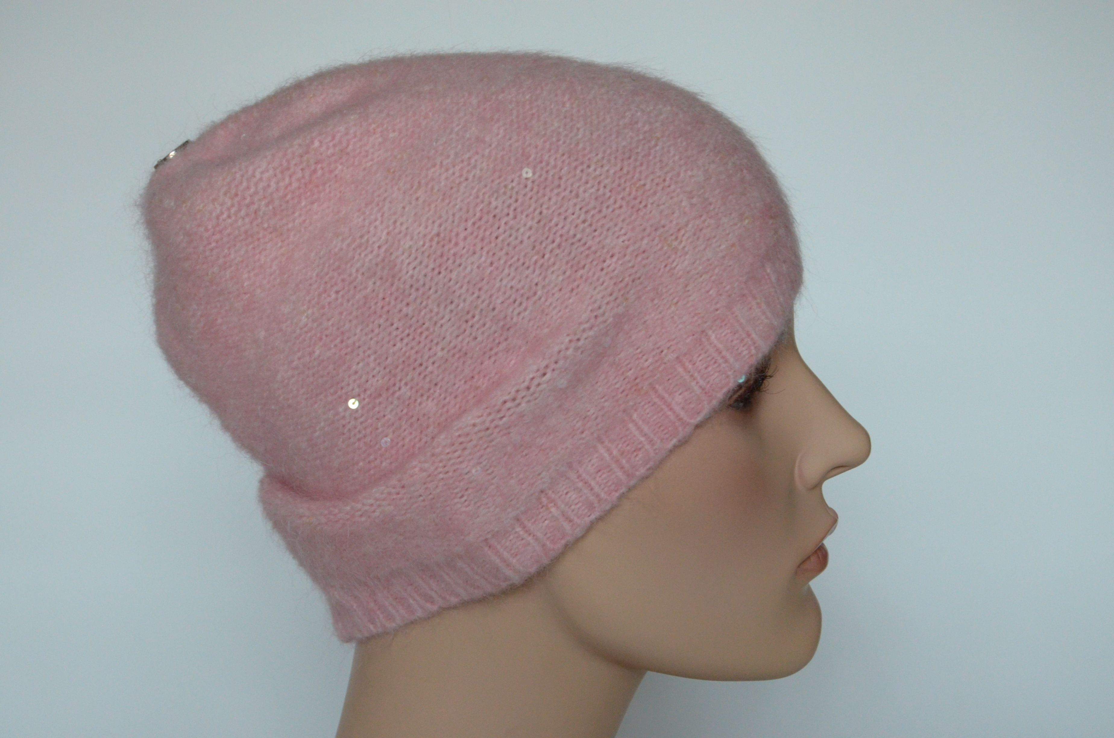 Розовая шапка тонкая зимняя с пайетками для женщин