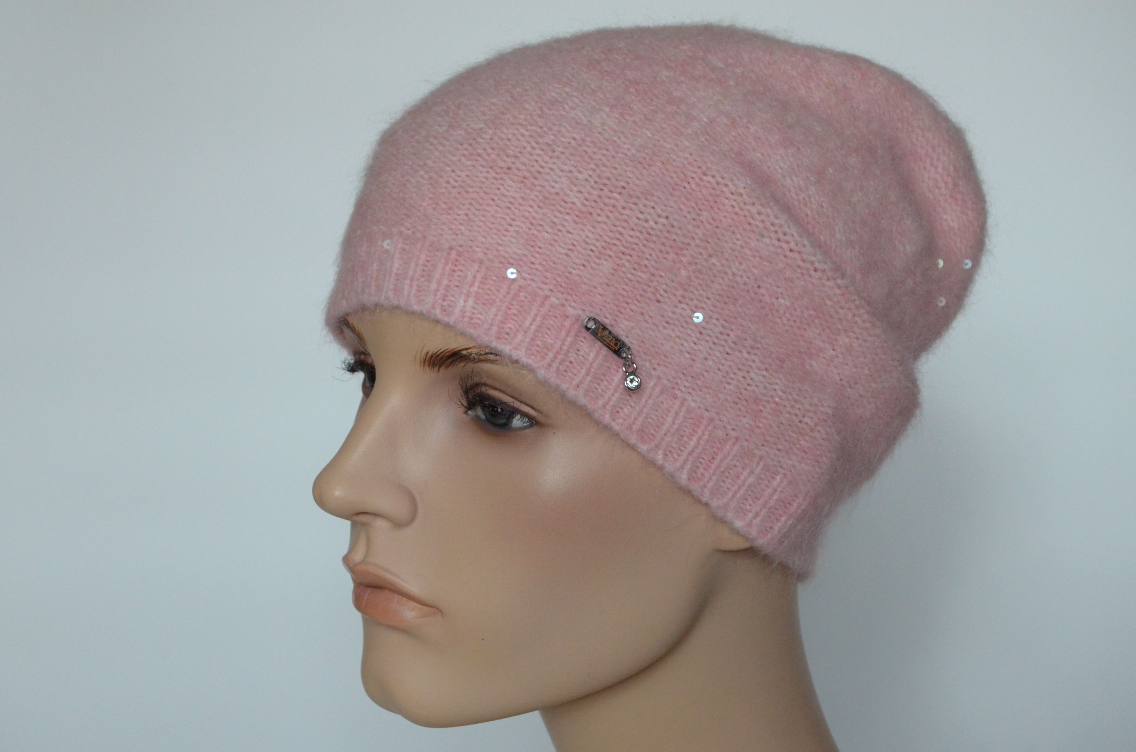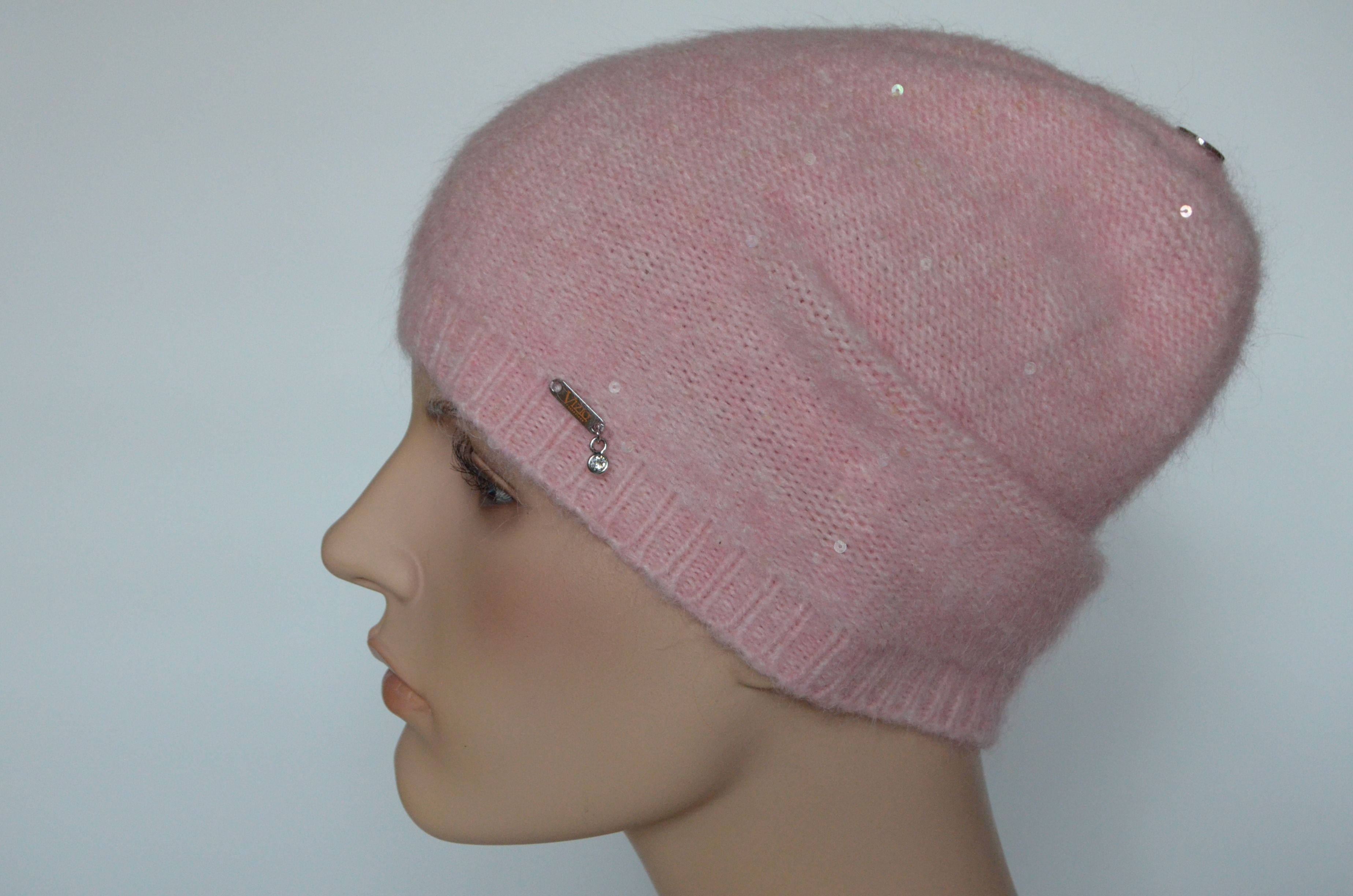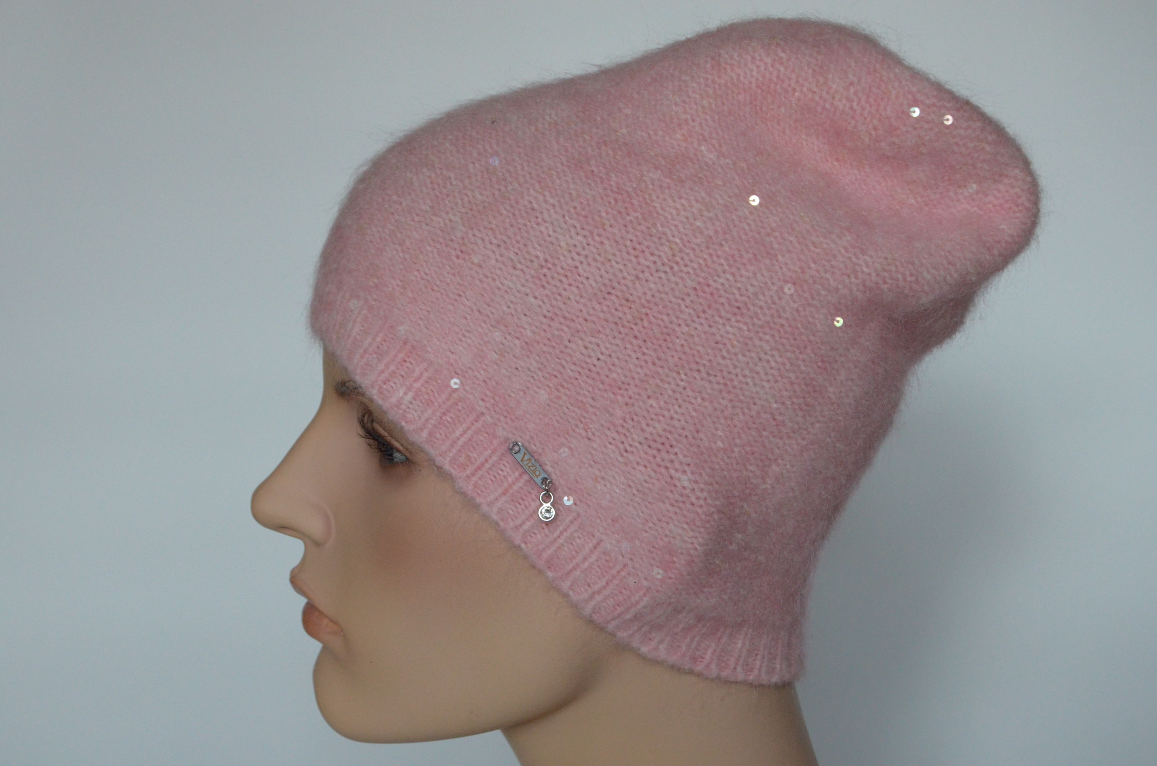 Зимняя тонкая вязаная шапка розового цвета Vizio Италия 6948 без вязаного подклада зимняя коллекция итальянских одинарных шапок с пайетками Визио