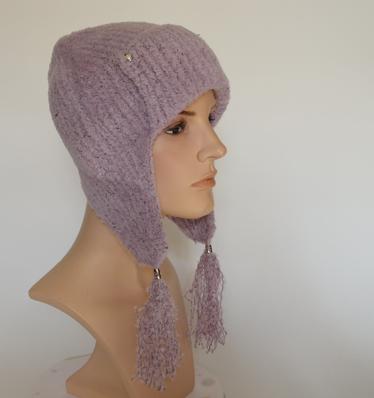 Женская шапка ушанка розовая с кисточками вязаная из кашемира Италия Визио 1112 UOL из коллекции кашемировых головных уборов Vizio зима 2023 - 2024