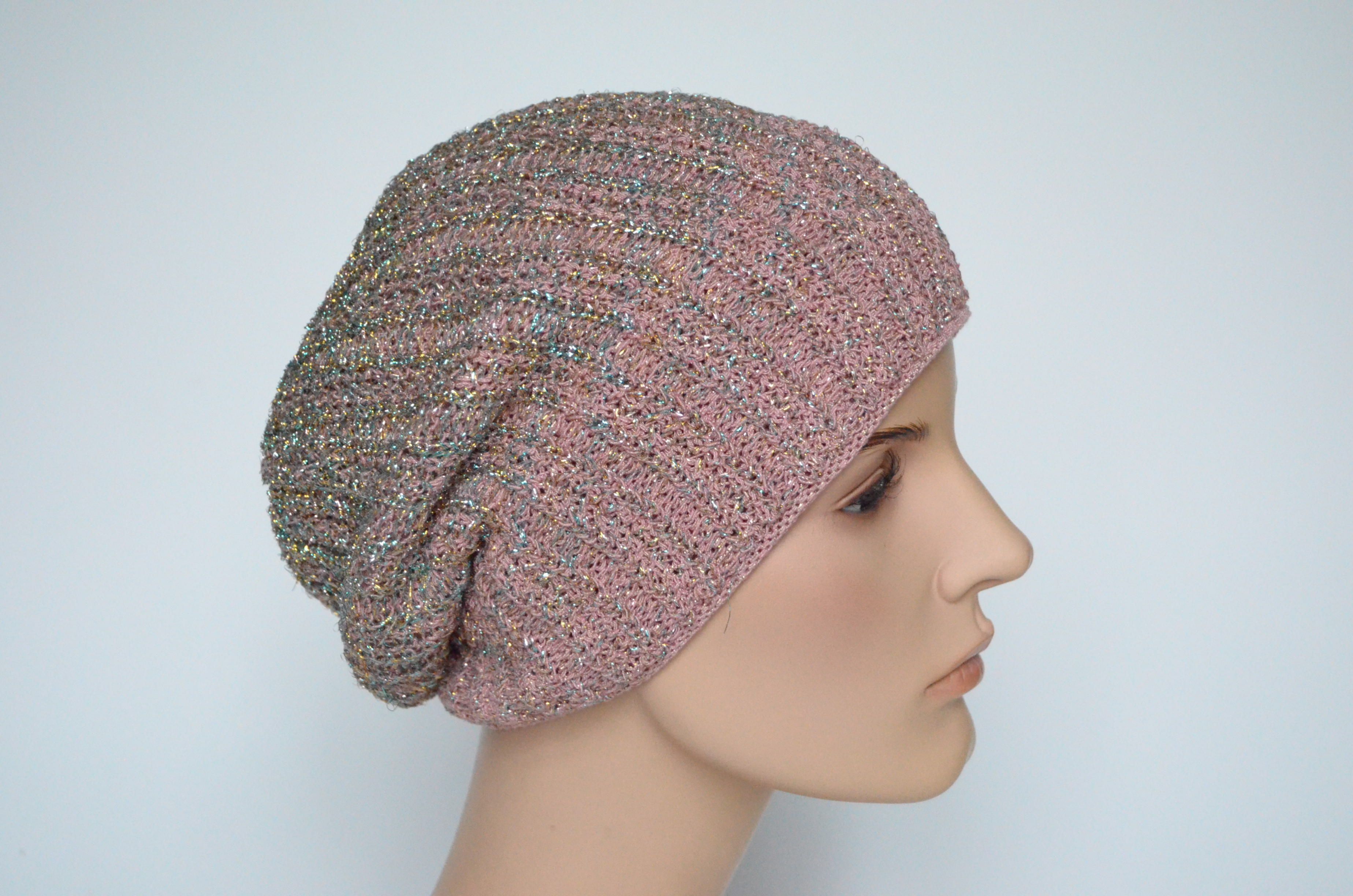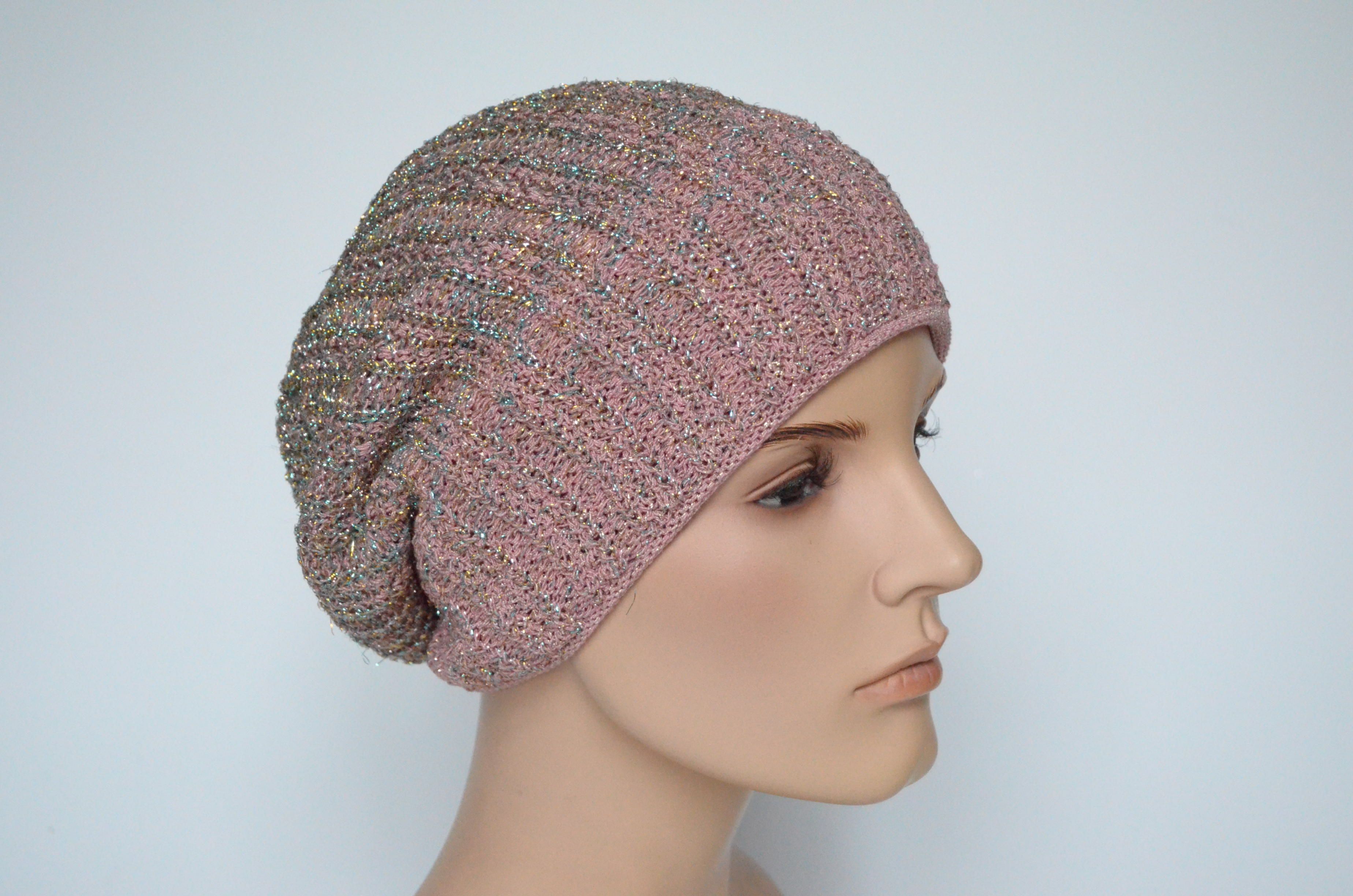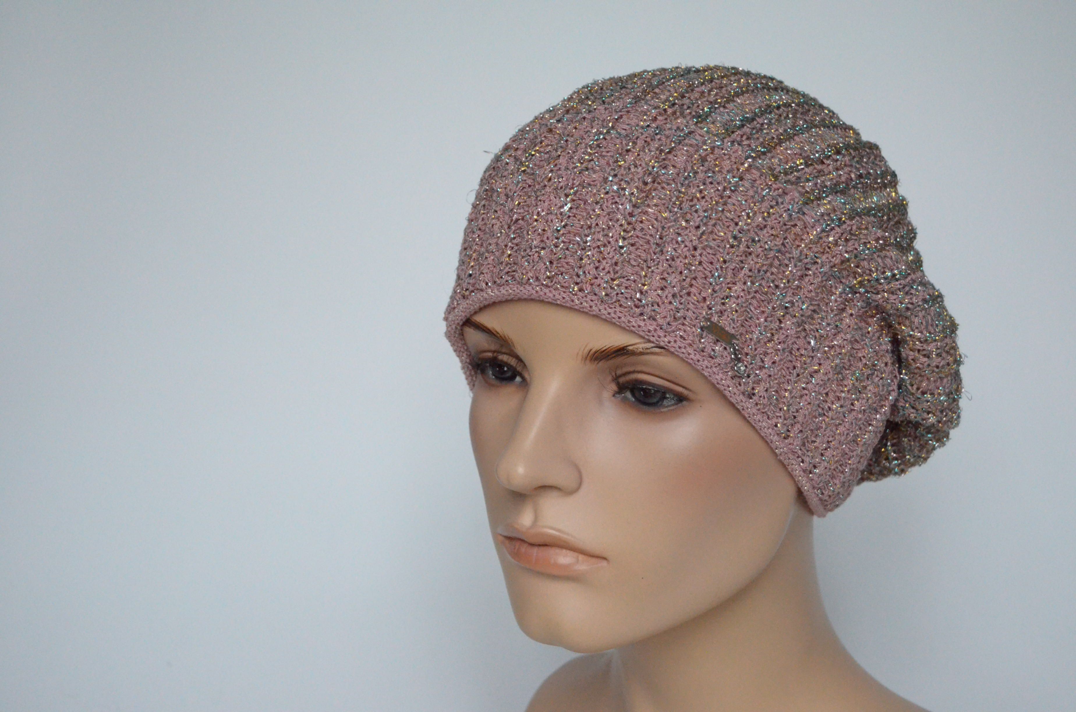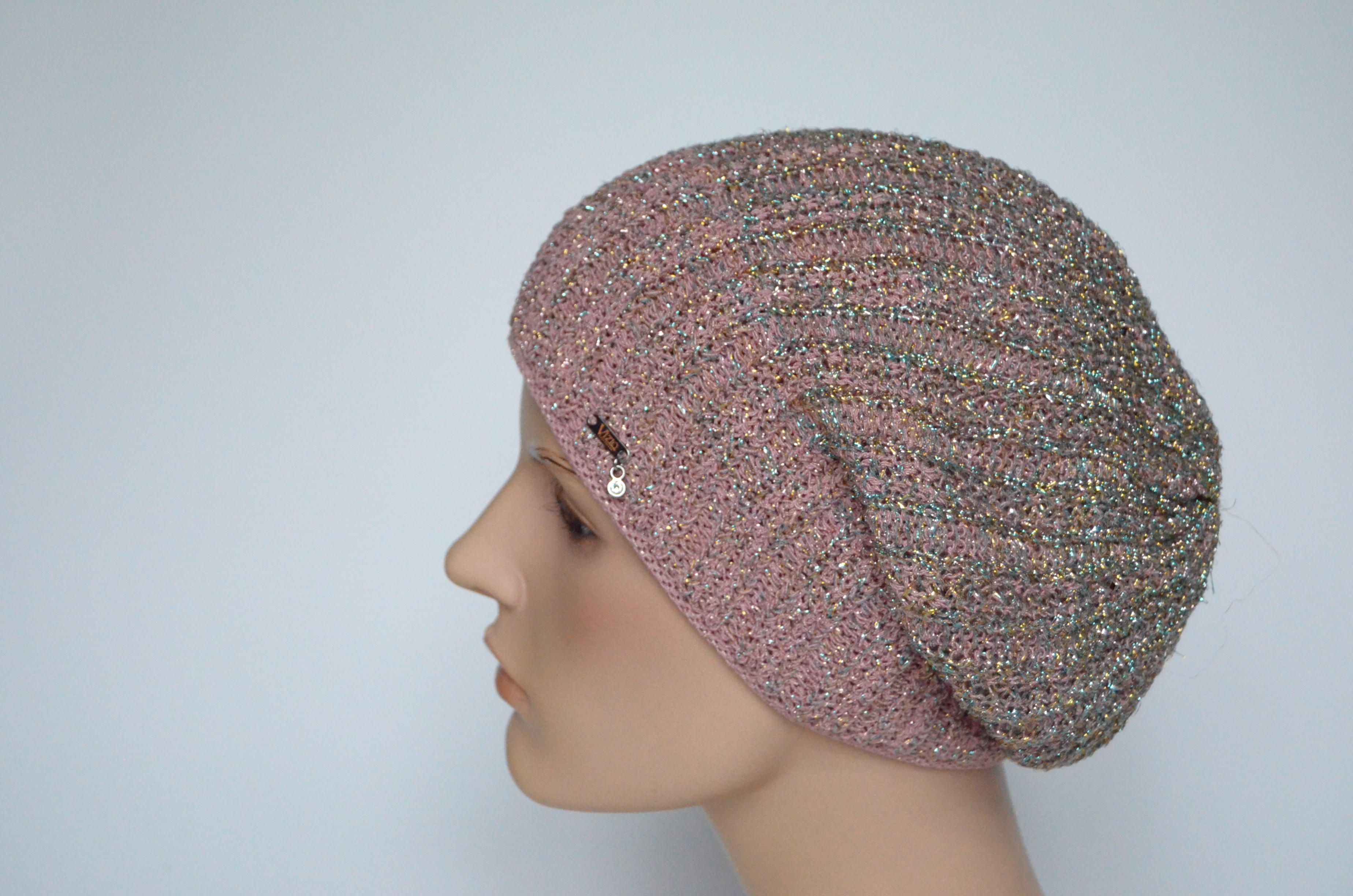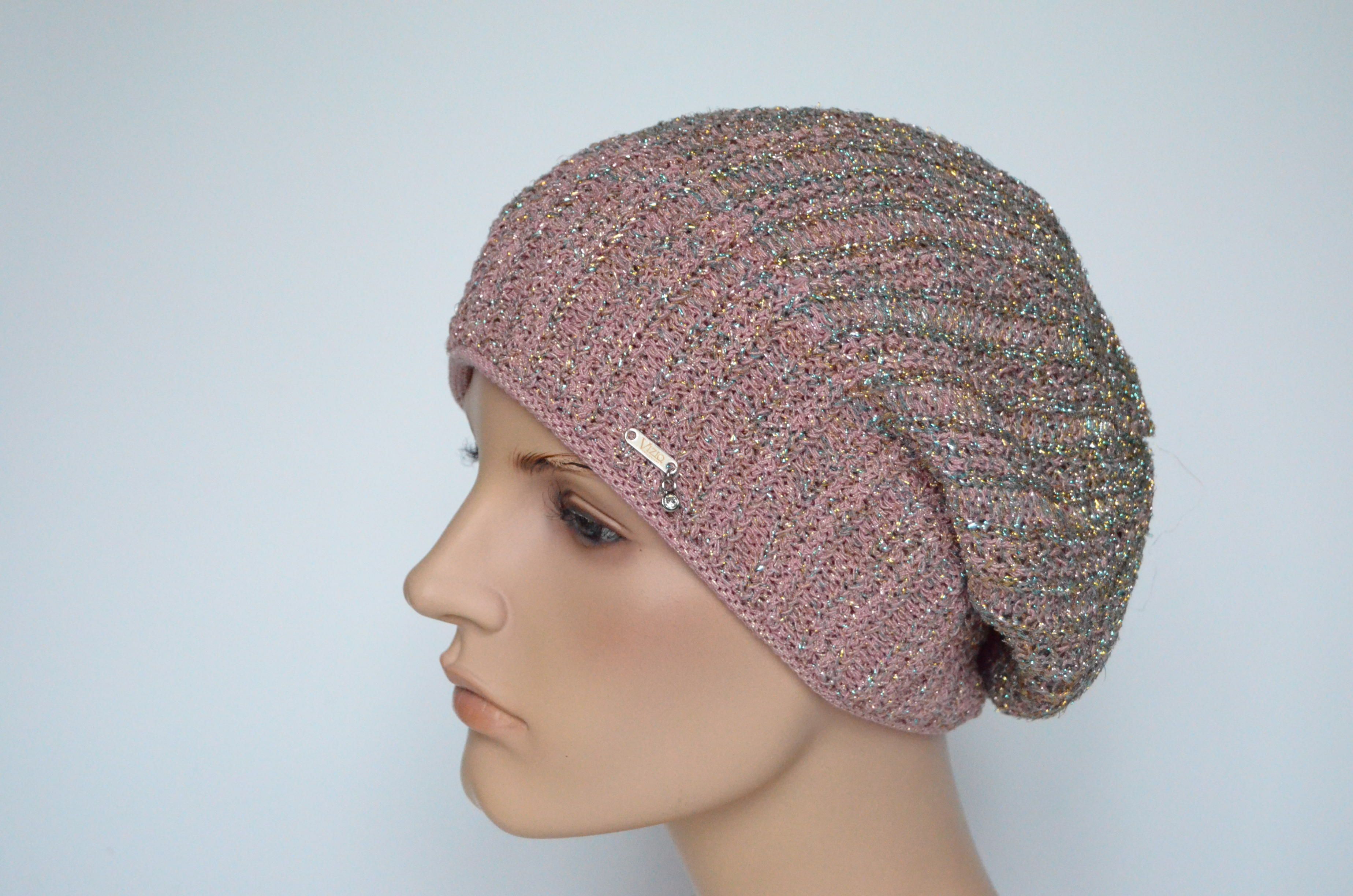 Розовый женский берет на весну - осень с люрексом Vizio Италия 7066 купить в интернет магазине итальянских вязаных беретов для женщин Визио