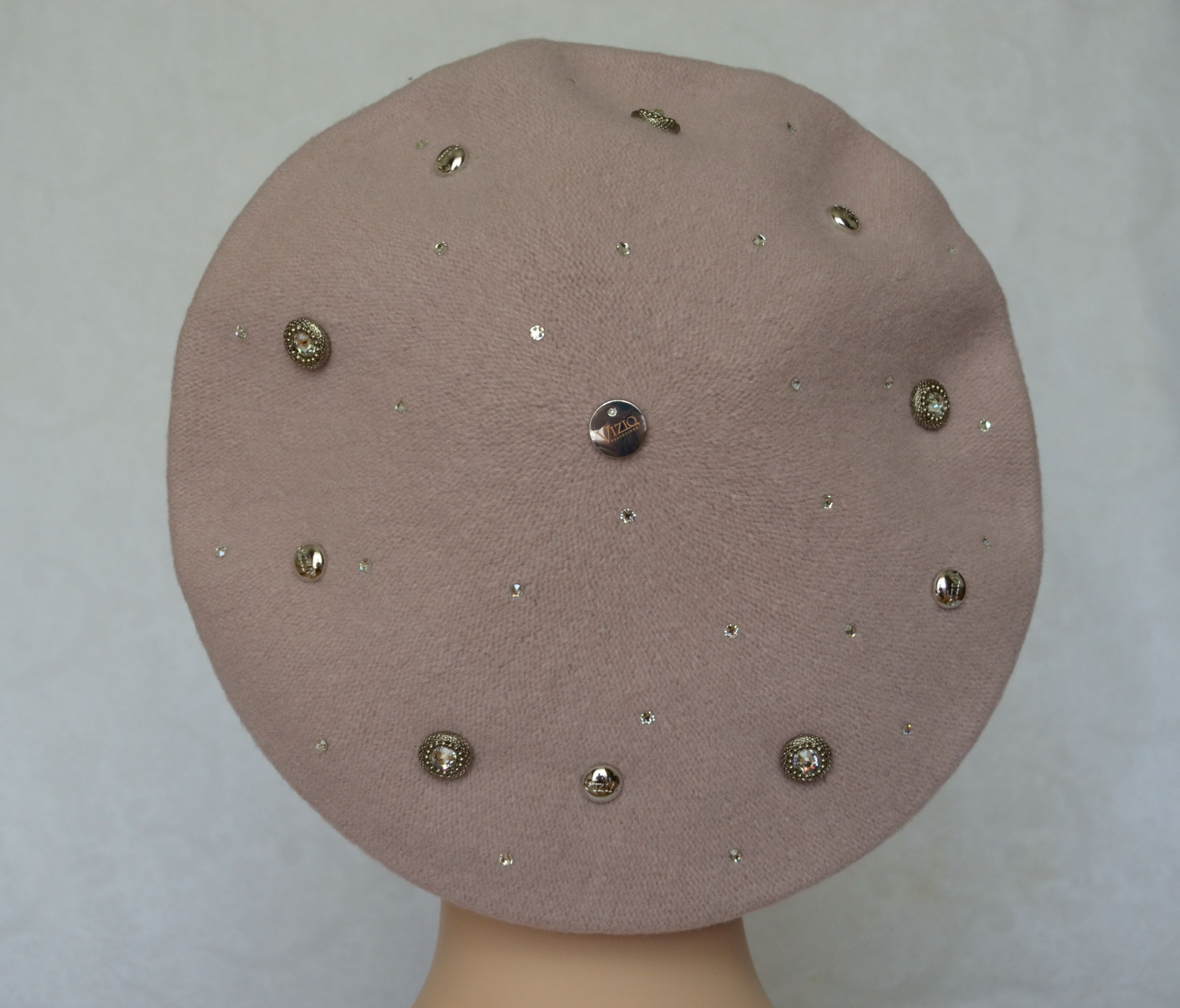 Женский розовый фетровый берет Vizio Италия 3633 берет из фетра со стазами Swarovski итальянского дизайнера женских головных уборов Vizio Collezione