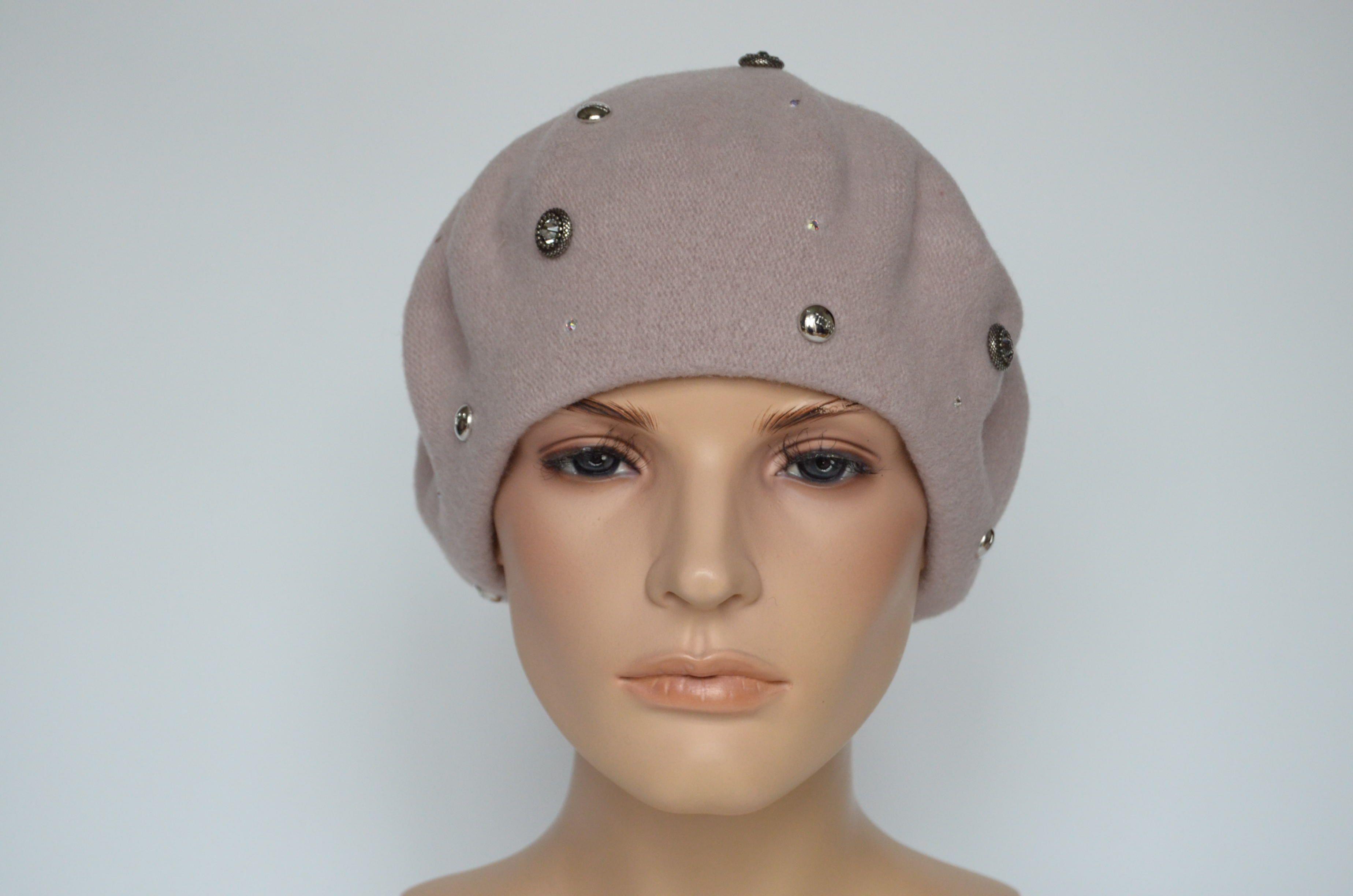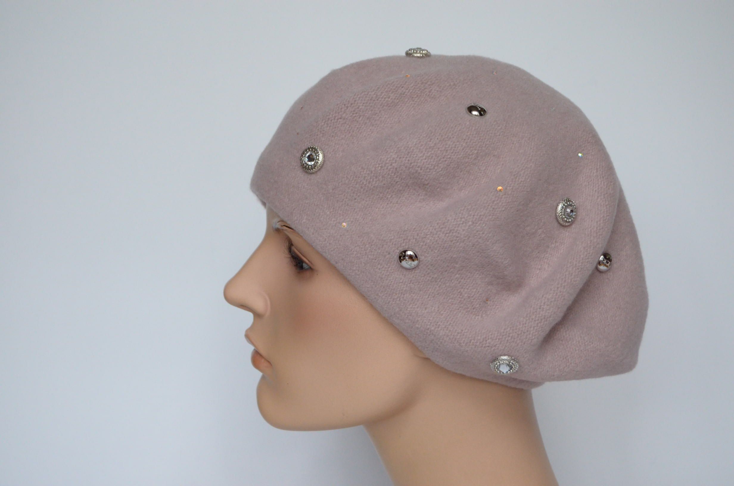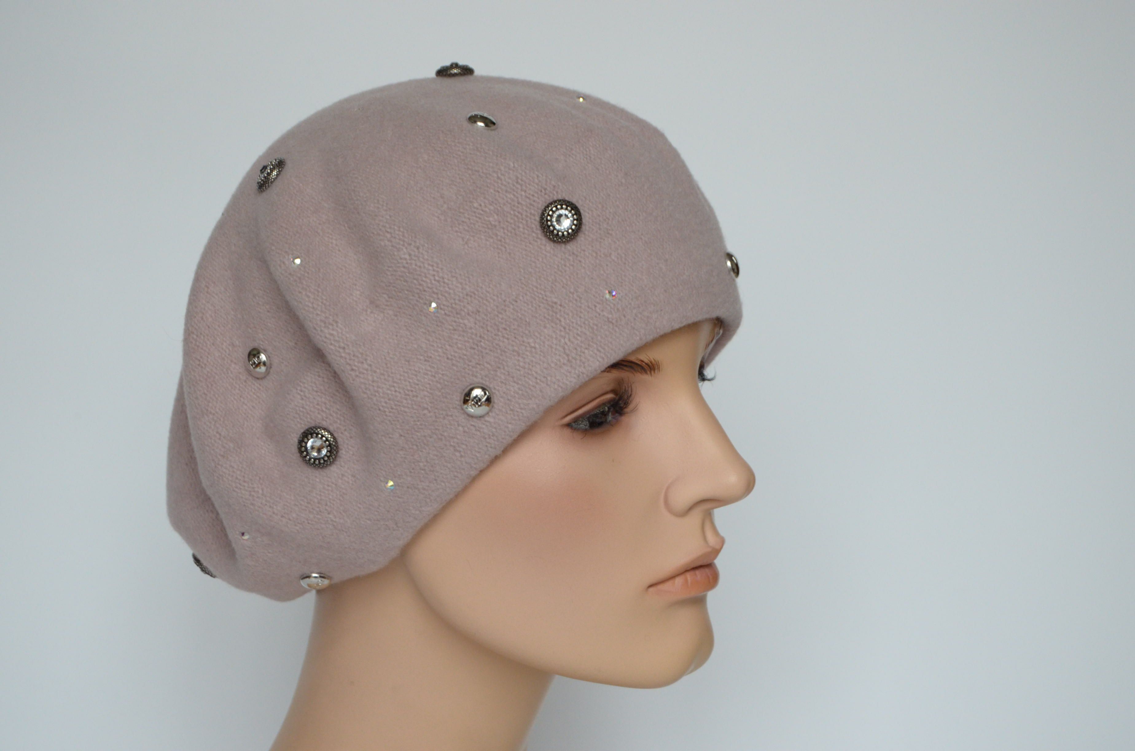 Фетровый берет розового цвета со стразами сваровски для женщин