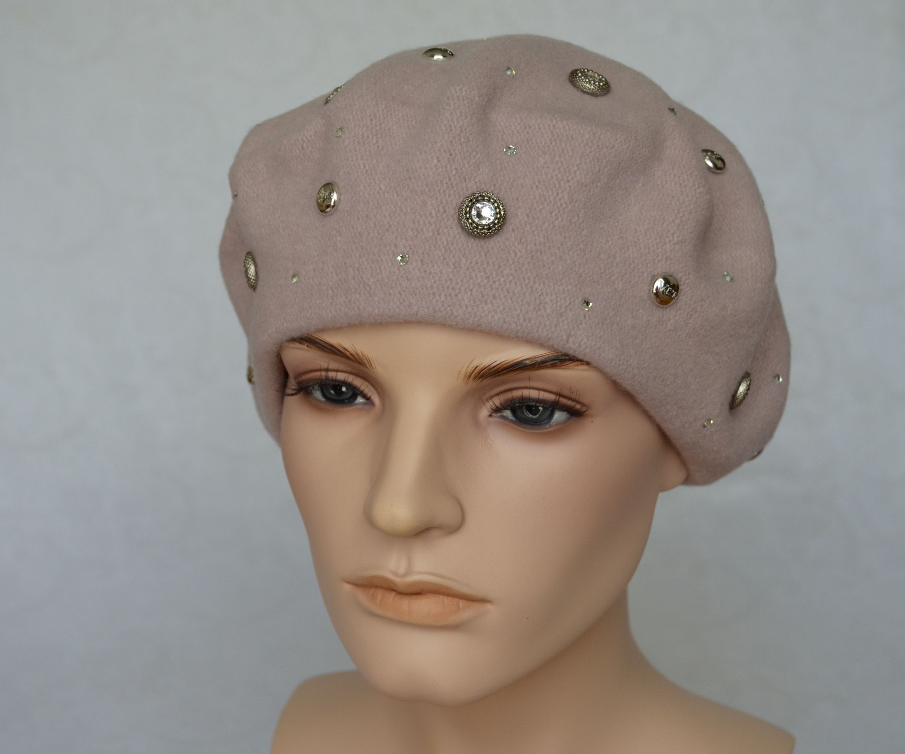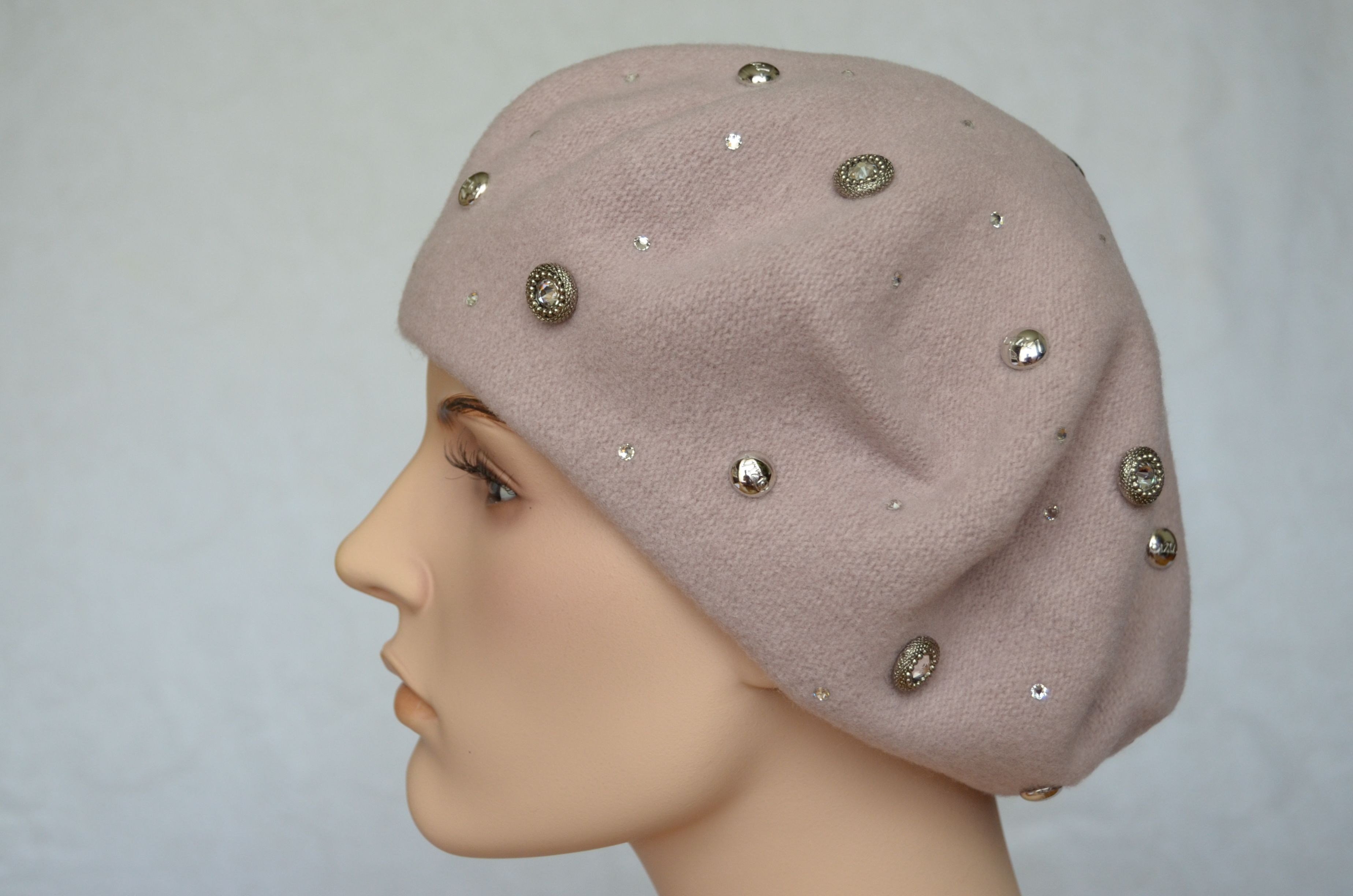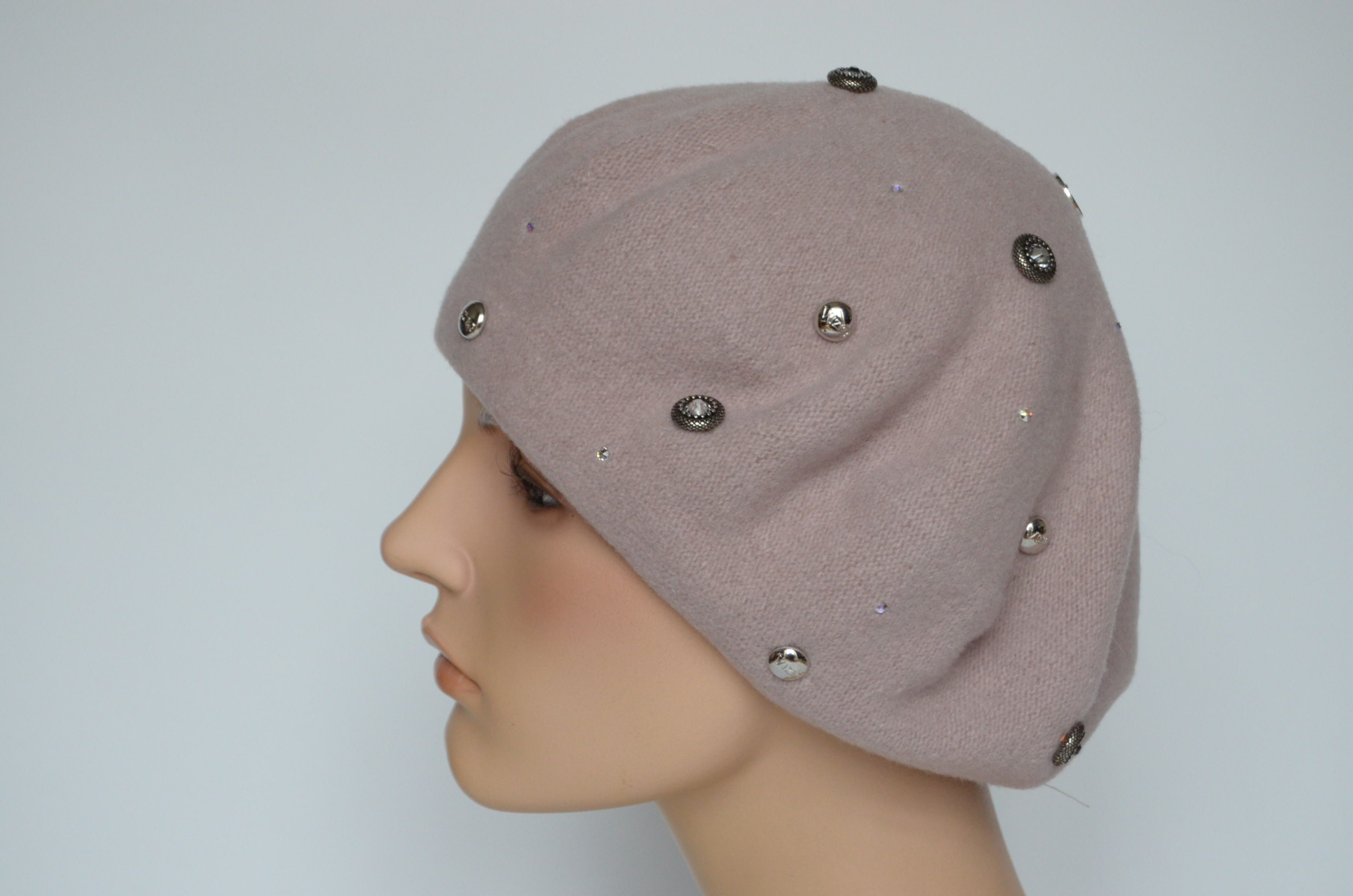 Фетровый берет розового цвета со стразами сваровски для женщин