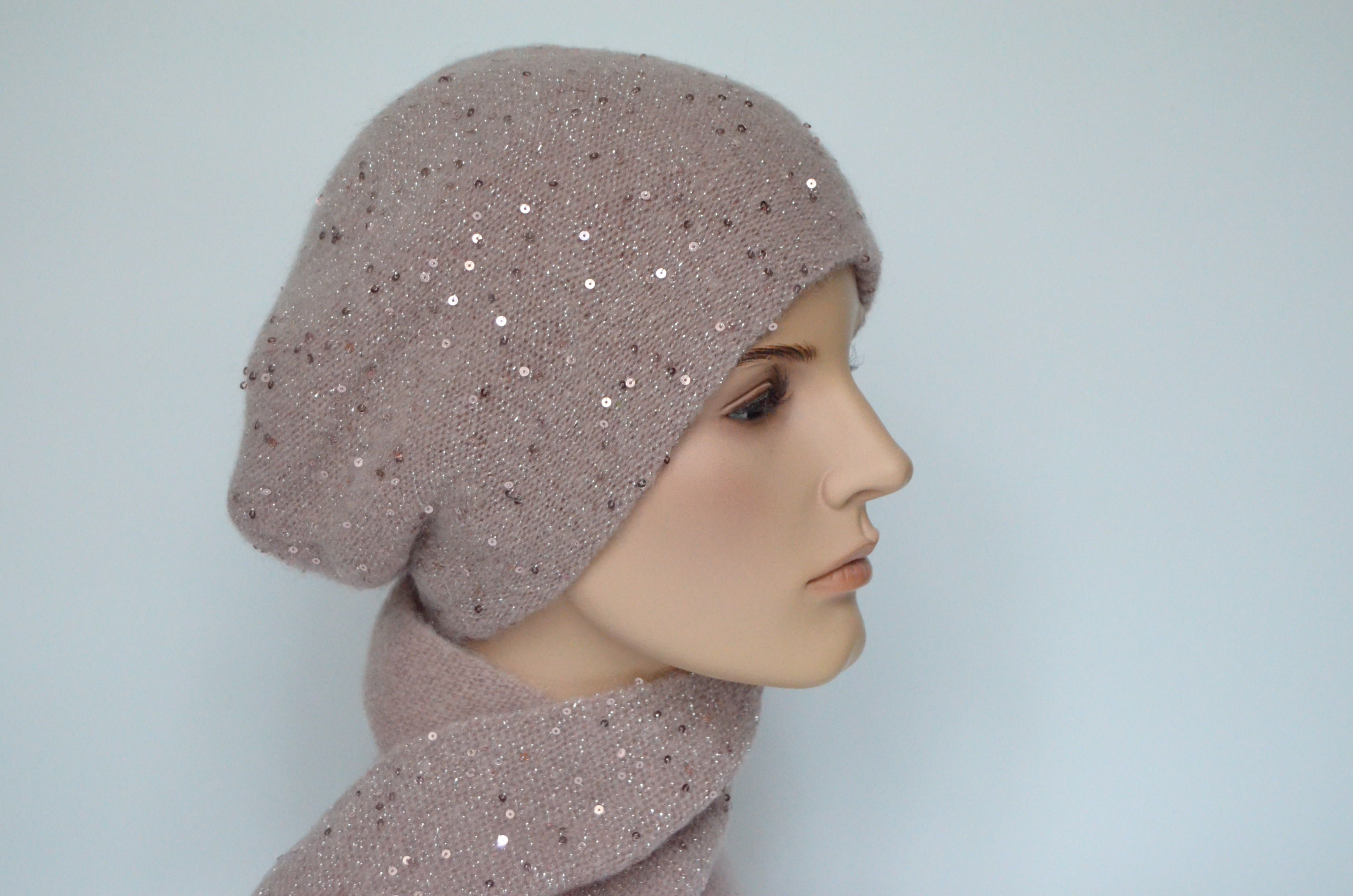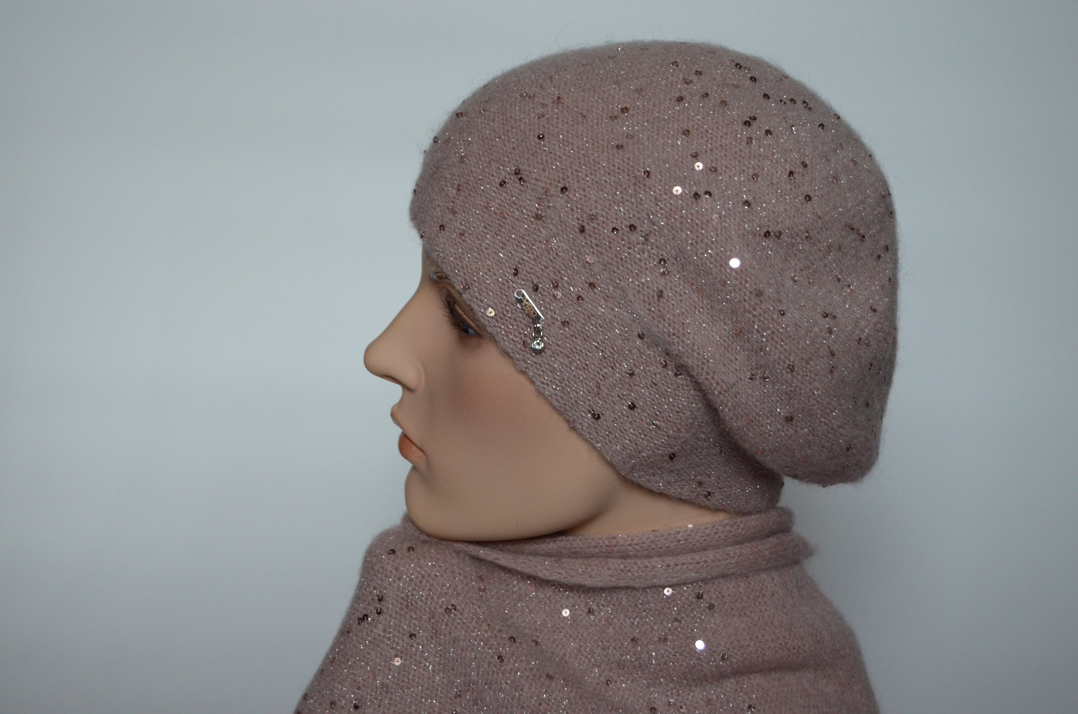 Состав берета: мохер 35 %, полиамид 25 %, шерсть 32 %, пайетки, полиэстер 6 %, эластан 2 %