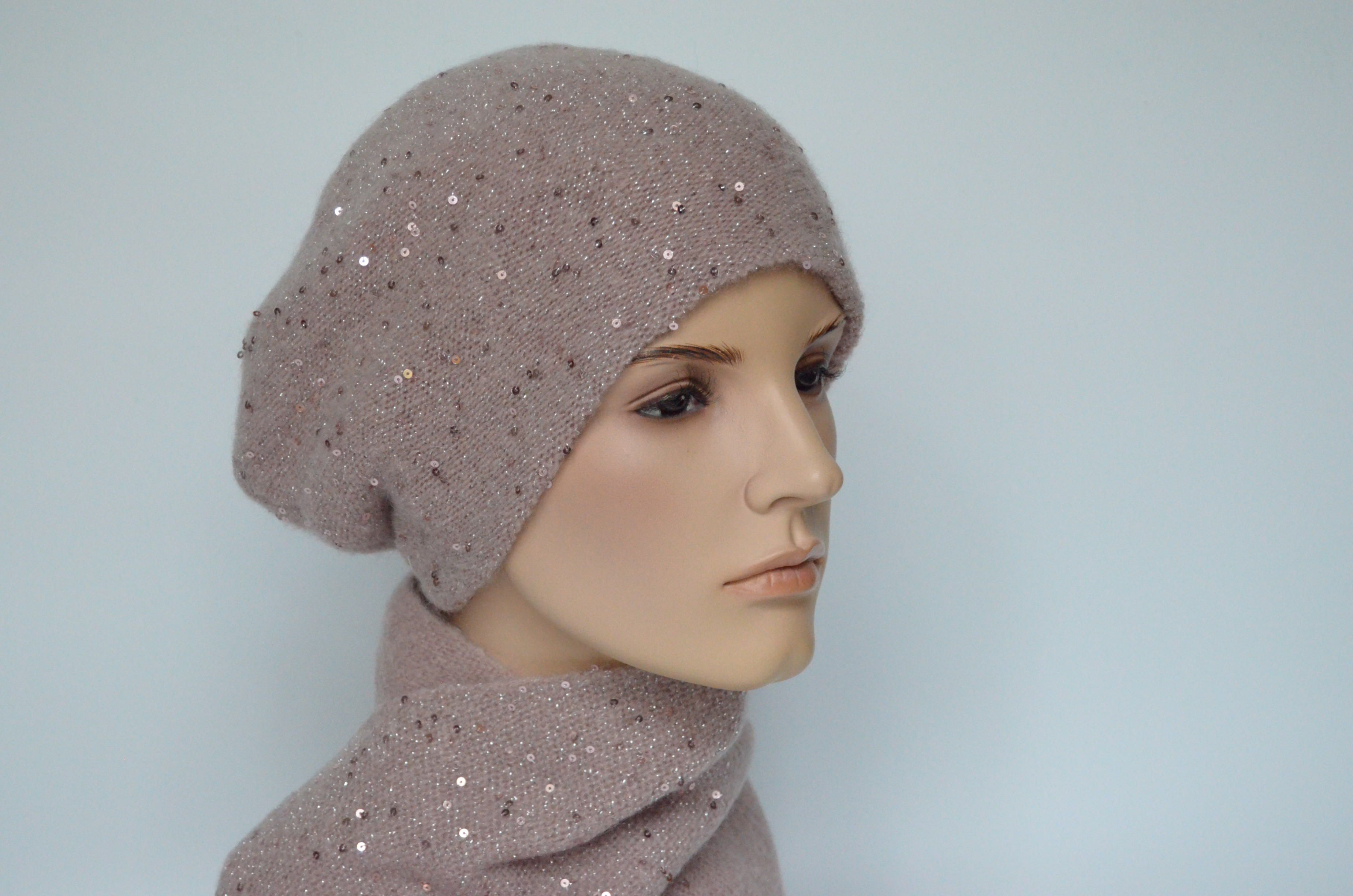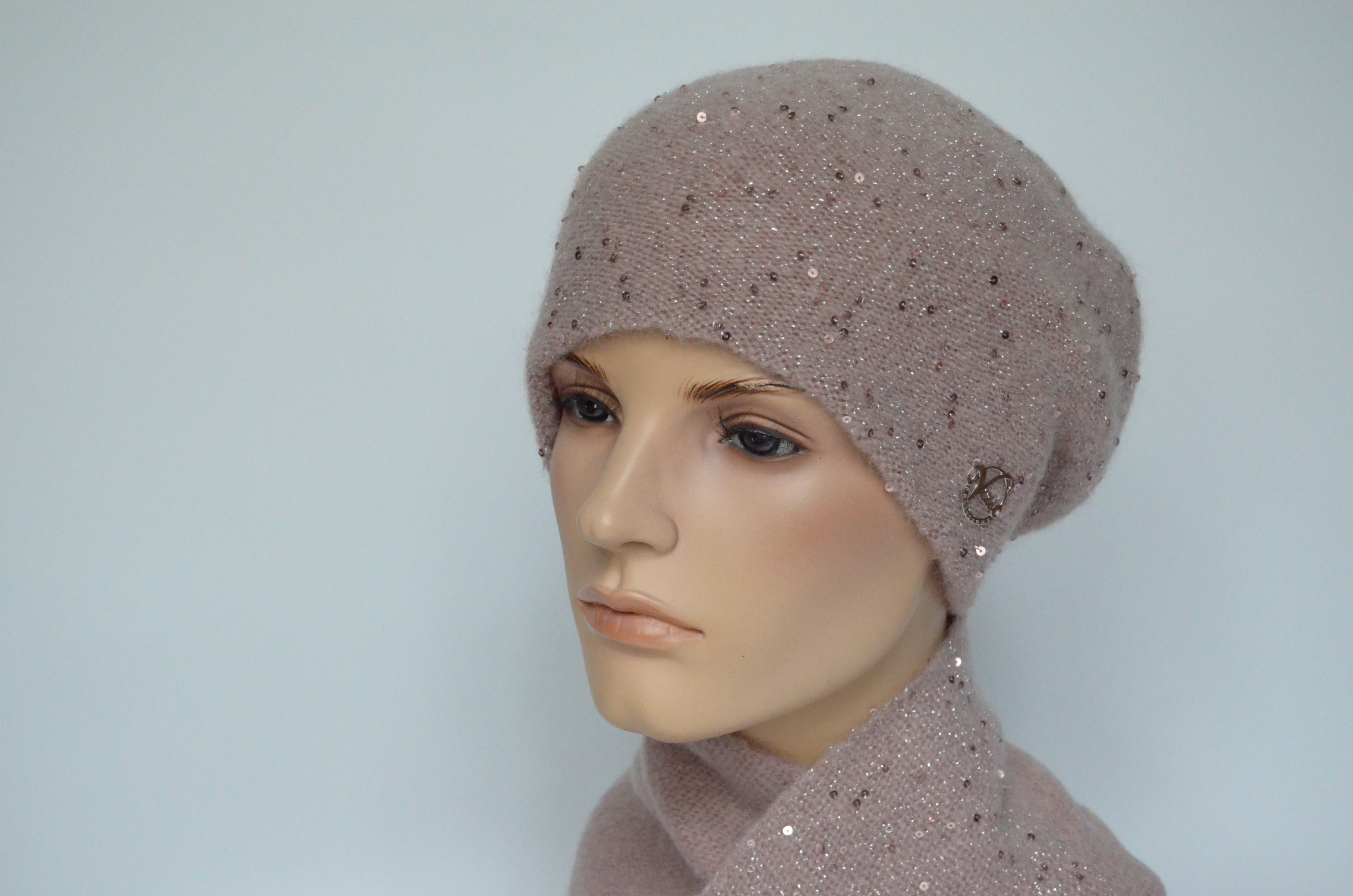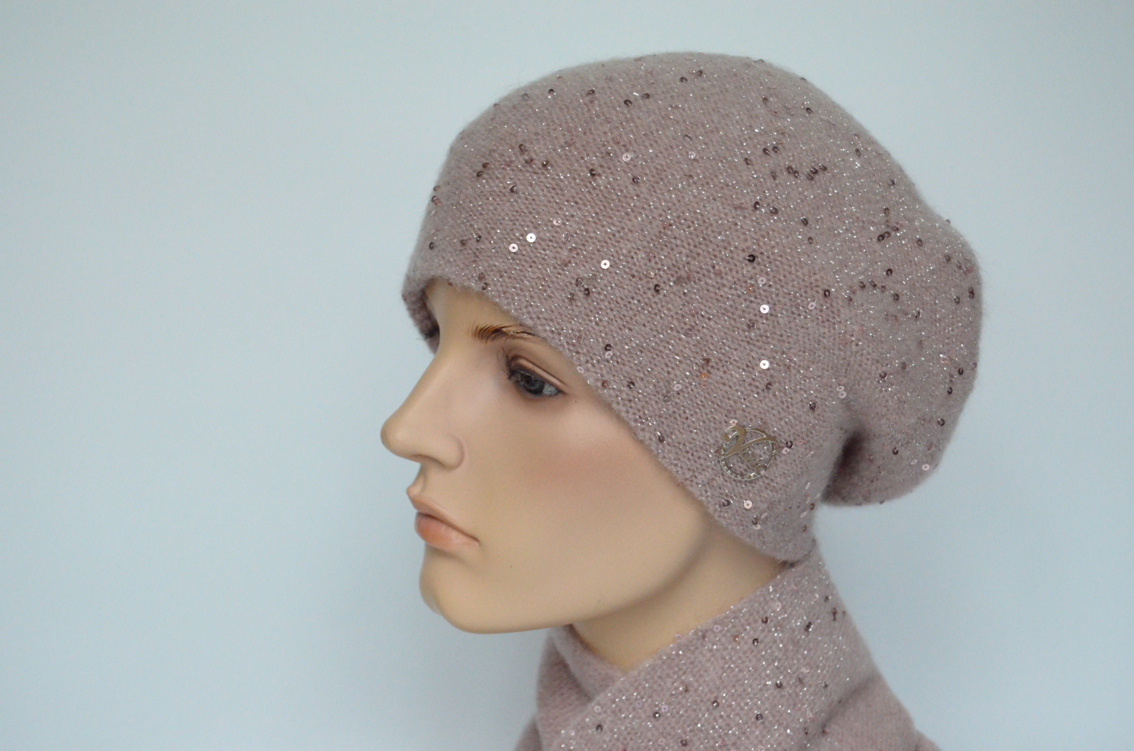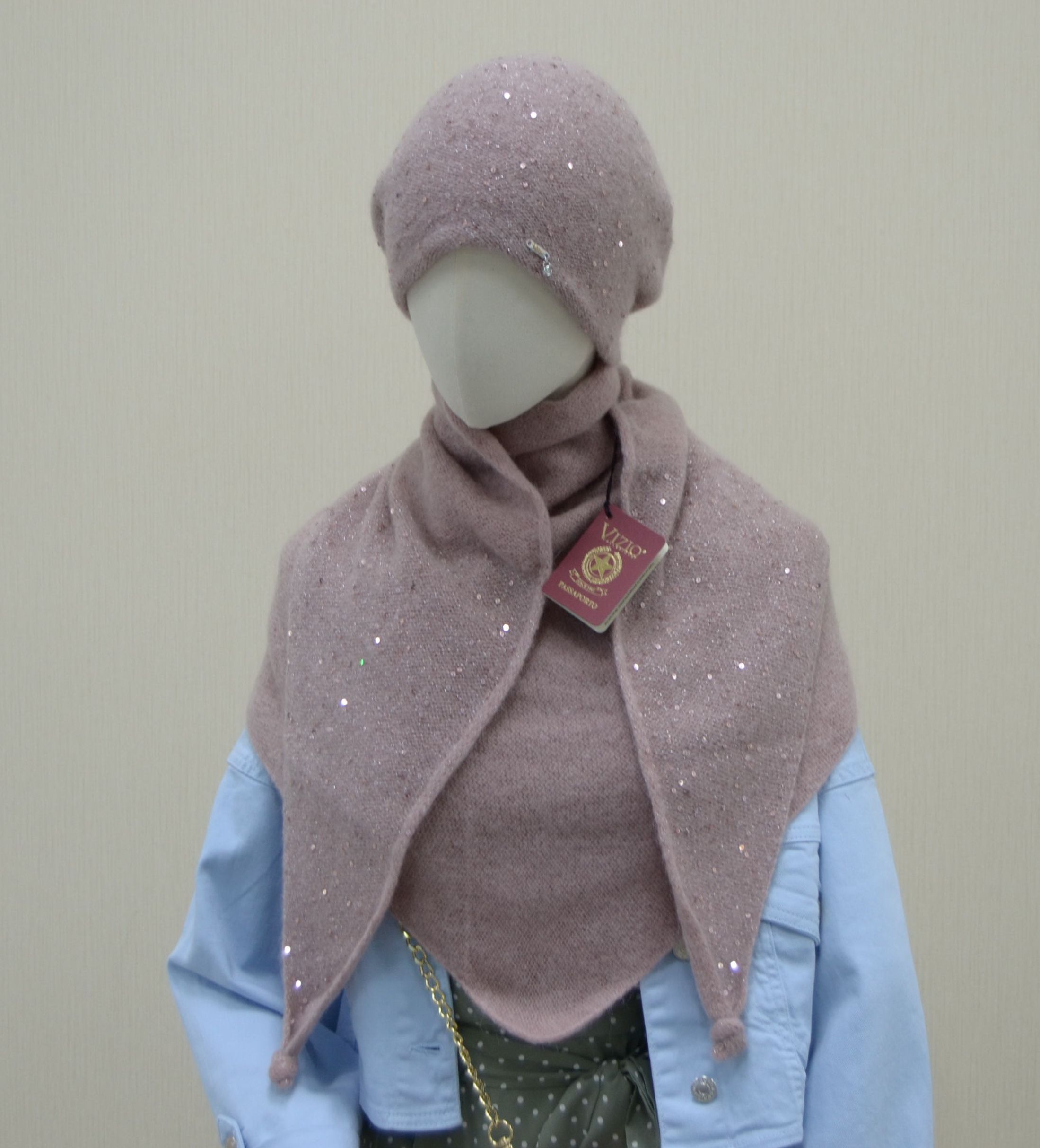 Итальянский розовый женский берет вязаный с пайетками Vizio 6943 коллекция осень - зима - весна купить в интернет магазине качественных головных уборов для женщин в Москве и с доставкой по России