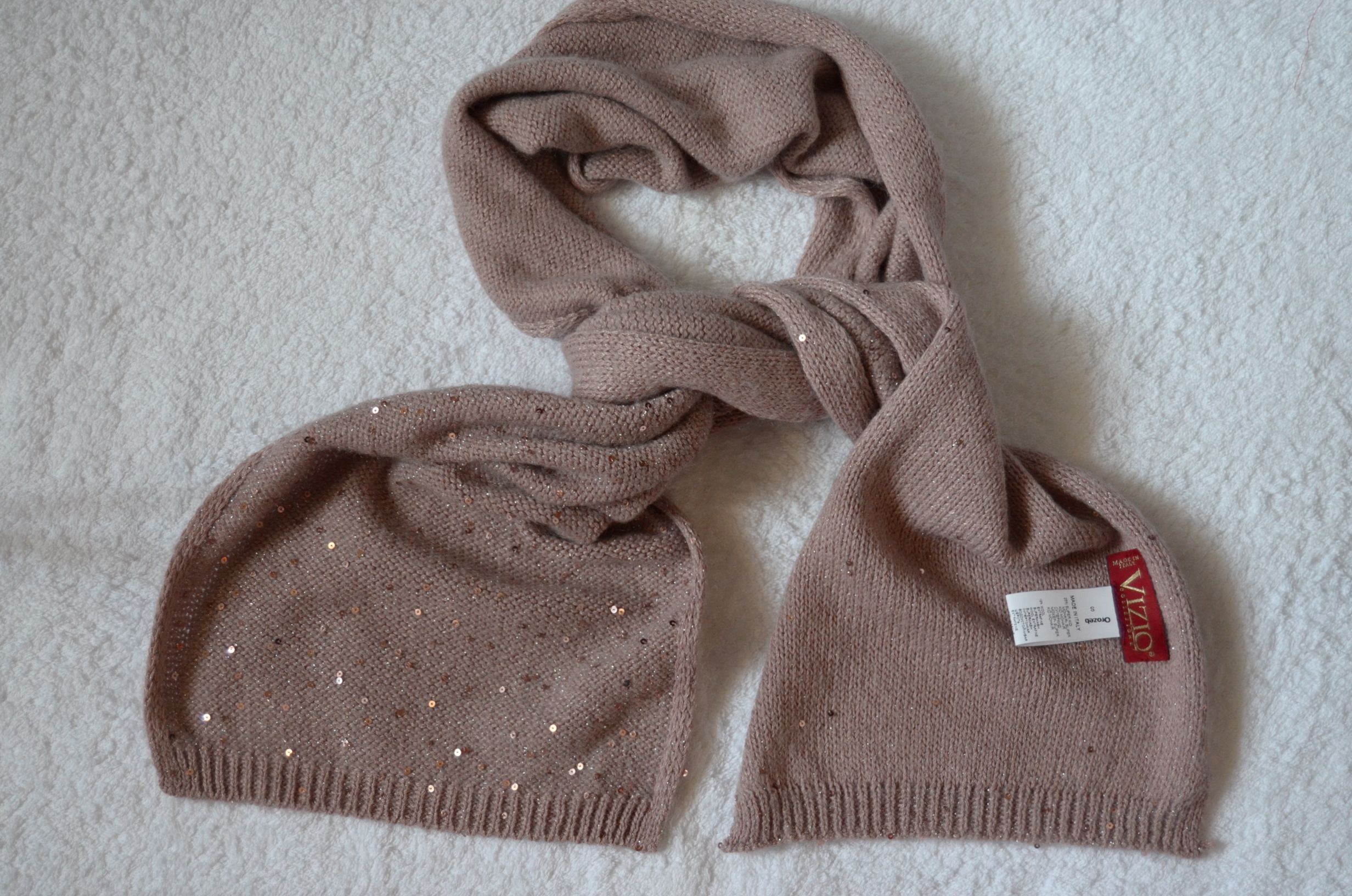Розовый женский вязаный шарф с пайетками Визио Vizio Италия 6157 /5851 / 5893 / 5847 под многие модели шапок и беретов Vzio с пайетками розового цвета .