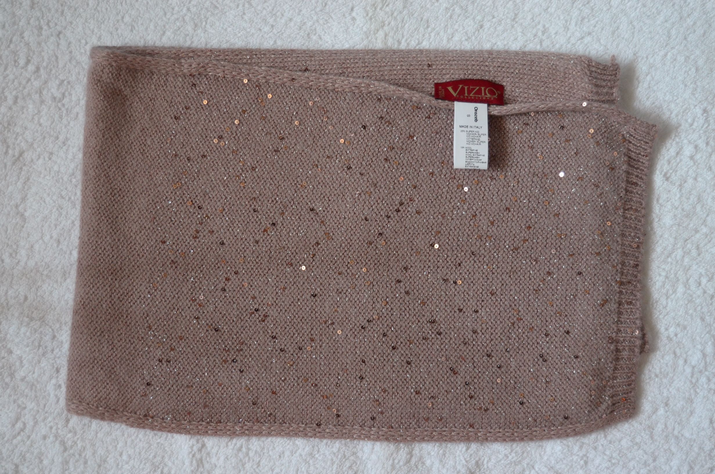Розовый вязаный шарф с пайетками Италия Визио 6160 /6157/5609/5893/5851/5847 под итальянские шапки Vizio с пайетками