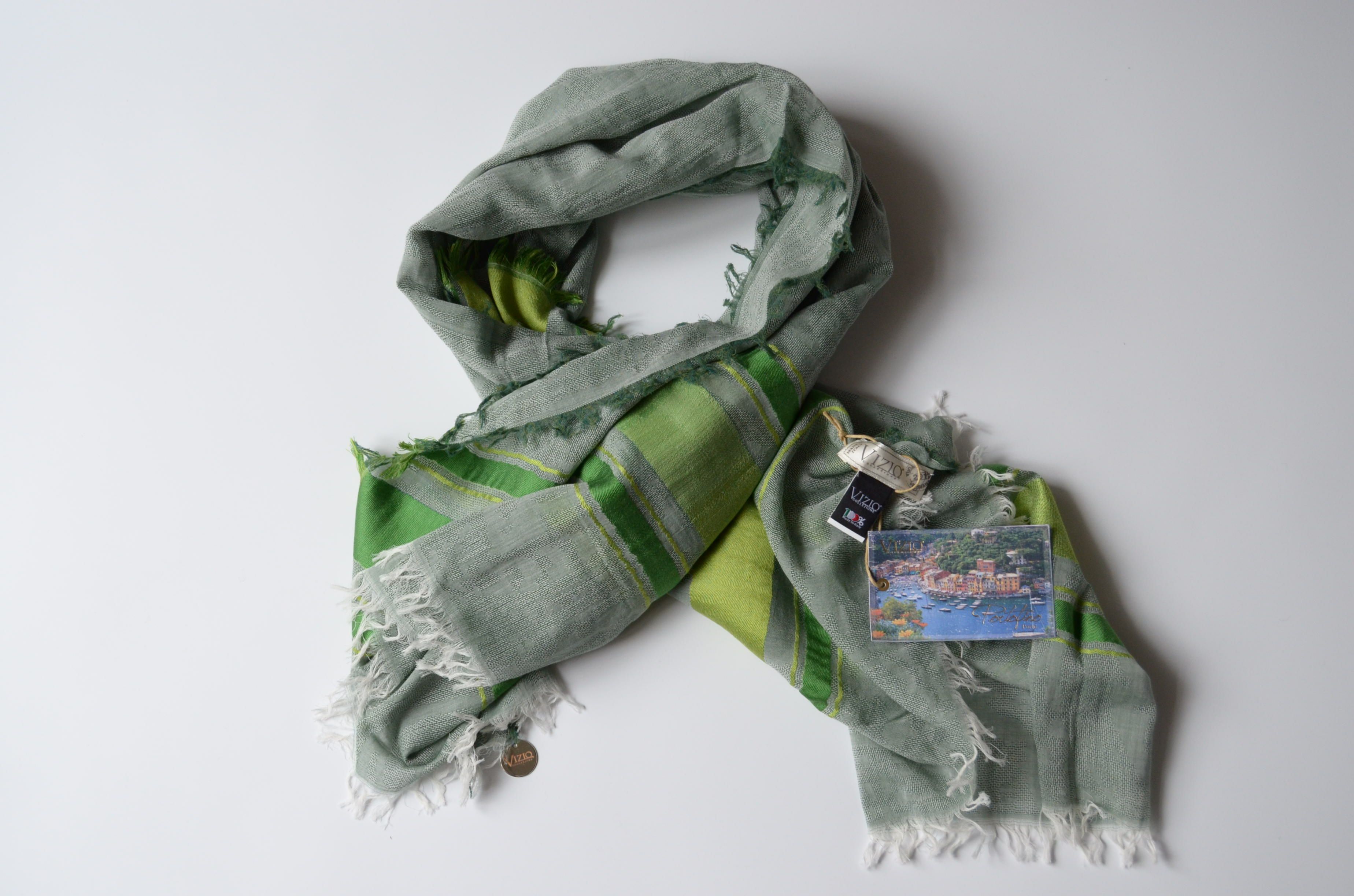 Женский итальянский платок из шелка и хлопка Vizio Италия 6080 салатового цвета коллекция шарфов и платков Италии Визио купить в Москве и России