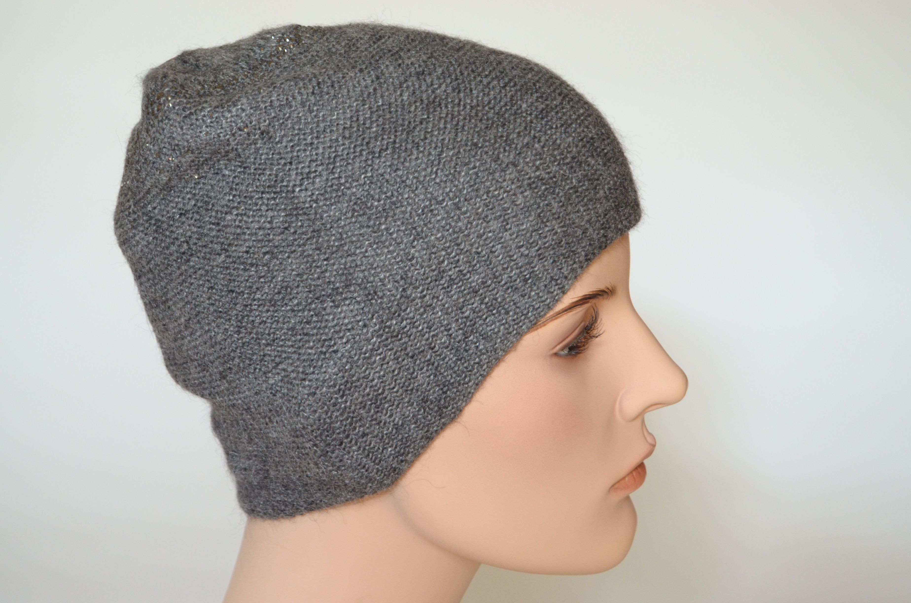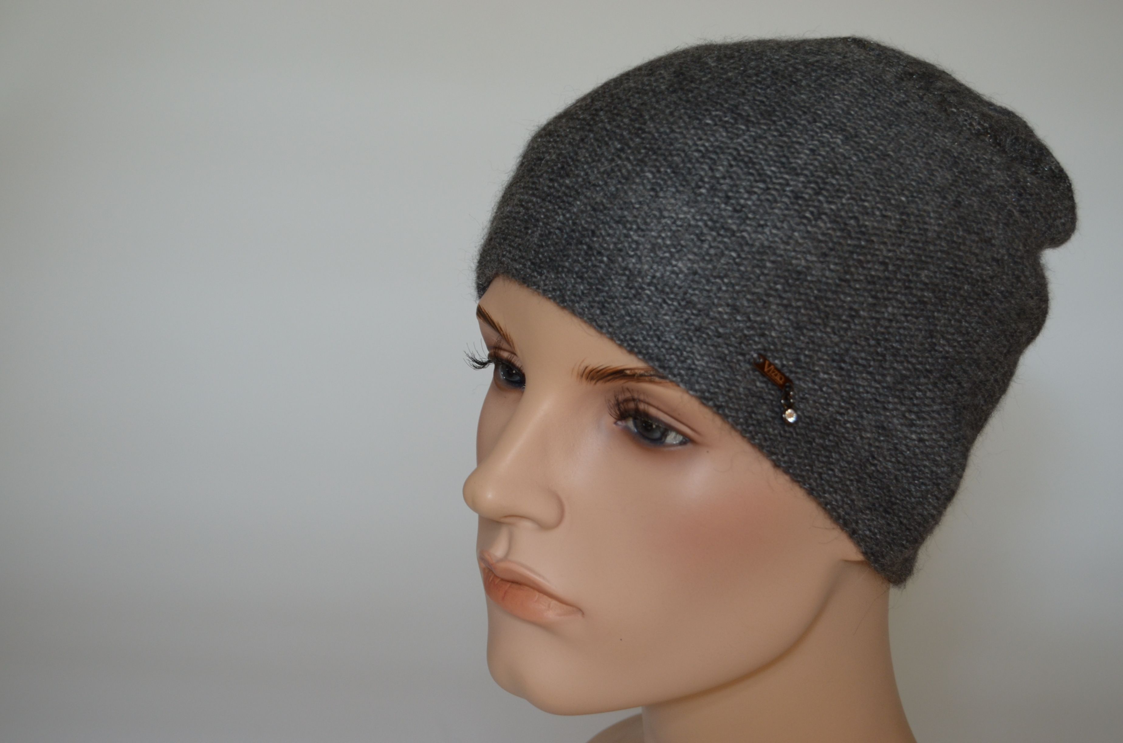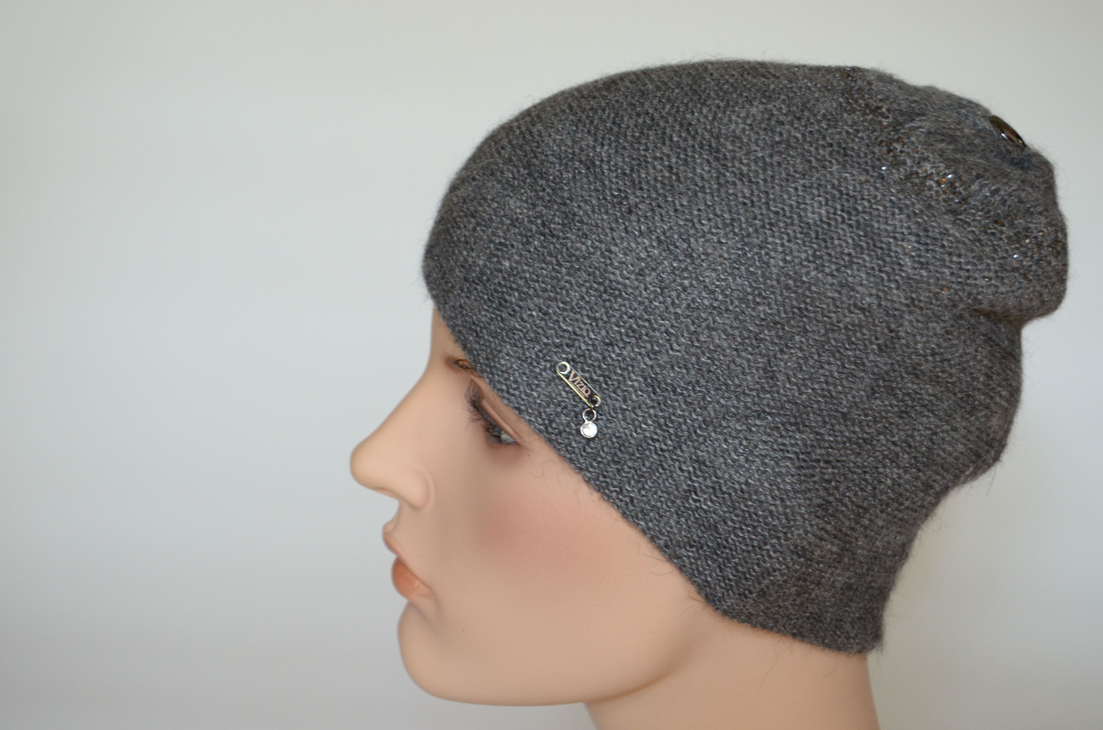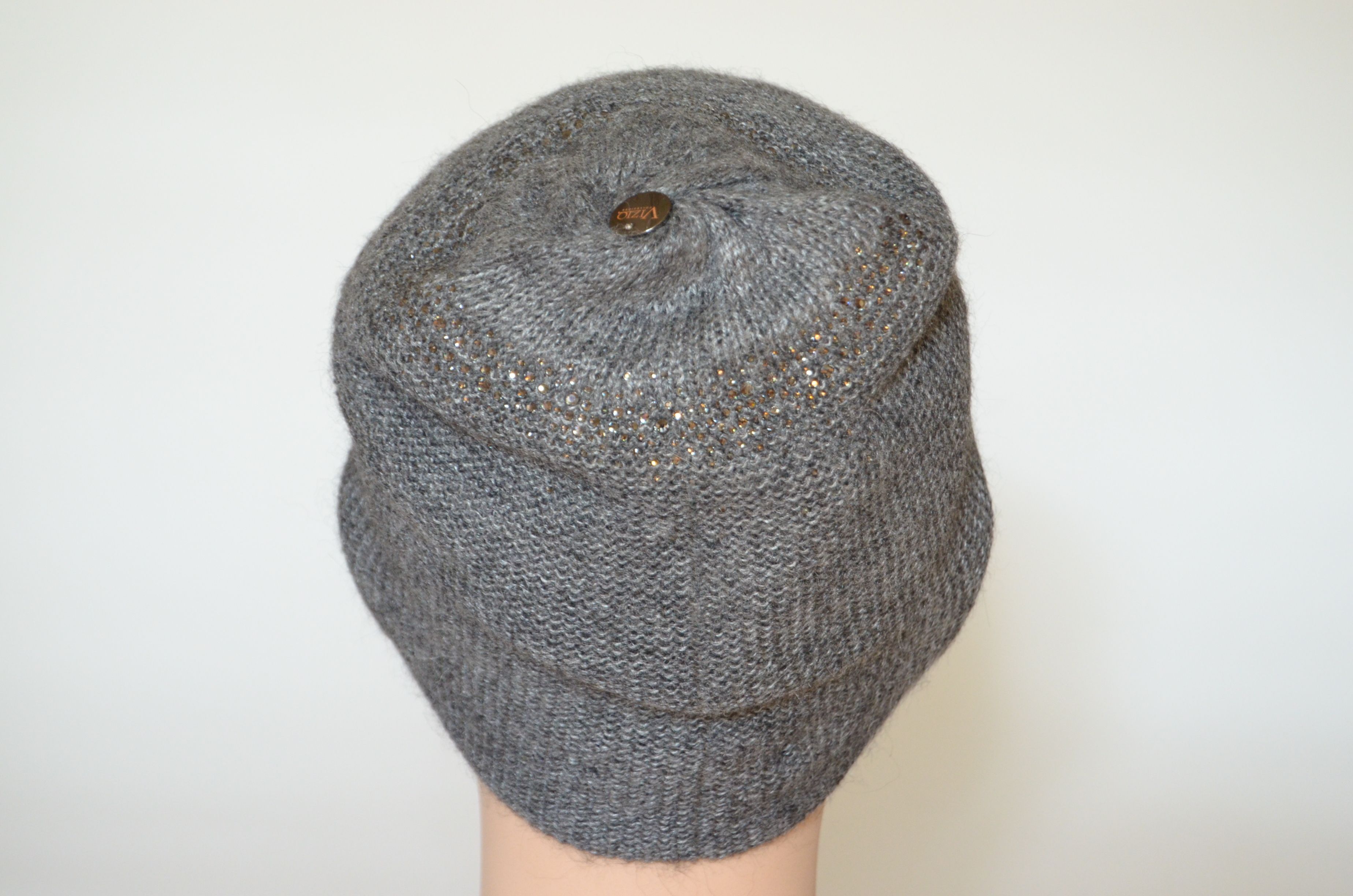 Вязаная серая женская шапка из альпака и шелка Vizio Италия 7000 CY зимняя коллекция итальянских шапок Визио 2021 - 2022 купить в интернет магазине вязаных шапок Италии для женщин Vizio Collezione