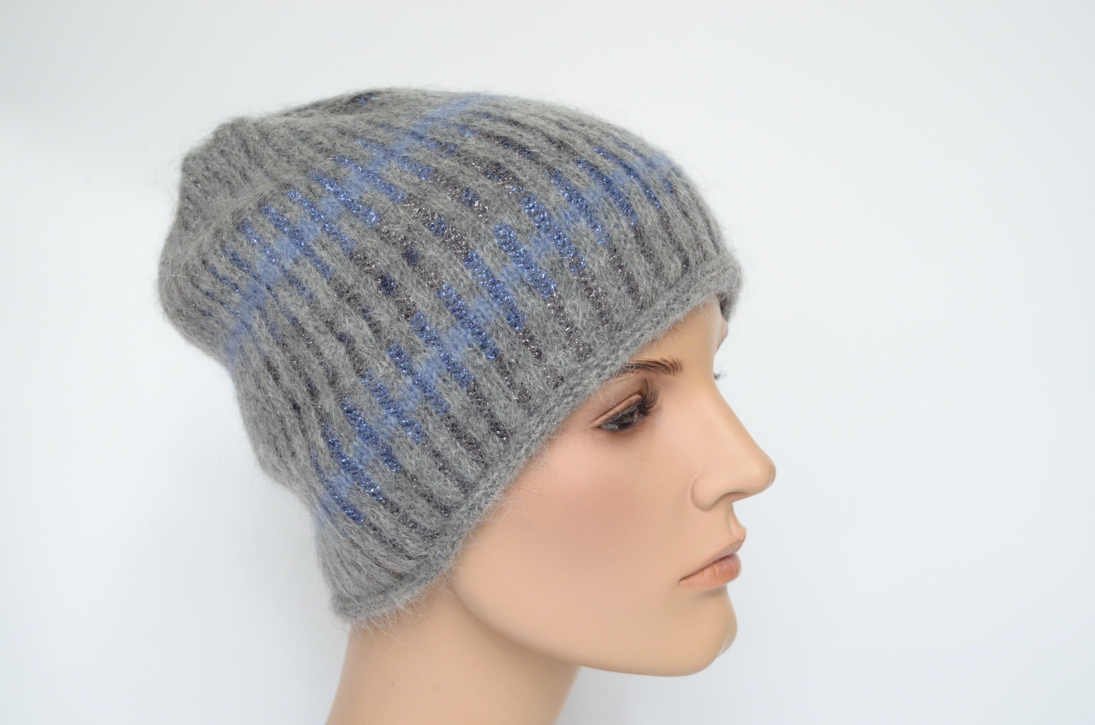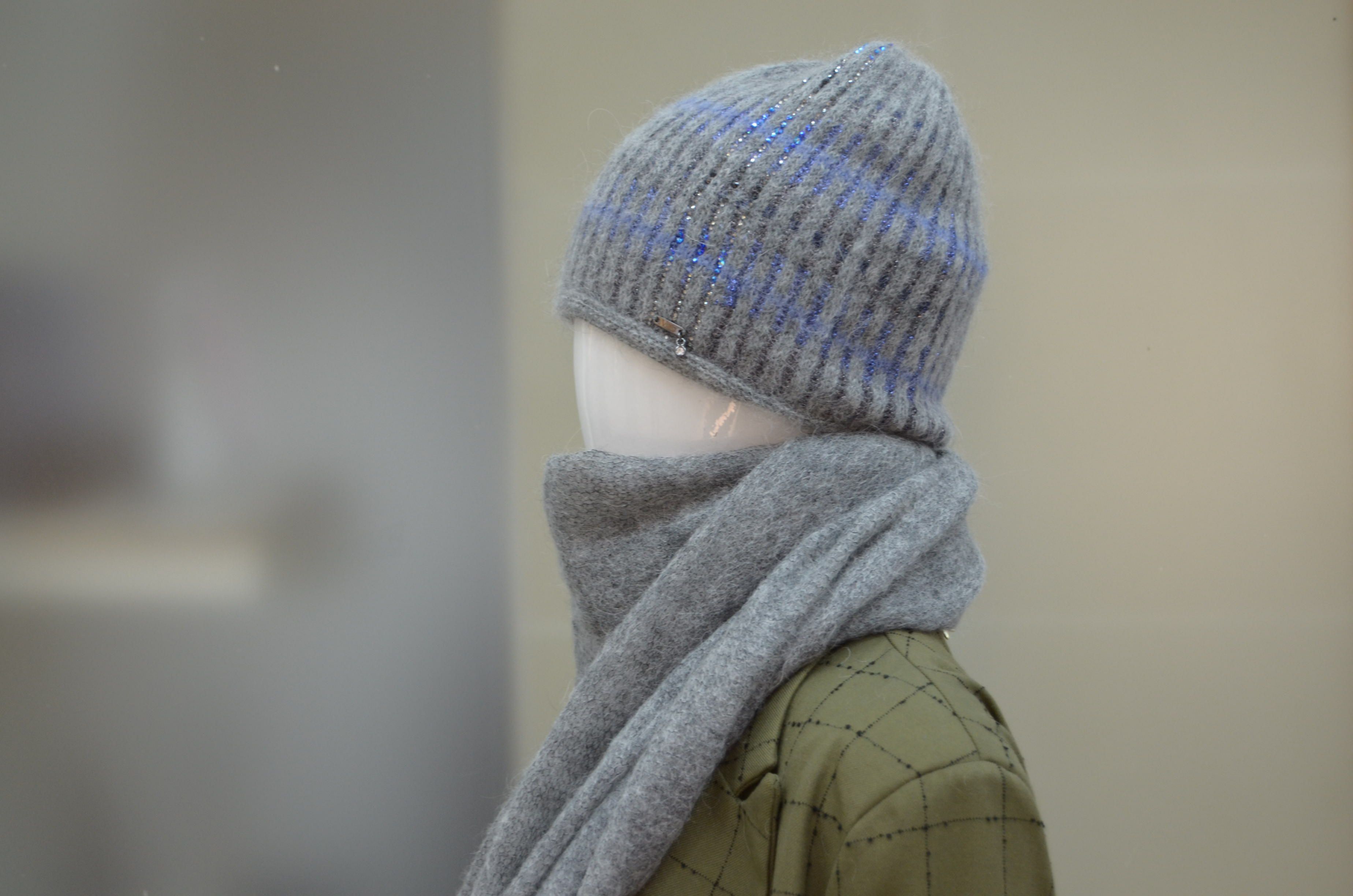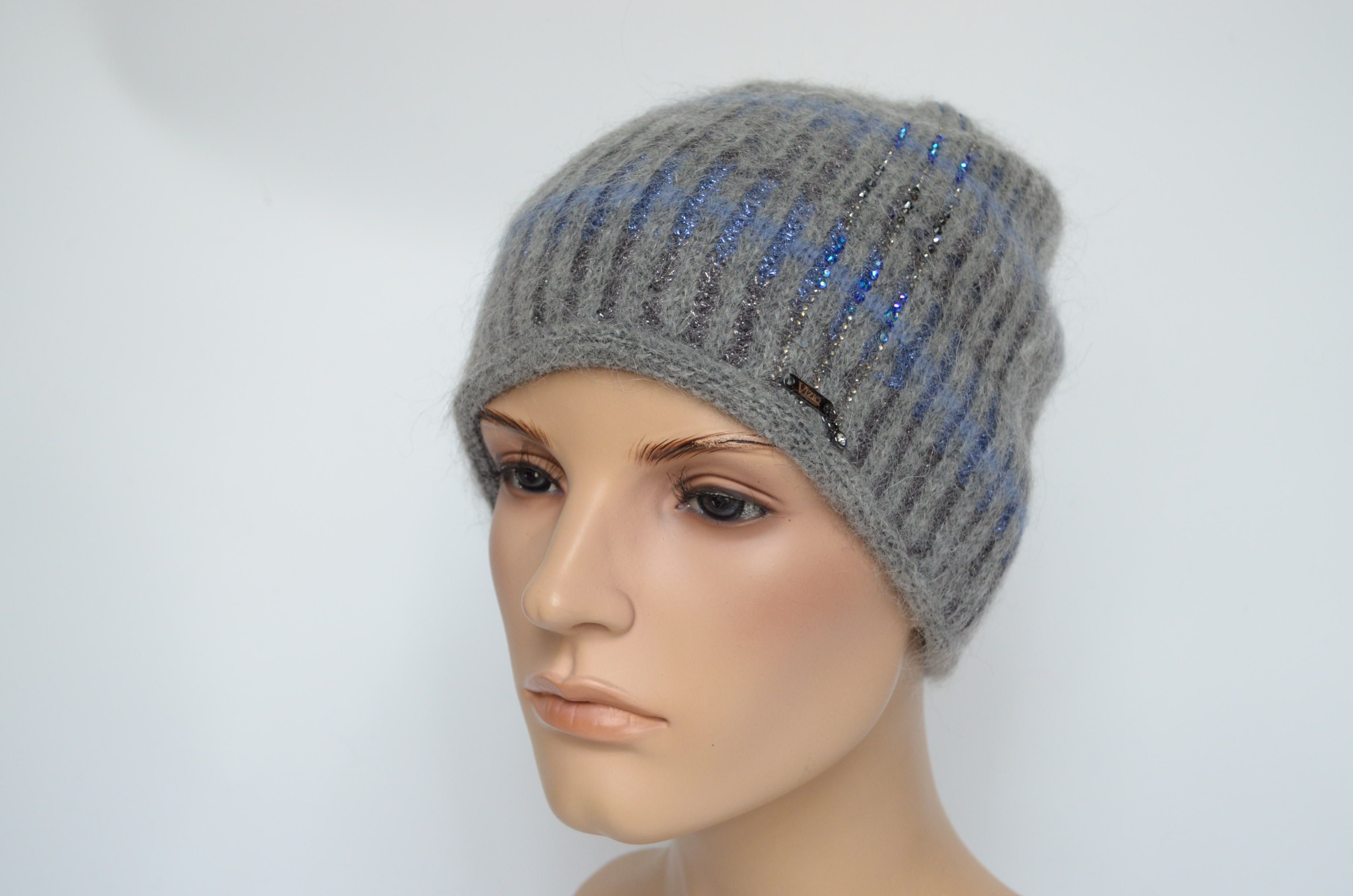 Итальянская серая вязаная шапка со стразами Vizio Италия 8007 CY зима 2022 - 2023 купить в Москве и России интернет магазин головных уборов Италии Визио