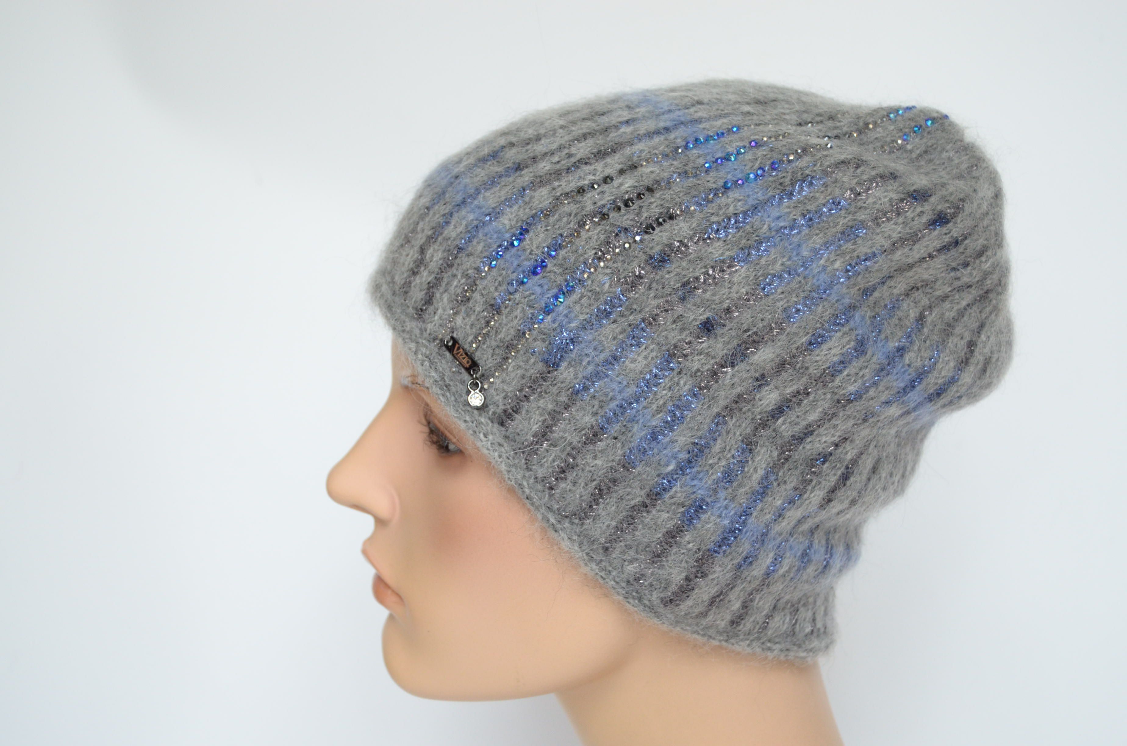 Приобрести женскую серую шапку со стразами Визио Италия зима 2023 вы можете в интернет магазине итальянских головных уборов для женщин в Москве и доставкой по России