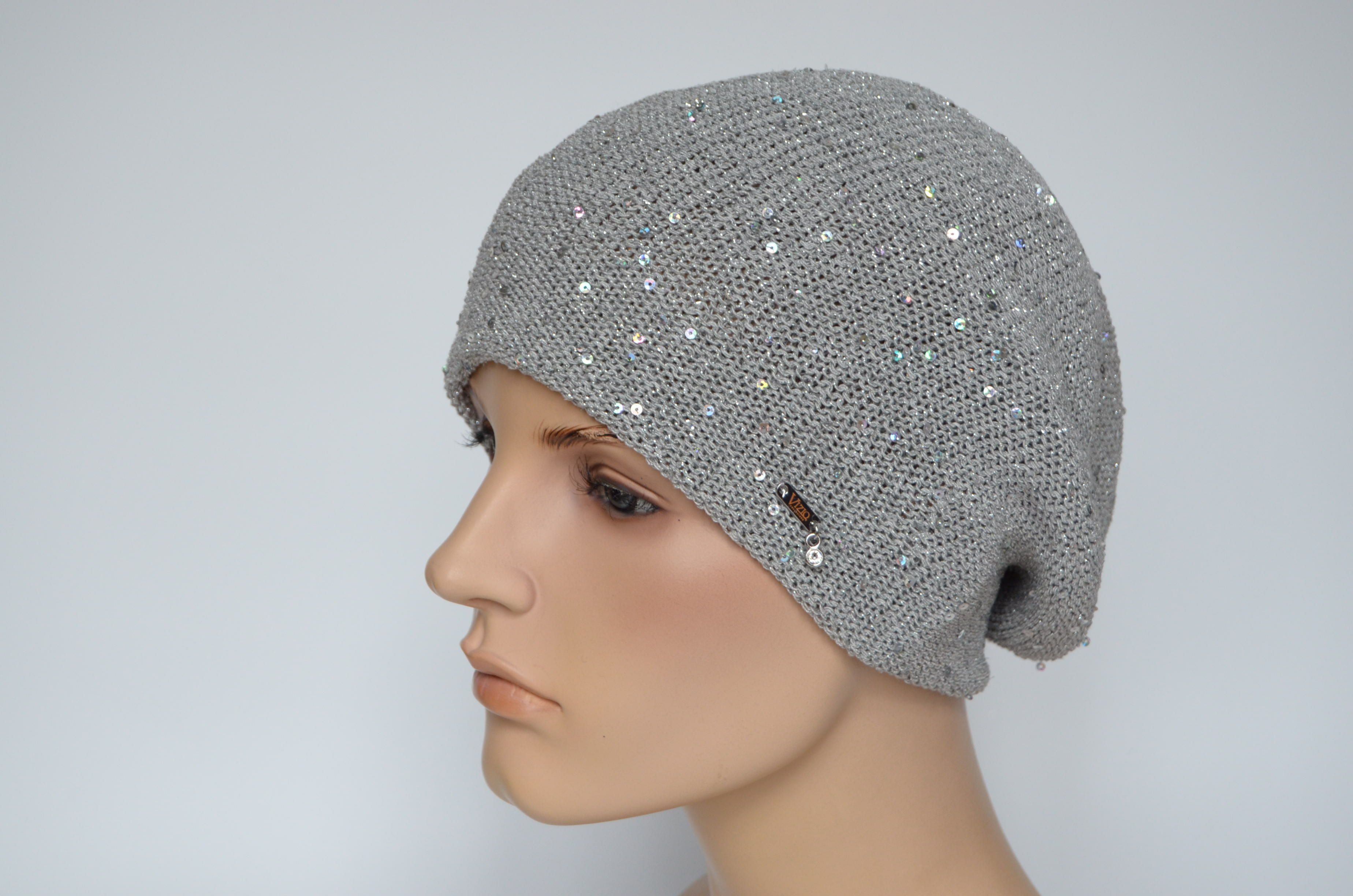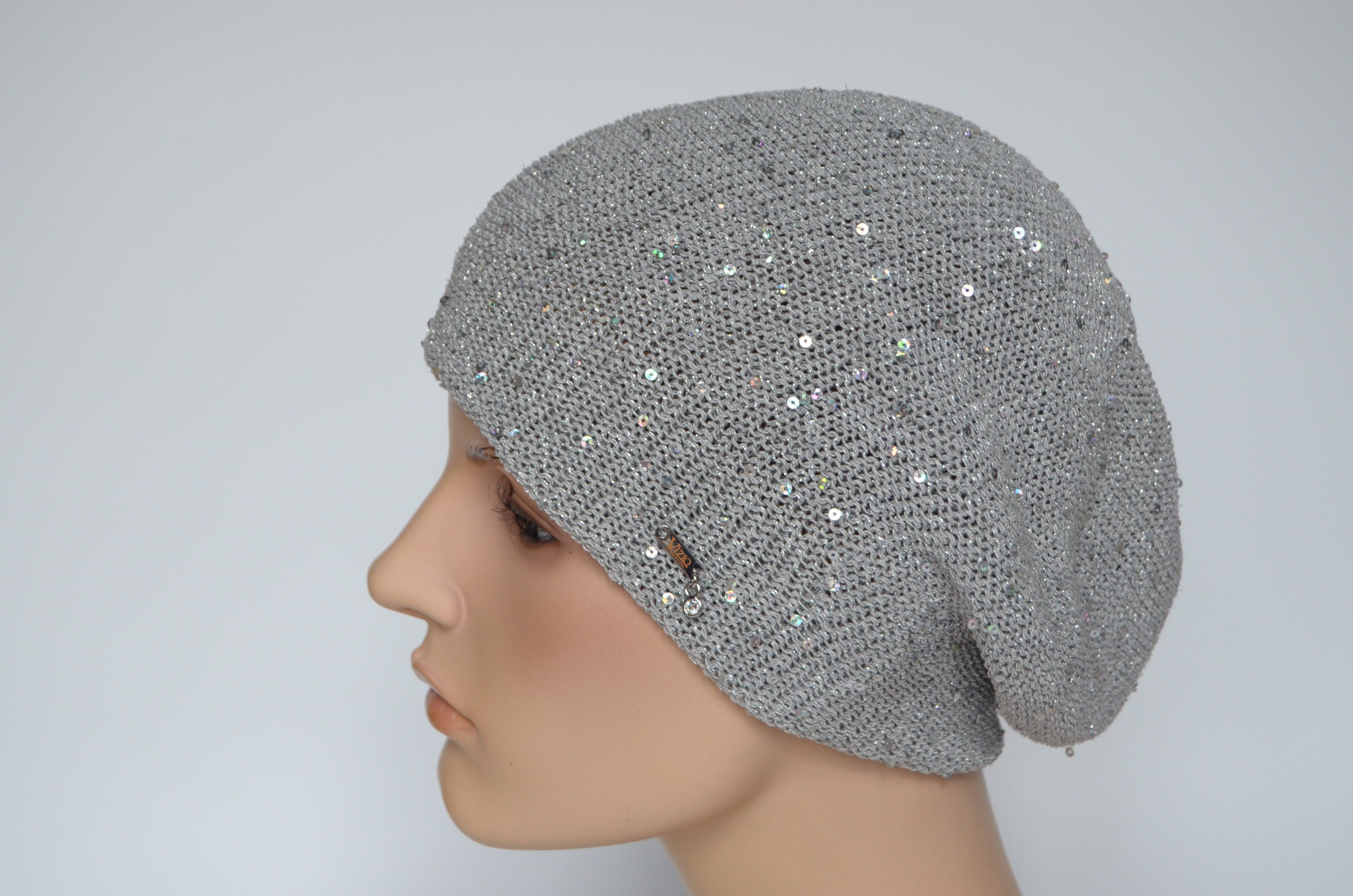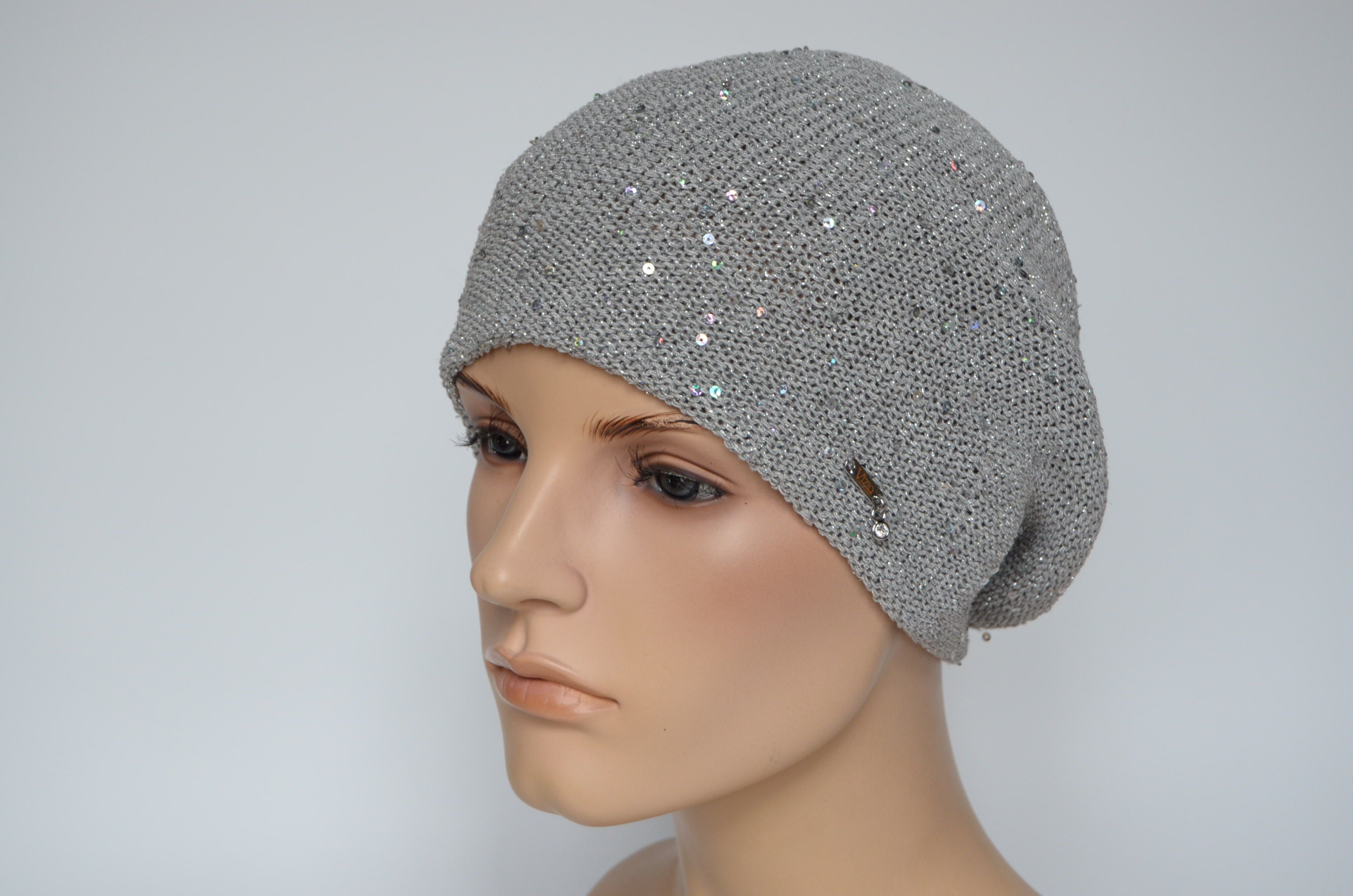 Купить берет весна - осень серого цвета с пайетками Визио Италия вы можете в магазине вязаных итальянских беретов и шапок Vizio Collezione в Москве или с бесплатной доставкой в интернет магазине женских головных уборов Италии