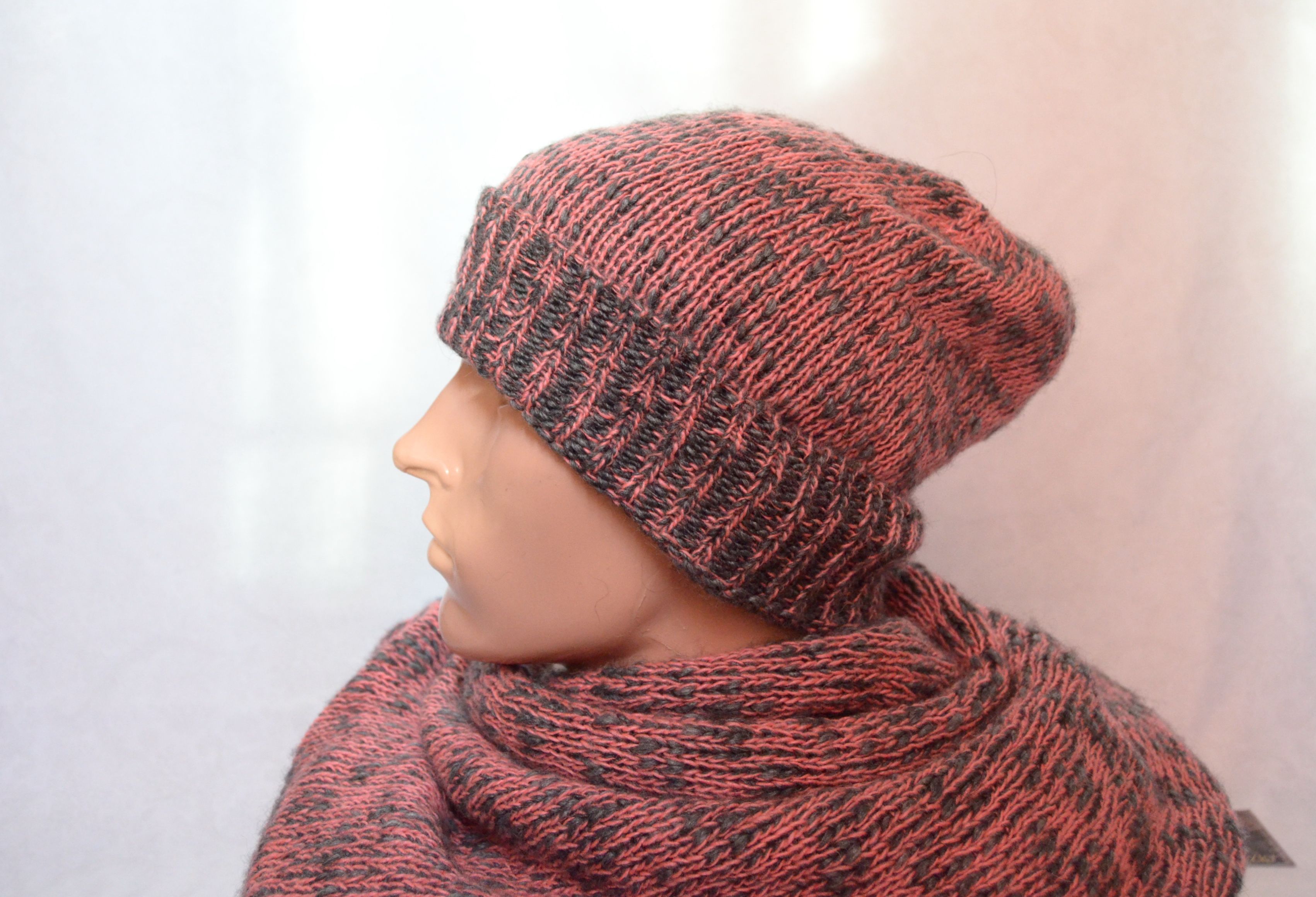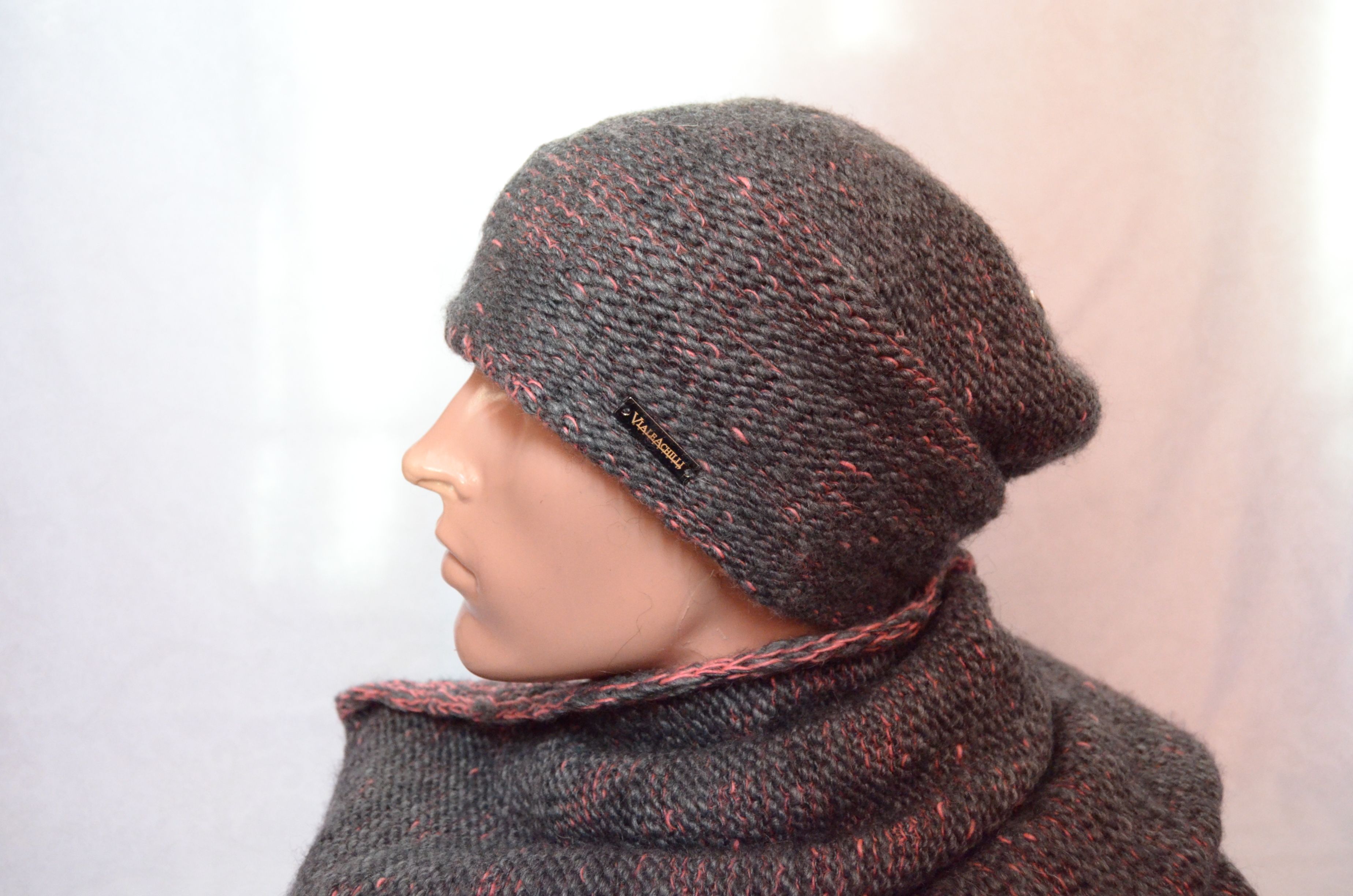 Мужская вязаная итальянская шапка серо - бордовая цвета и снуд Vizio Италия 141 ( Viale Achilli ) вязаный двухсторонний комплект для мужчин в магазине итальянских вязаных головных уборов для мужчин и женщин Vizio Collezione