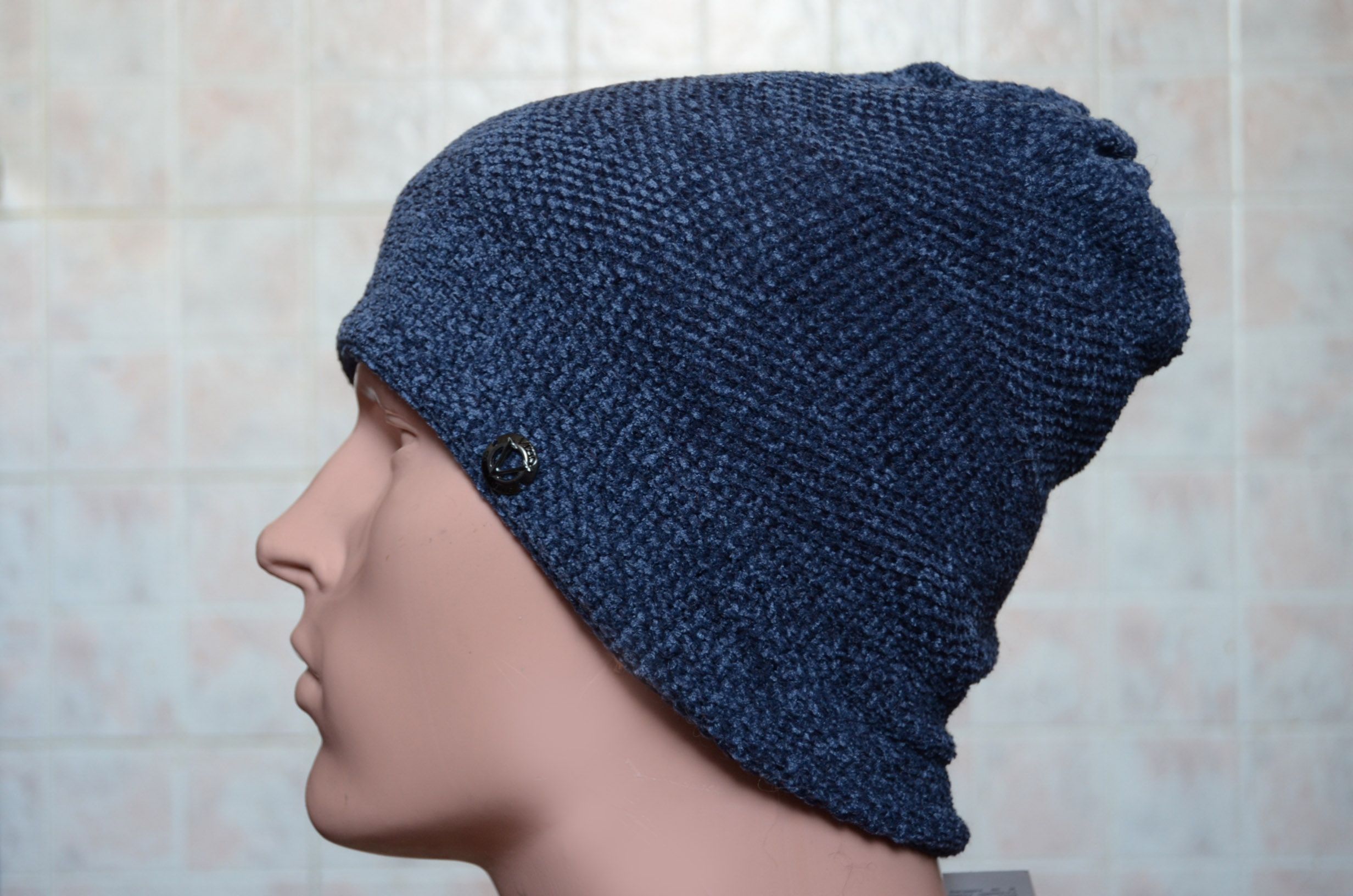 Шапка мужская из Италии вязаная Vizio 6204 CL синяя