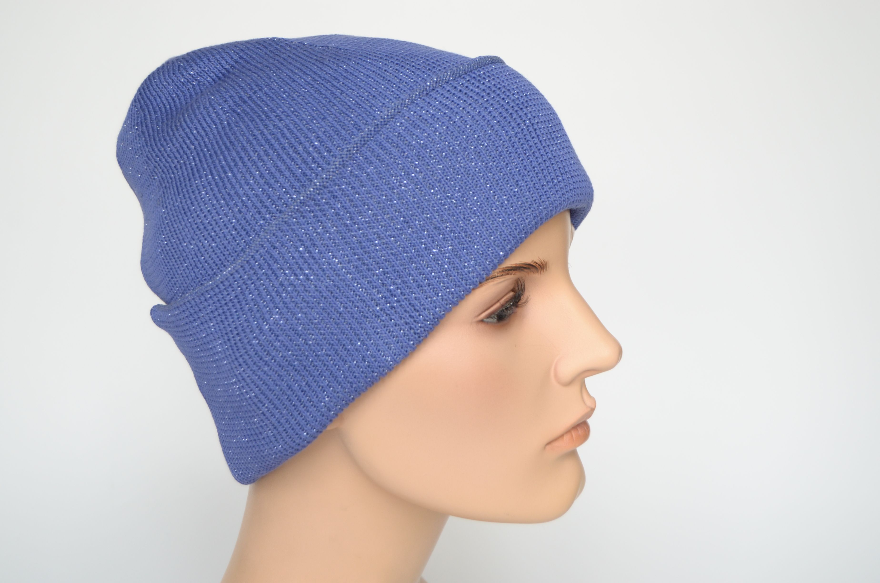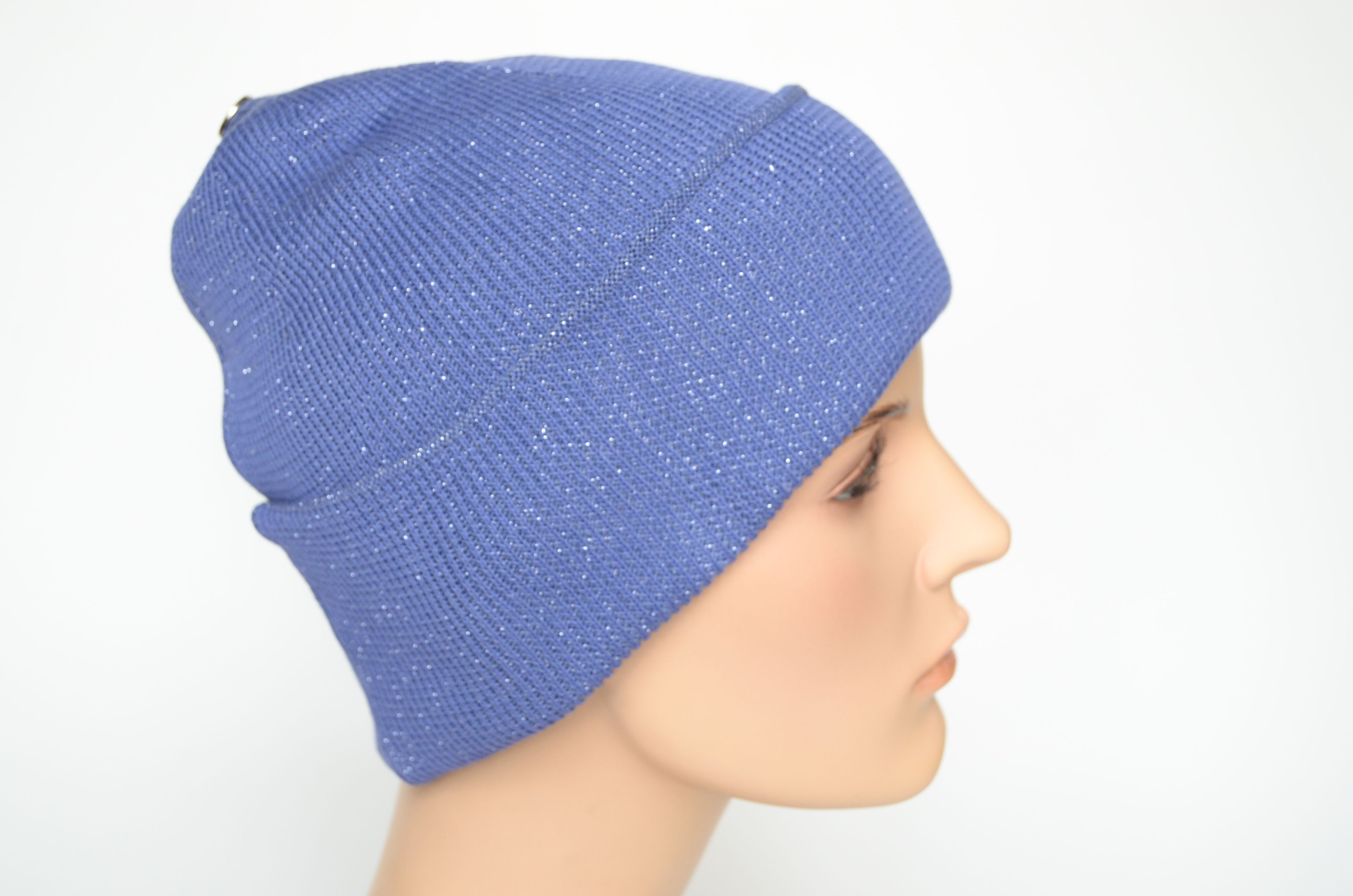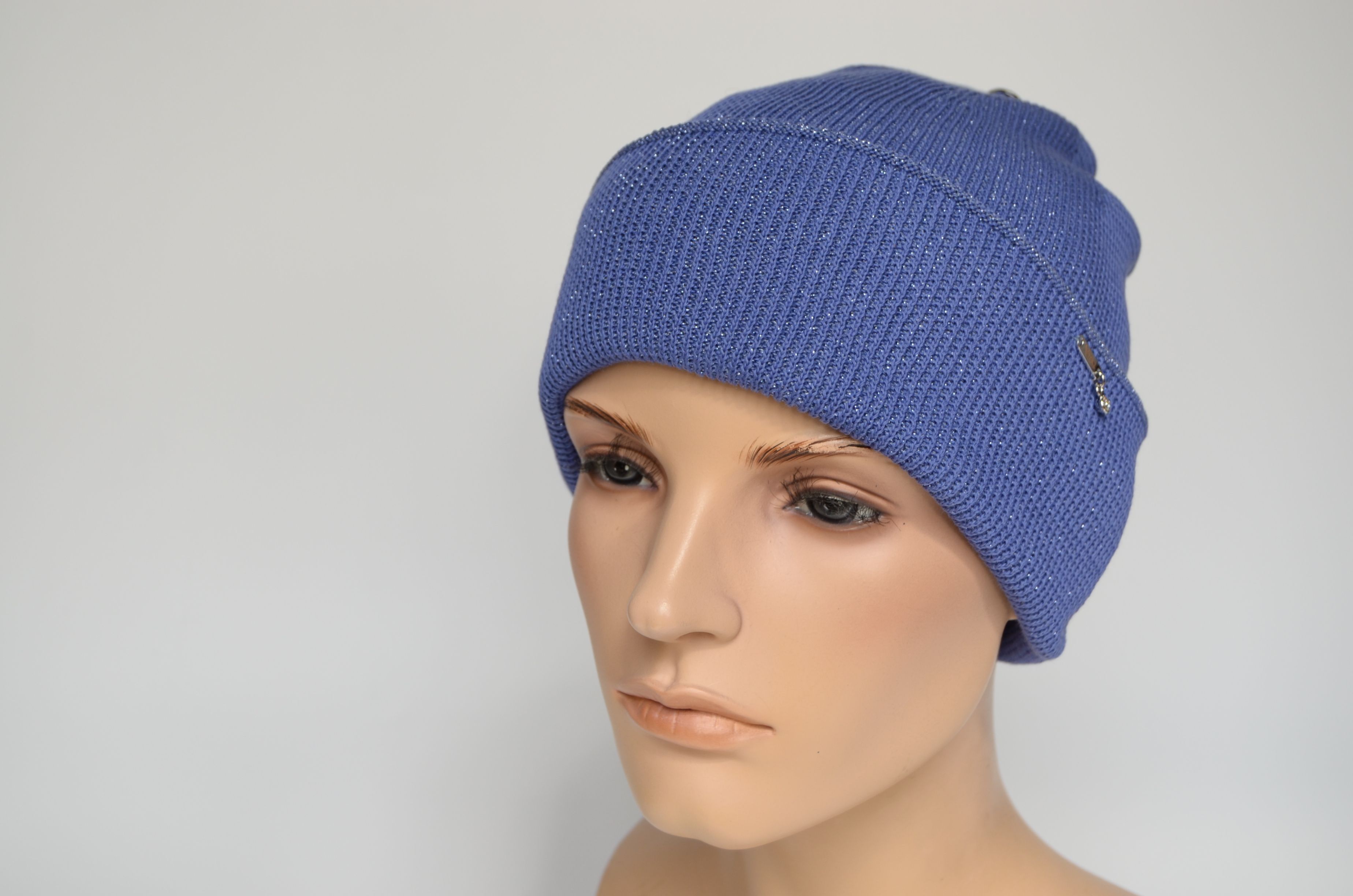 Вязаная женская шапка весна осень лазурного цвета из хлопка и вискозы