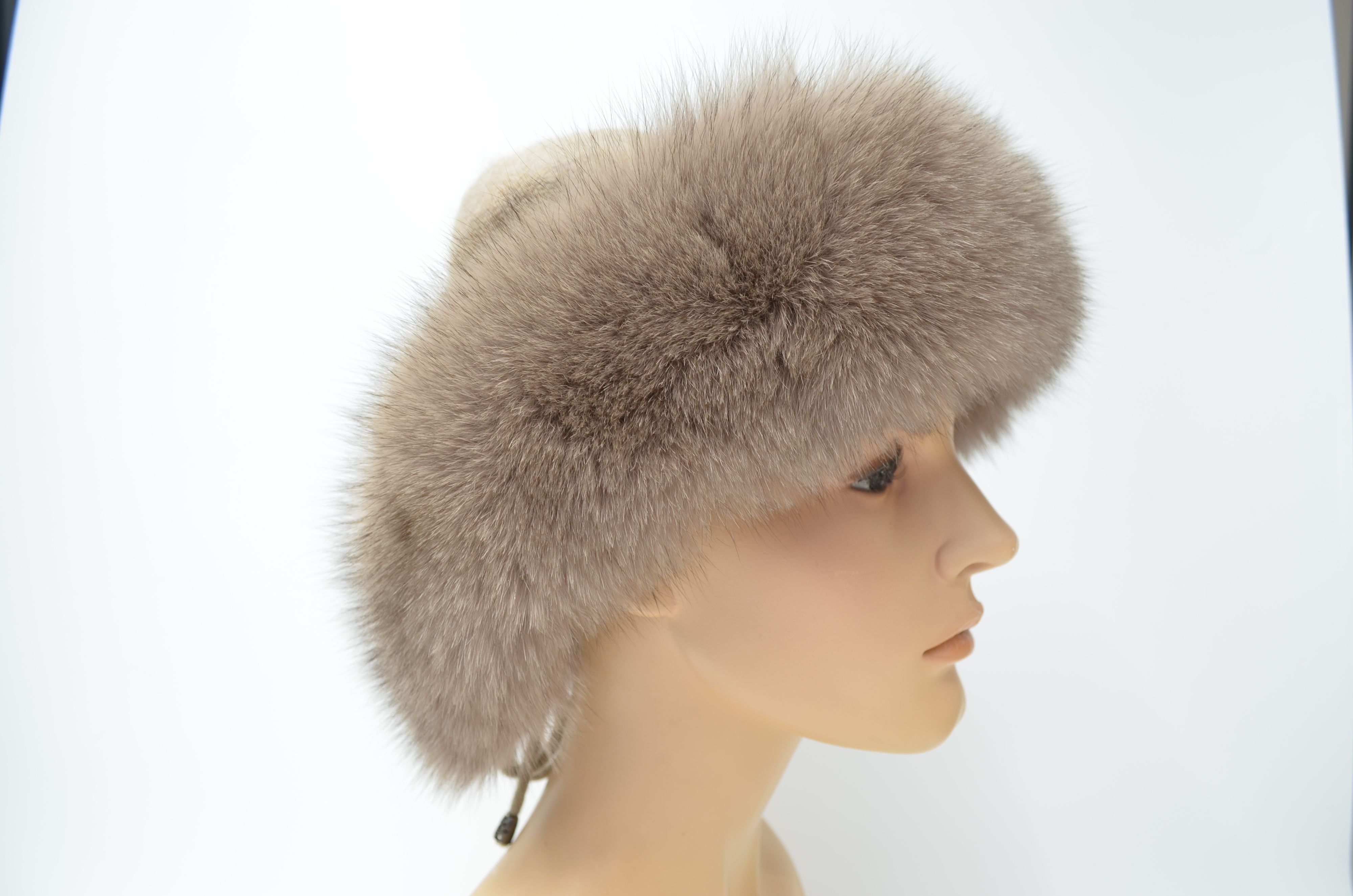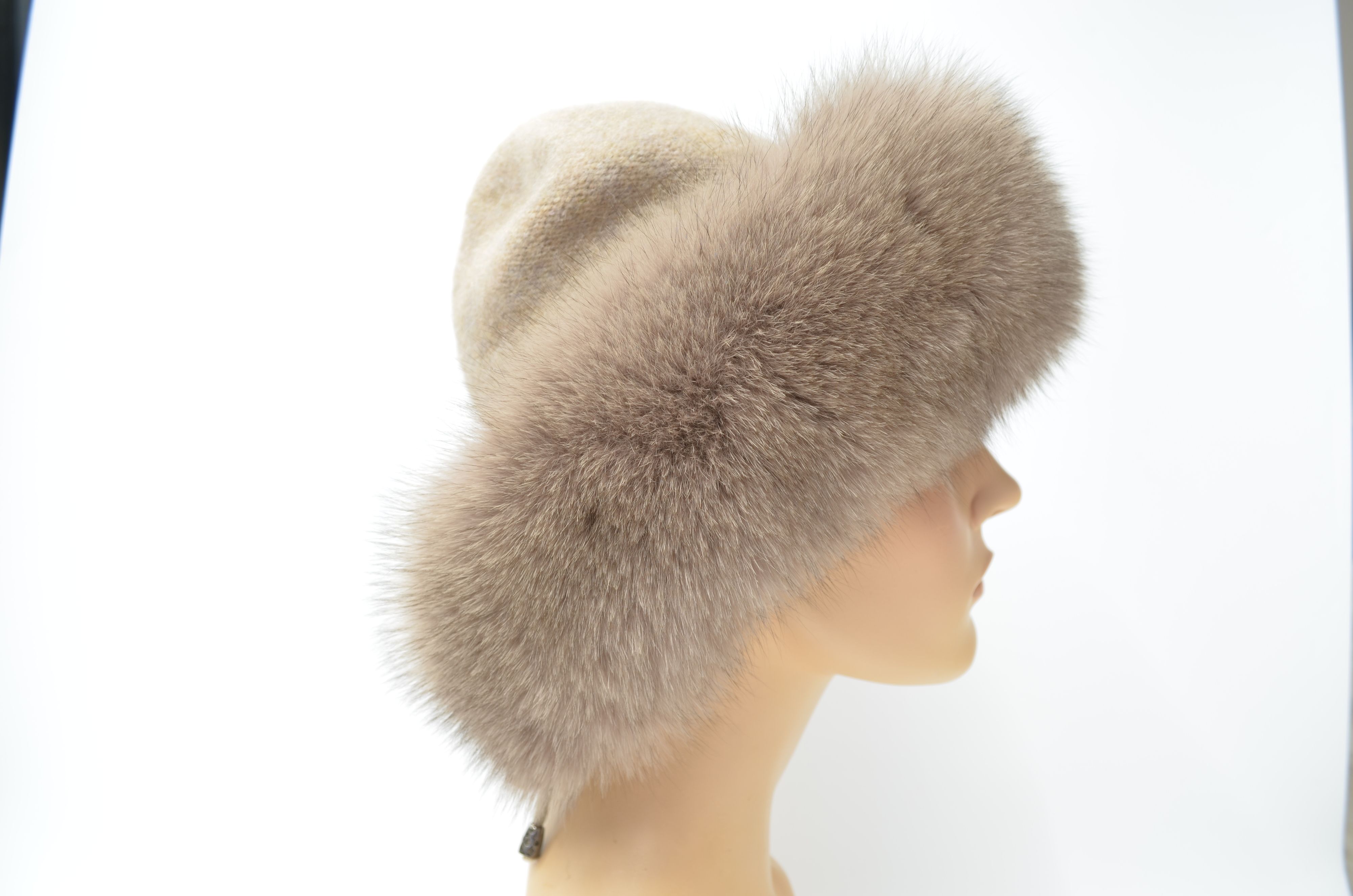 Меховая отделка вязаной шапки - мех песца