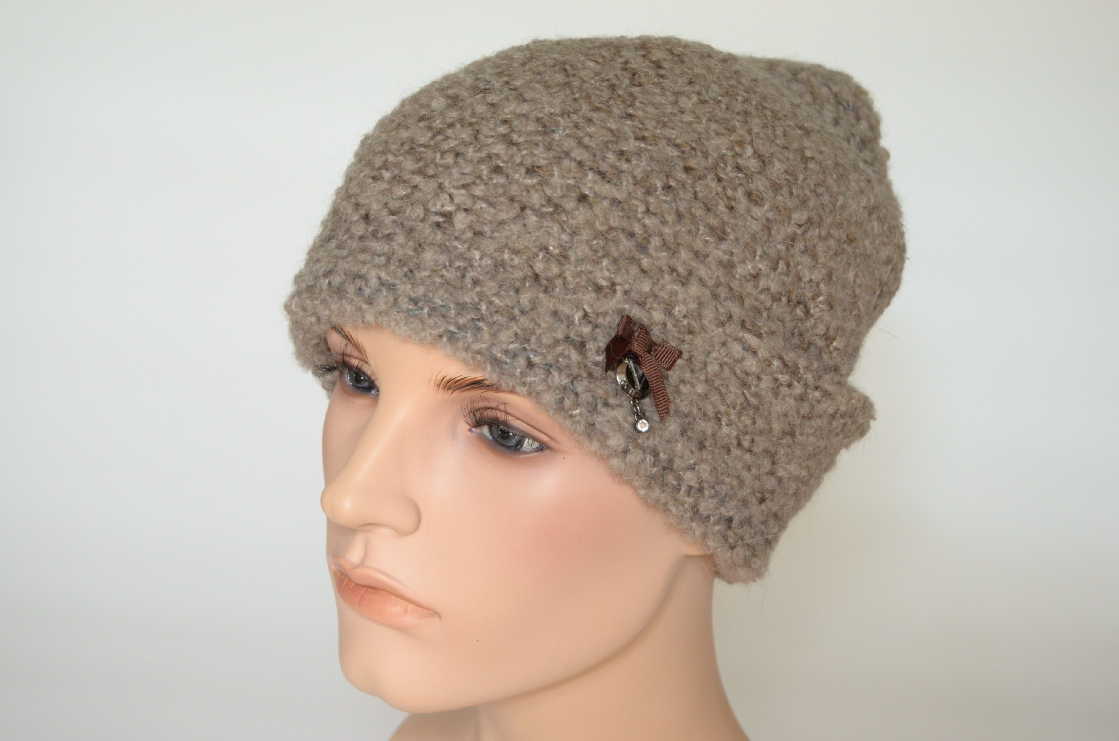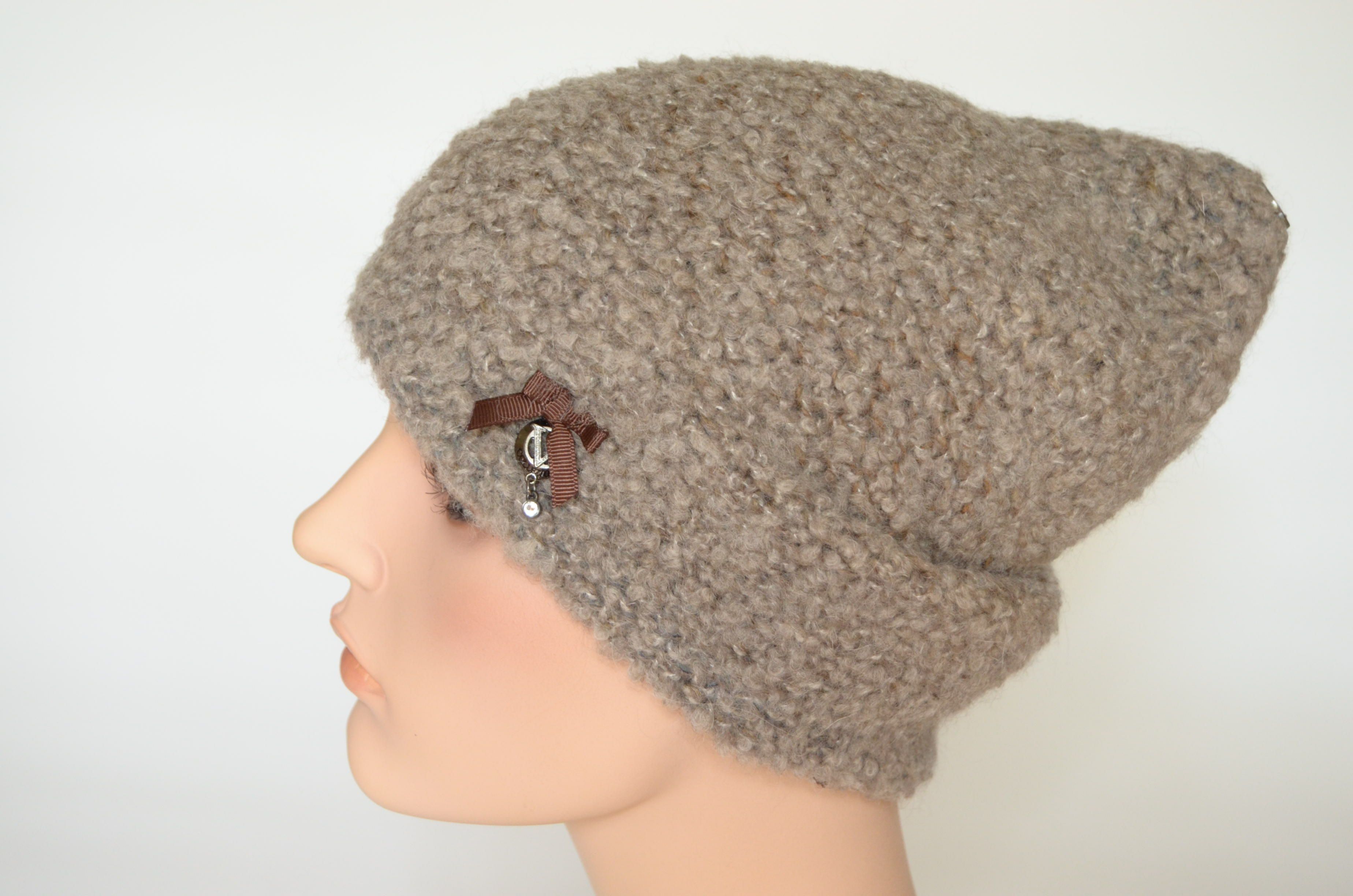 Вязаная шапка из шерсти альпака удлиненная женская Италия Vizio 7007 CL ореховая купить в интернет магазине итальянских шапок