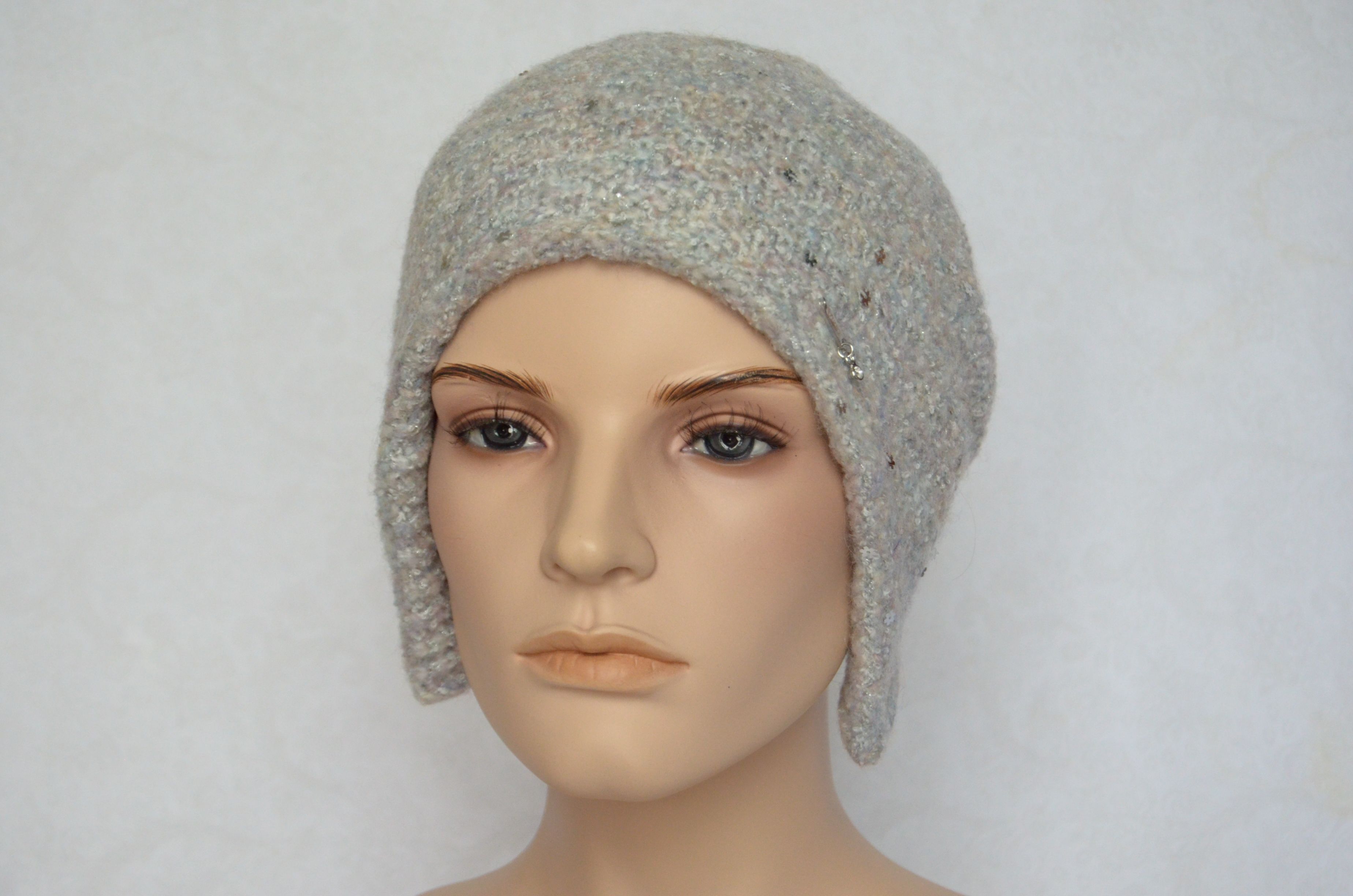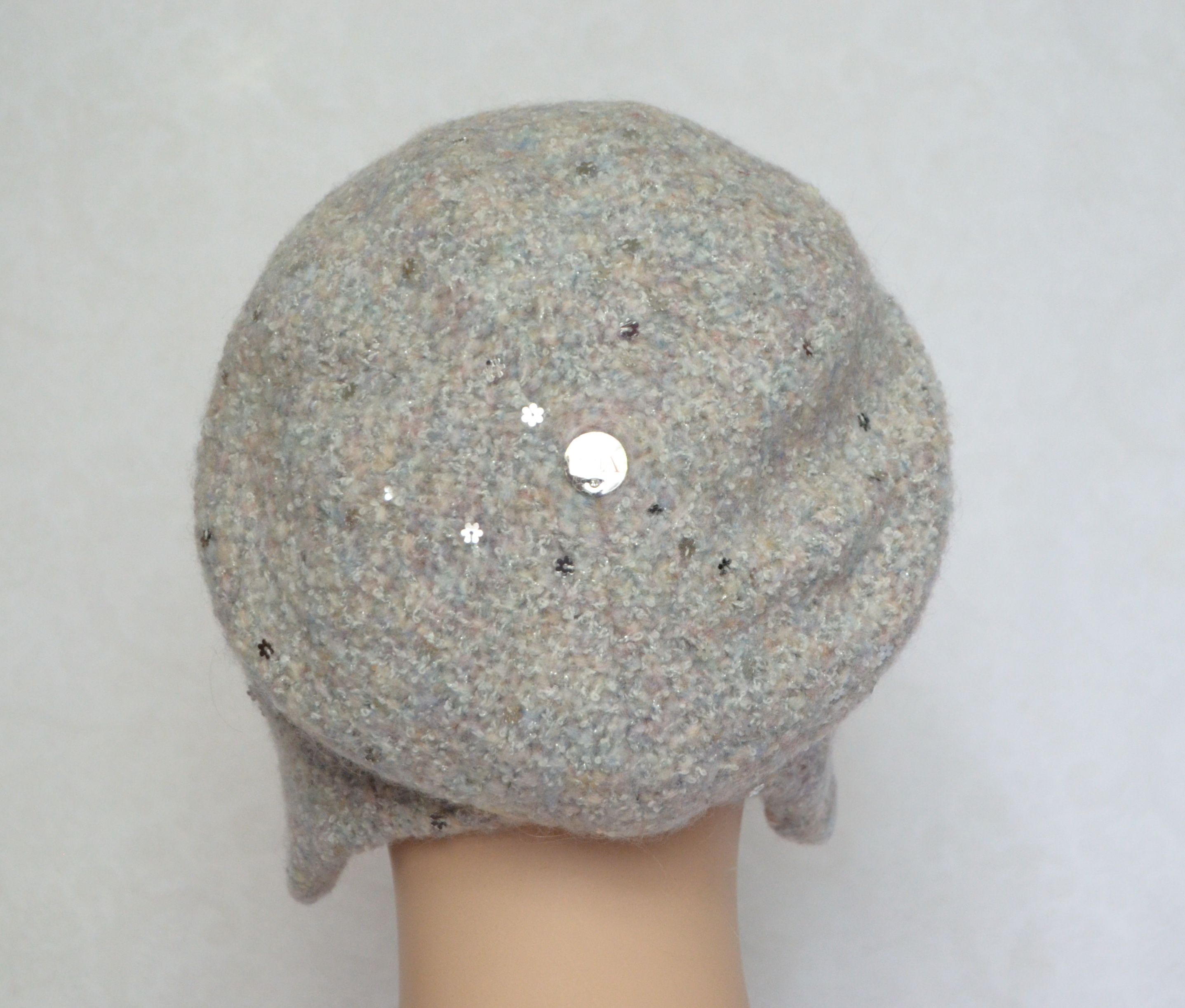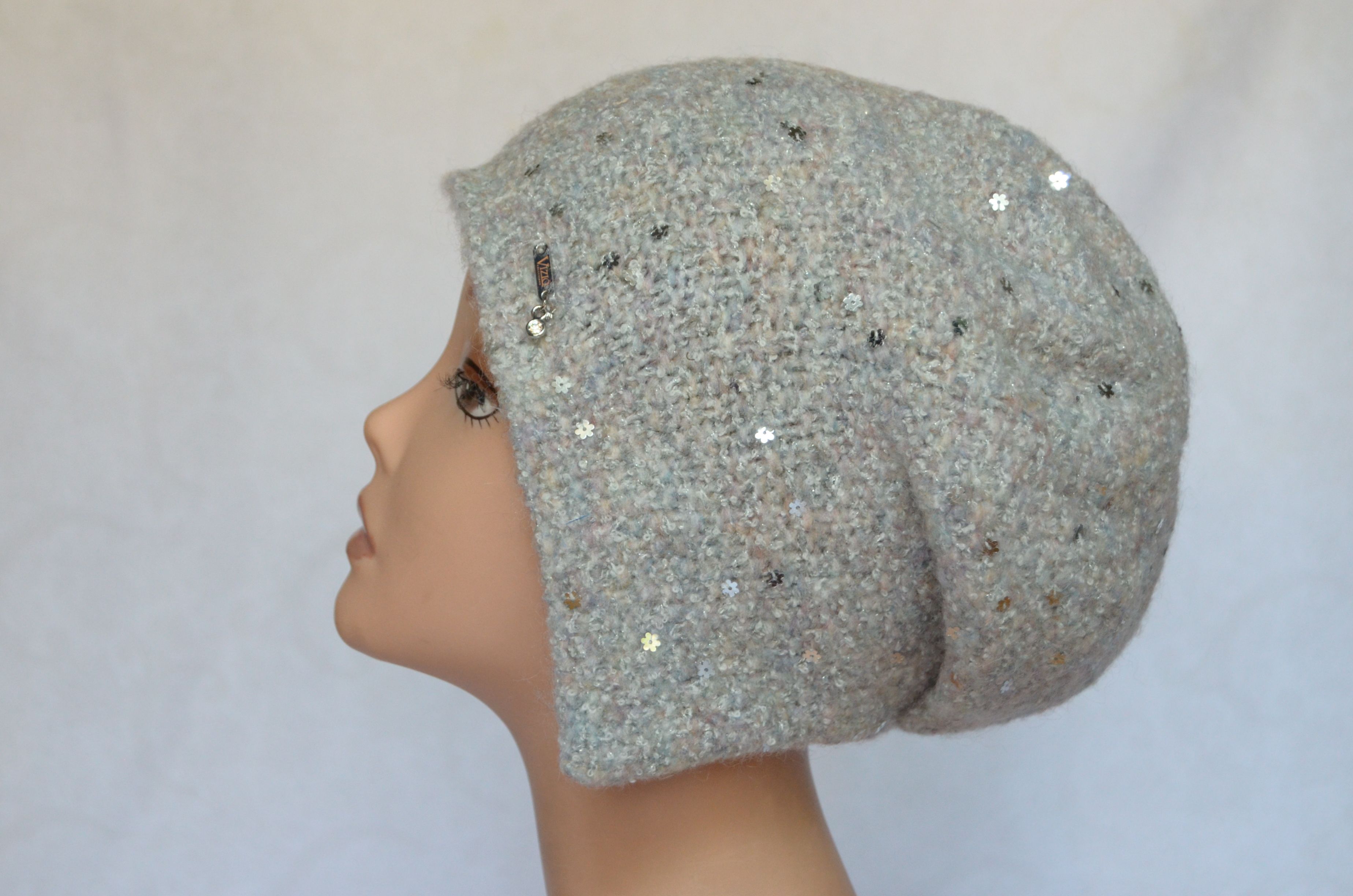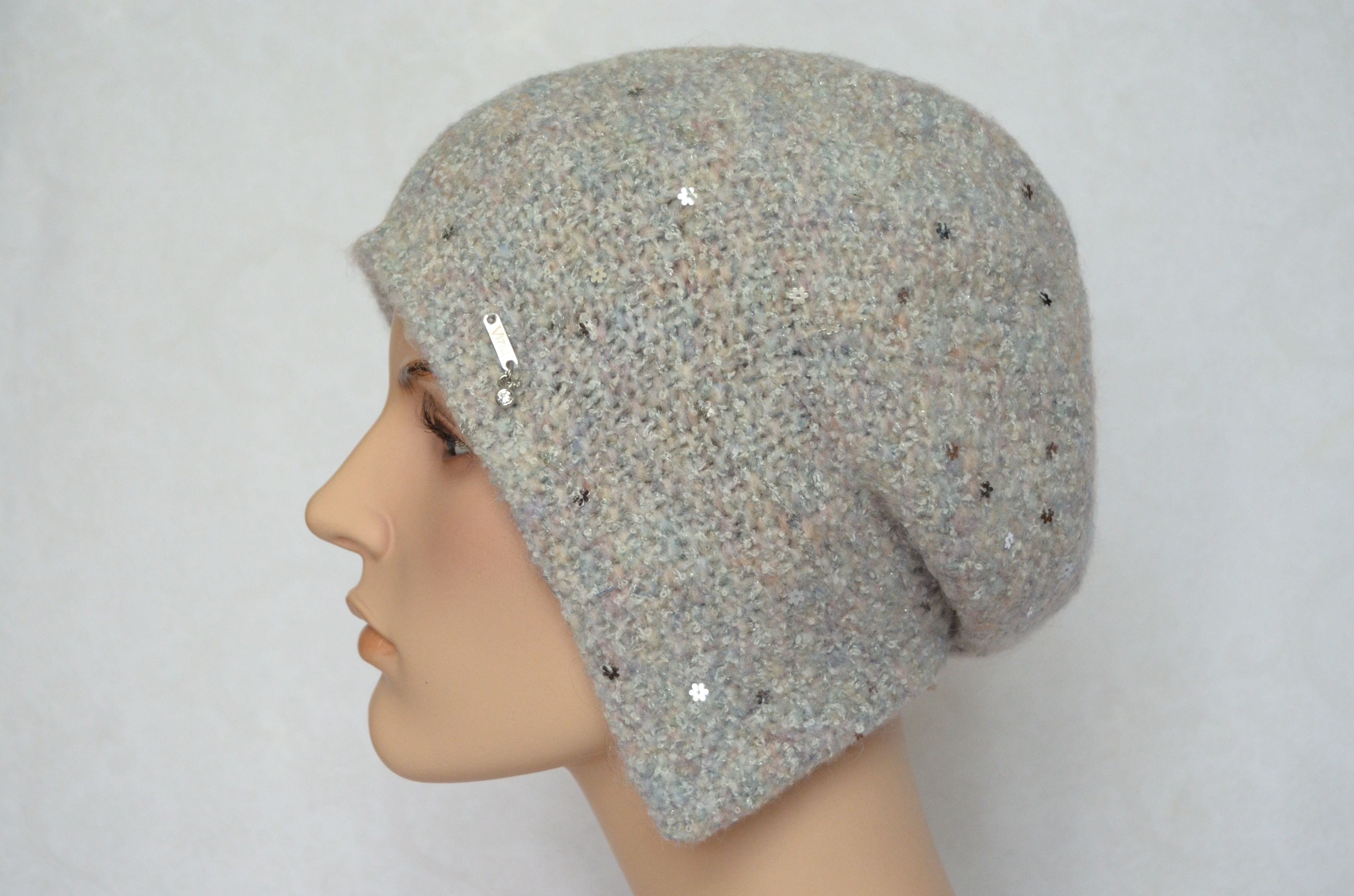 Шапка капор женская вязаная Vizio италия 6444 белая с пайетками коллекция итальянских вязаных шапок ушанок Визио купить в интернет магазине женских головных уборов в Москве и России