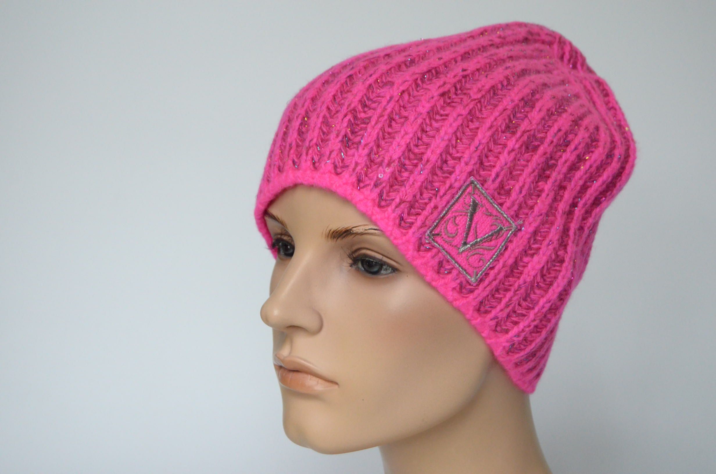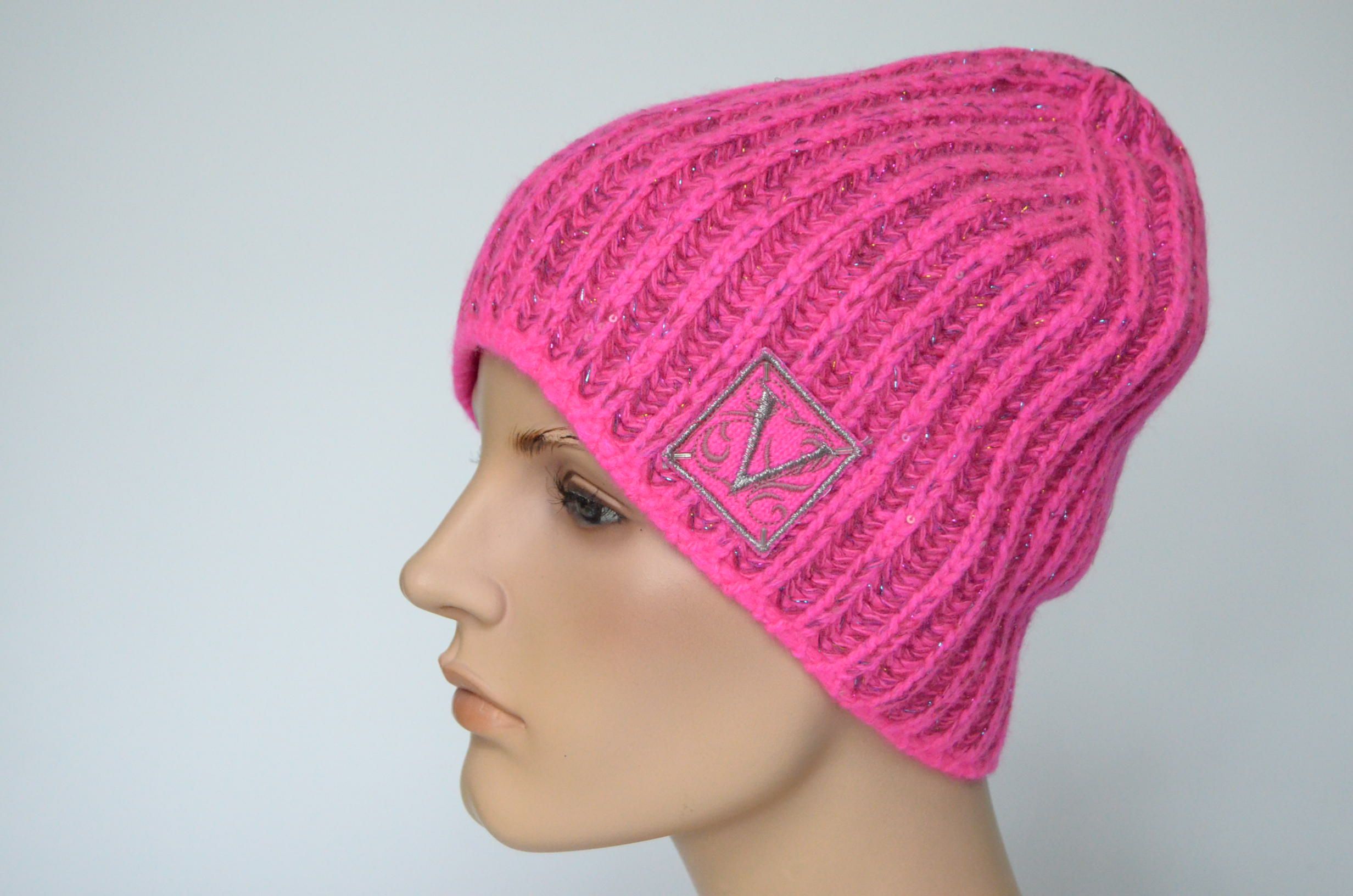 Вязаная кашемировая шапка ярко - розовая Италия Визио 1106 CУO однослойная зимняя шапка из коллекции шапок и беретов Vizio зима 2023 - 2024 из кашемира