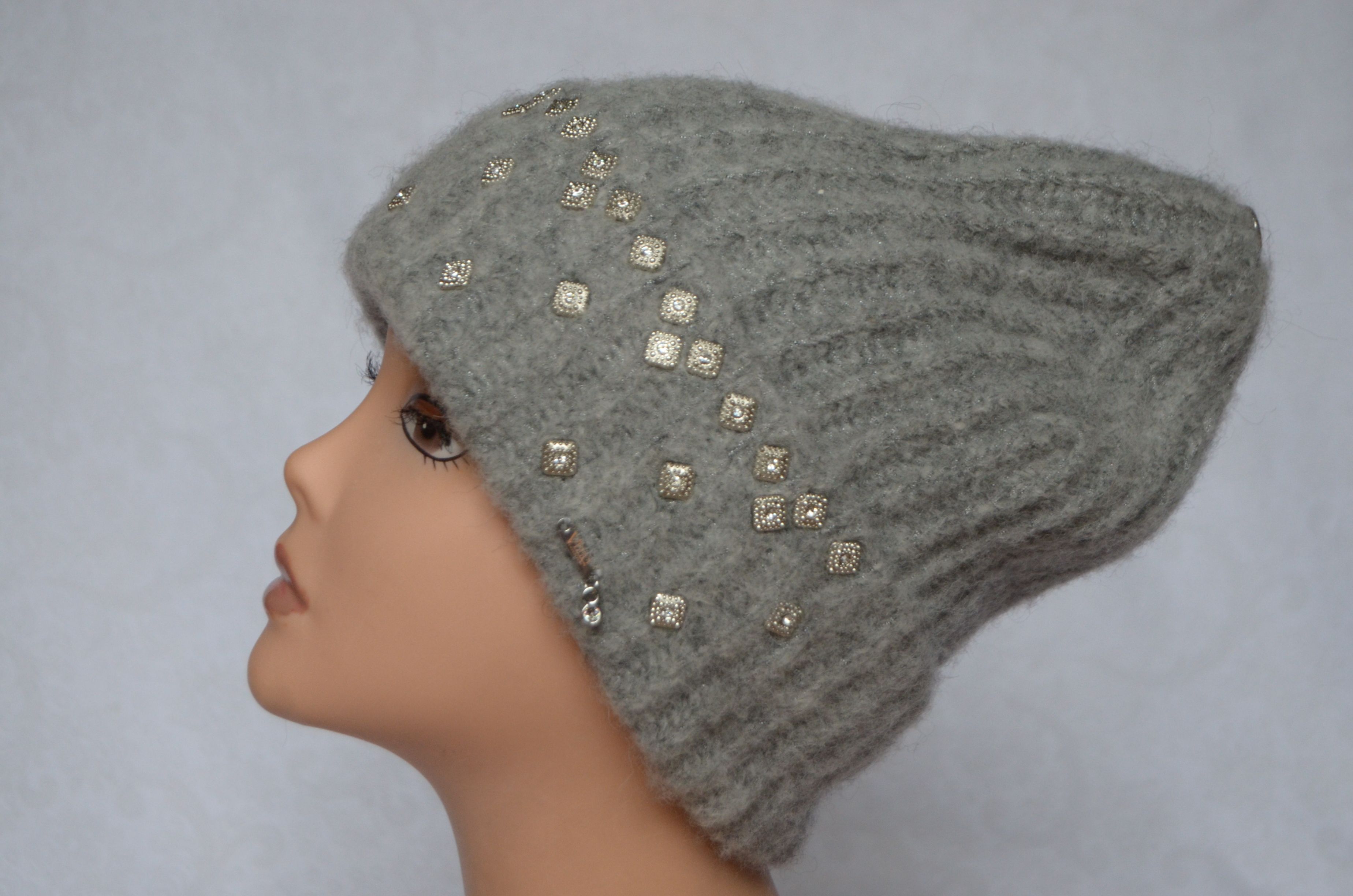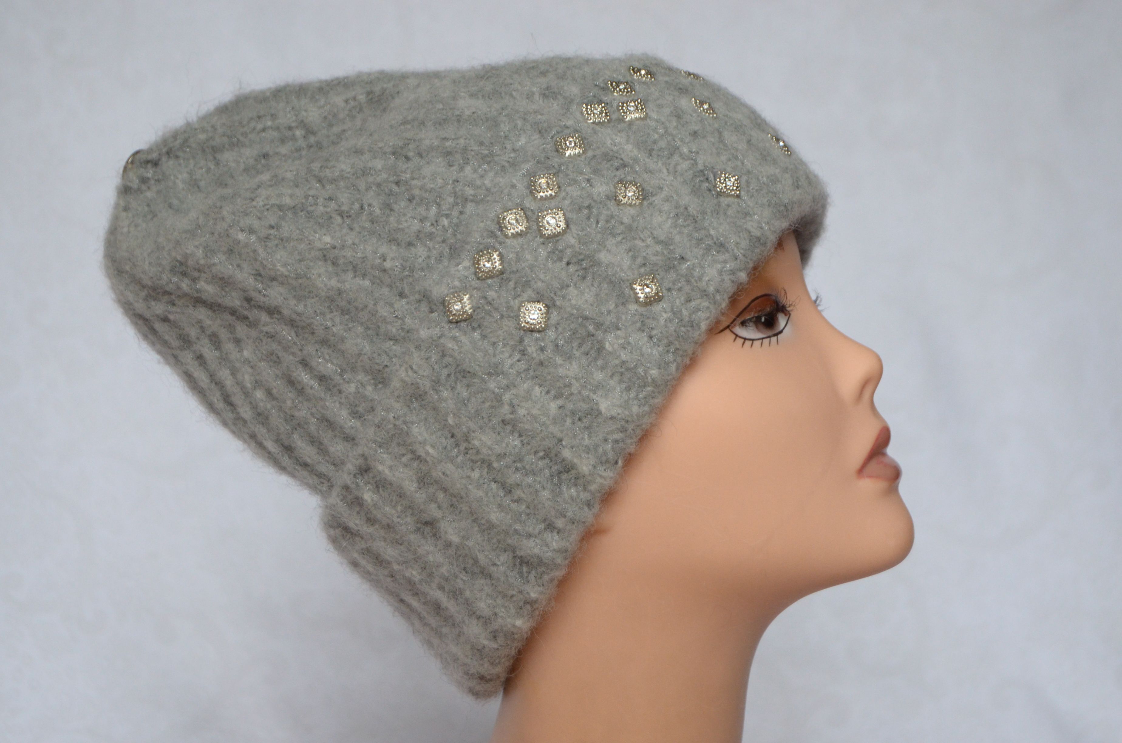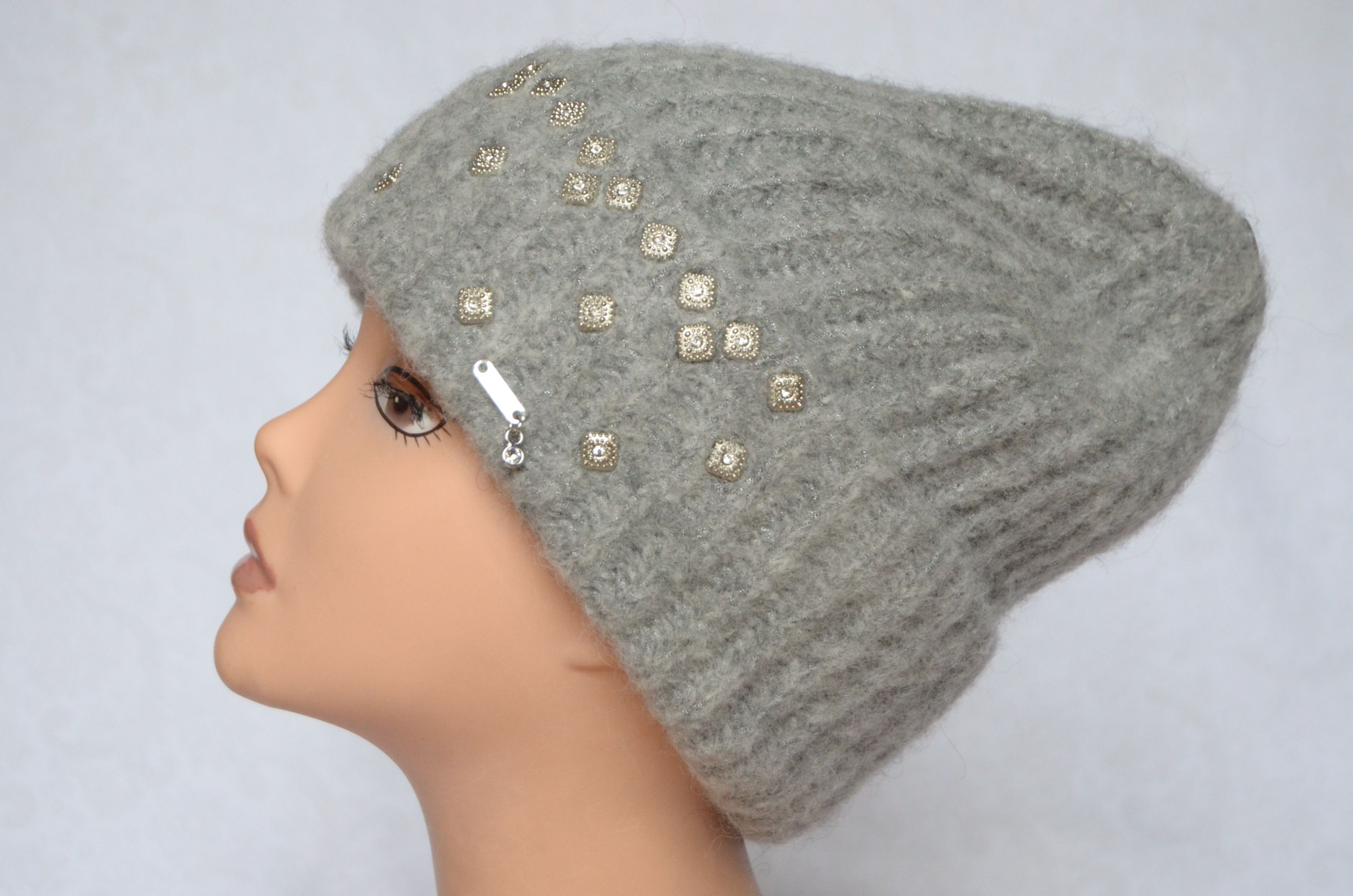 Женская вязаная шапка из альпака с отворотом Визио 6769 с украшениями приобрести в интернет магазине итальянских вязаных шапок для женщин