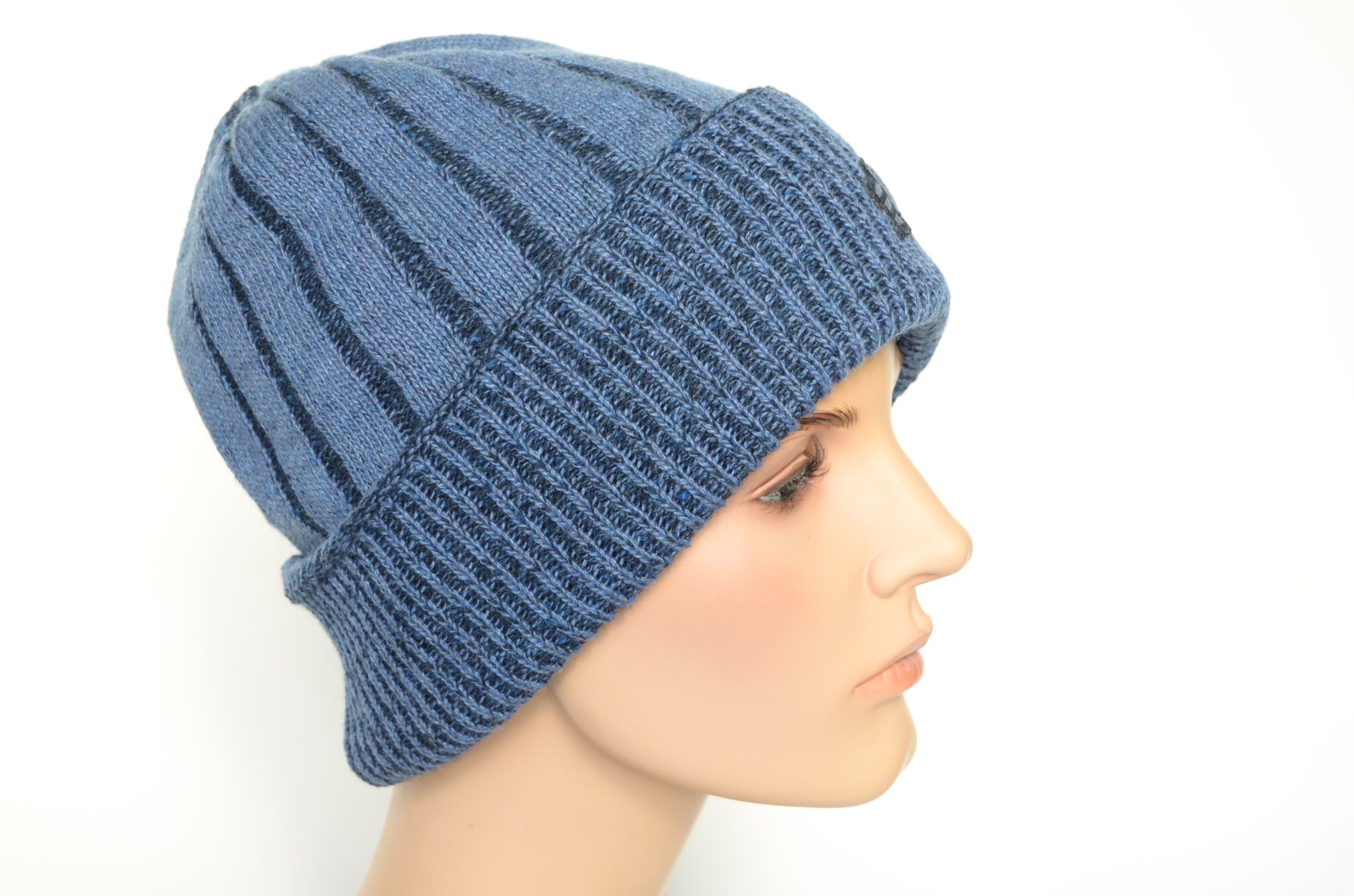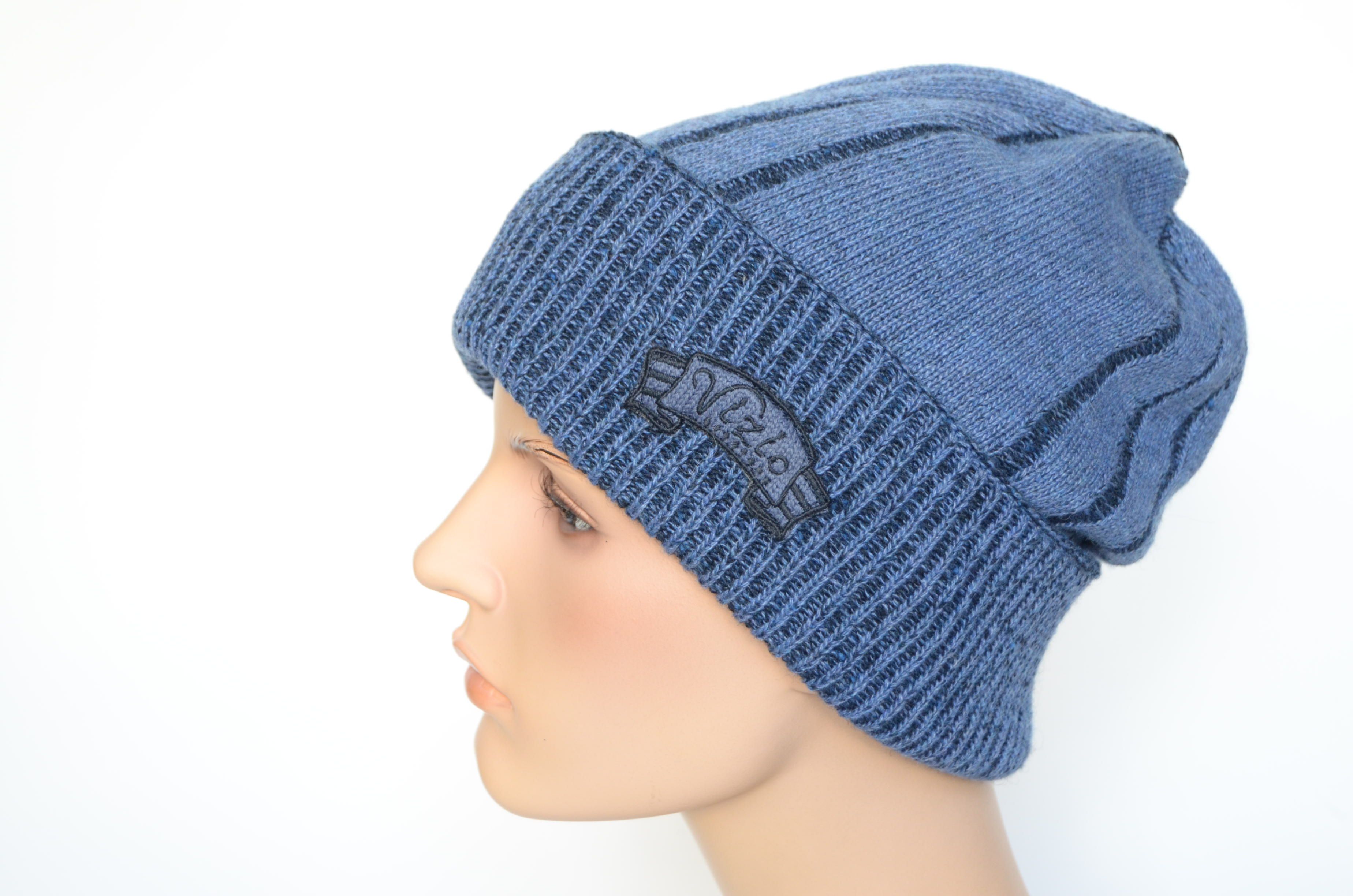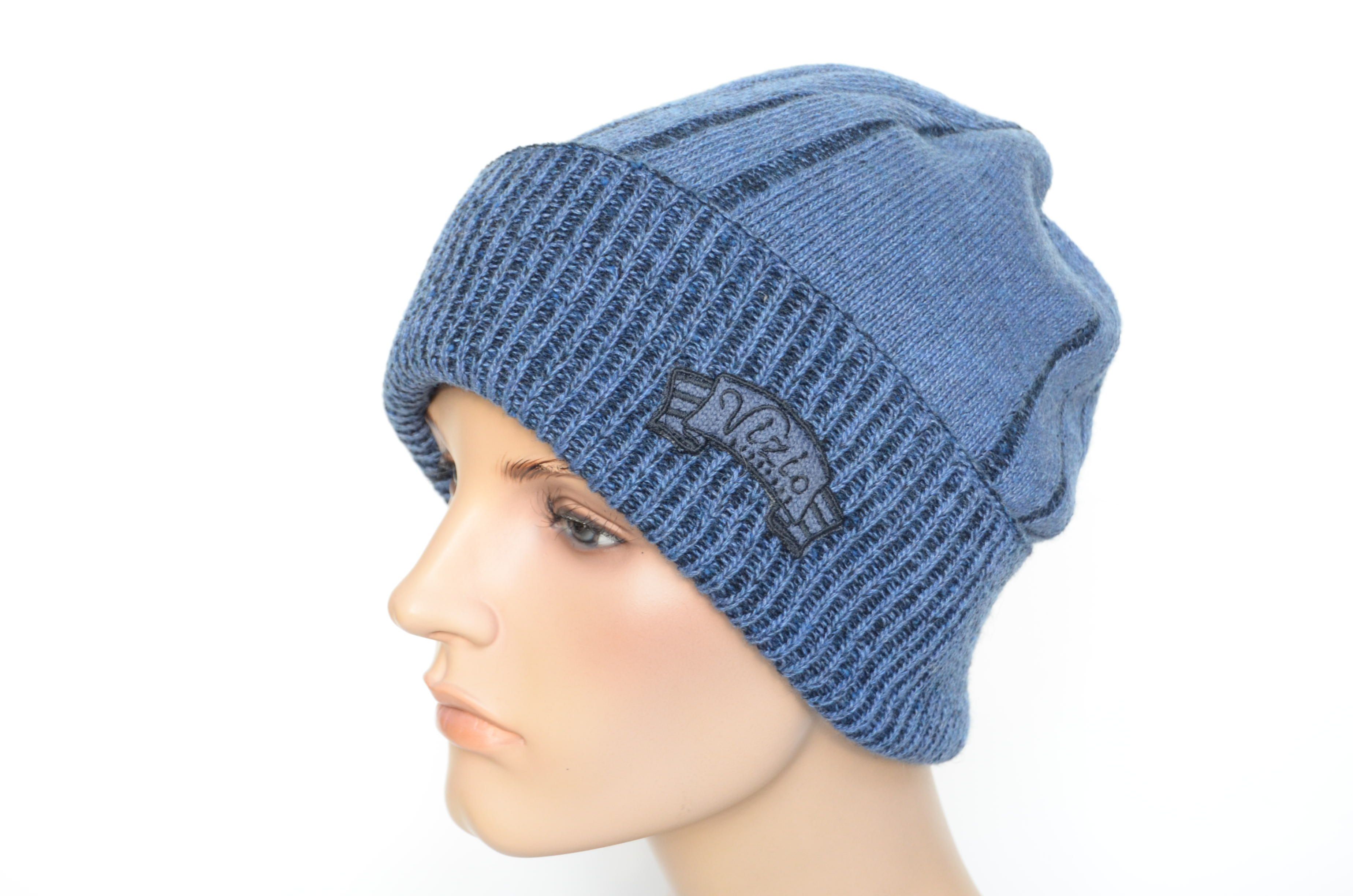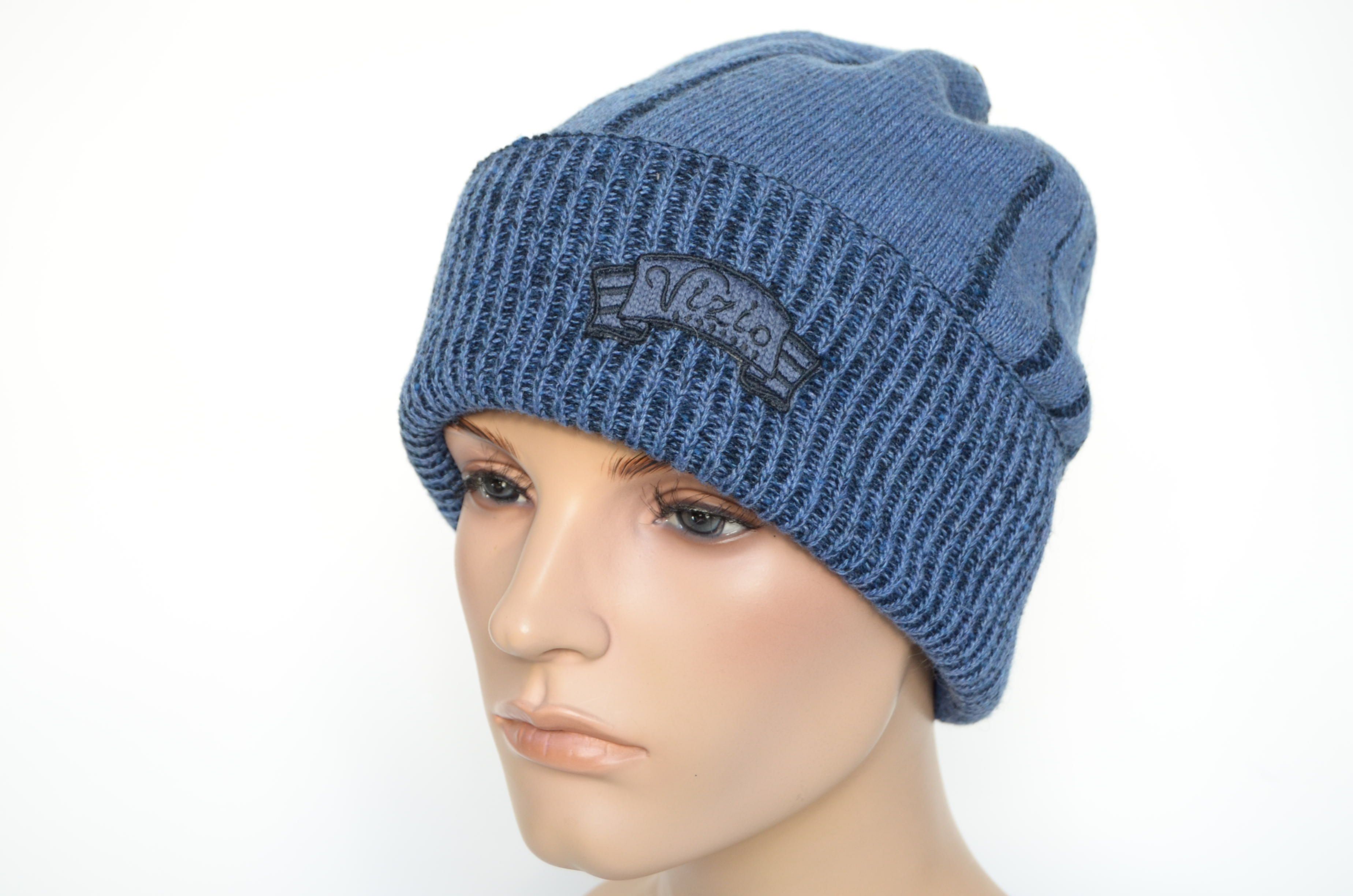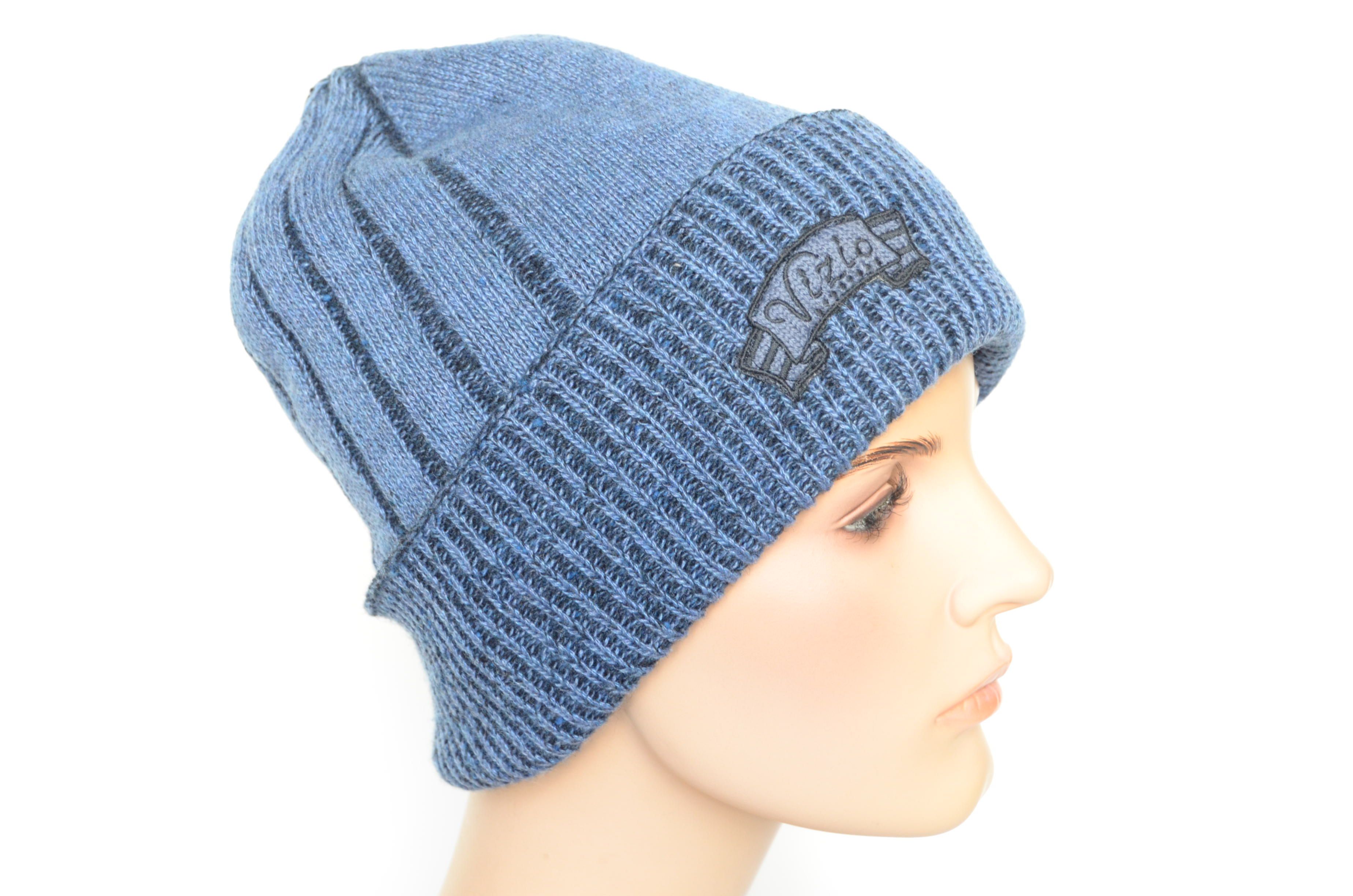 Купить голубую женскую шапку с отворотом вязаную Визио Италия зима 2022 - 2023 в интернет магазине головных уборов Италии Vizio в Москве и с доставкой по России
